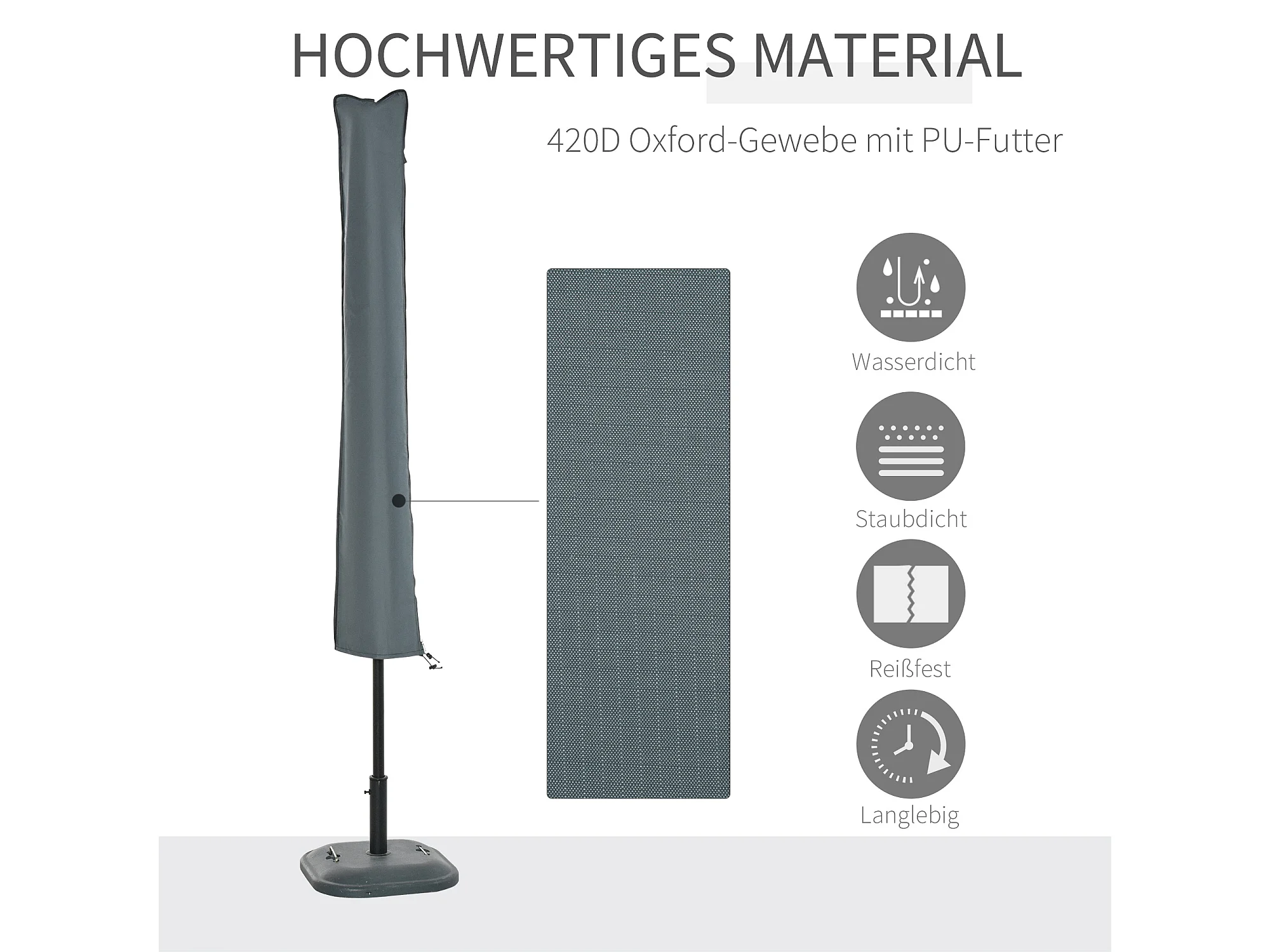 Housse de parasol imperméable avec fermeture éclair, polyester Oxford, gris (178x35x0.1cm)