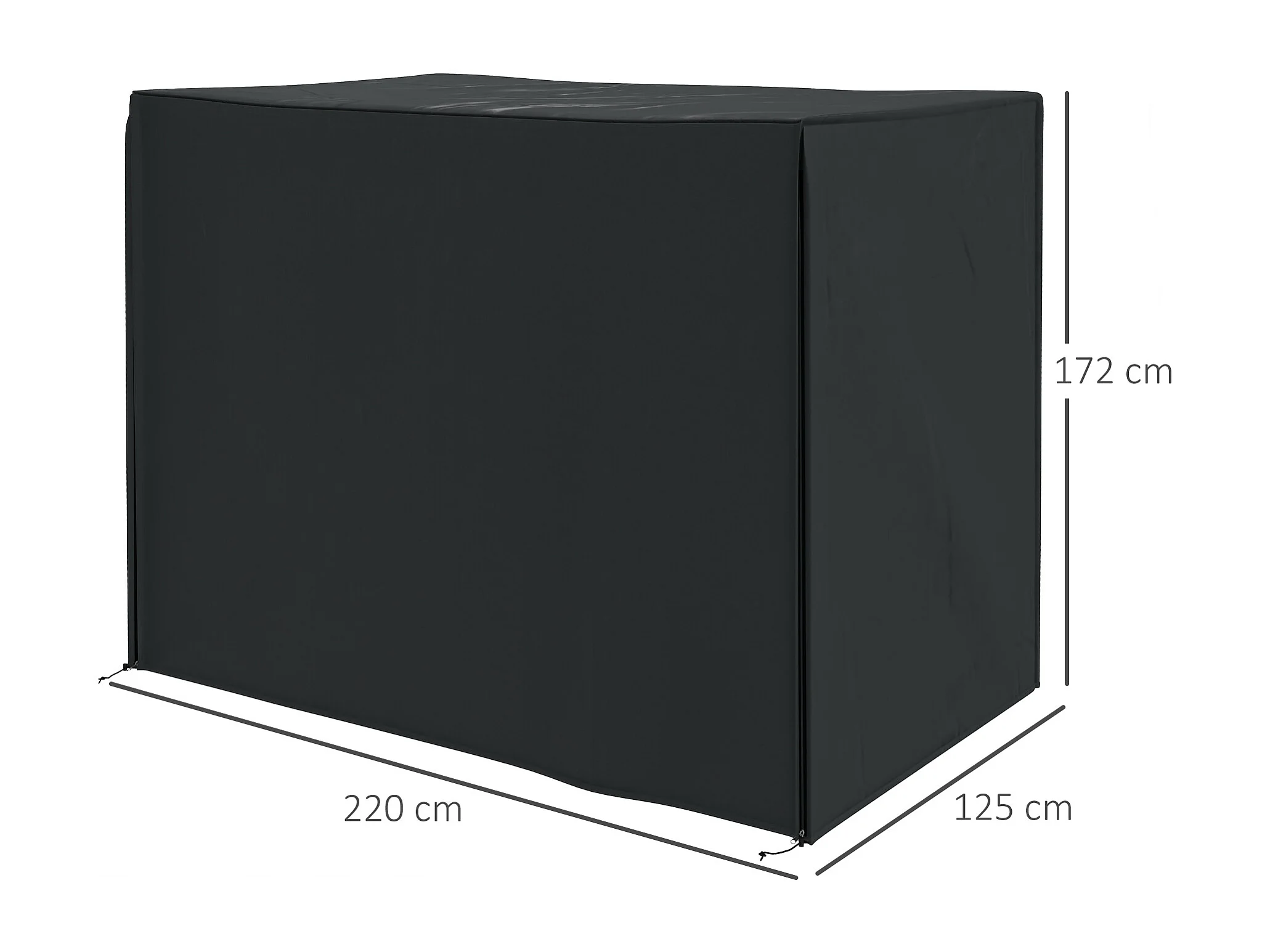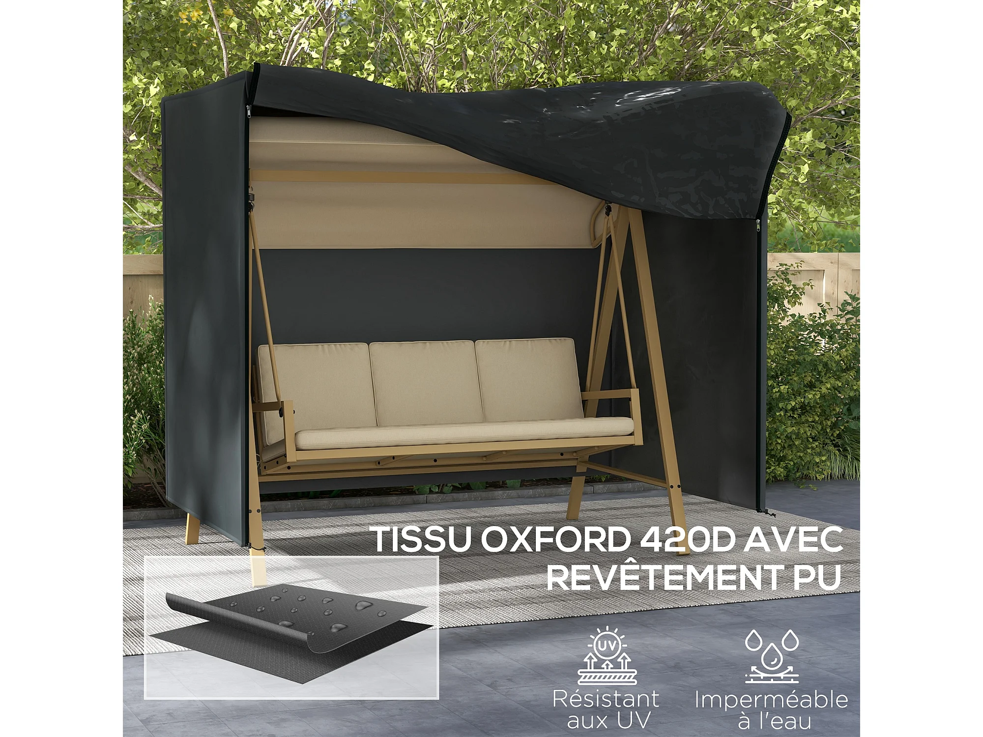 Housse de protection balancelle de jardin 3 places - imperméable, anti-UV, zip - dim. 2,20L x 1,25l x 1,72H m - noir