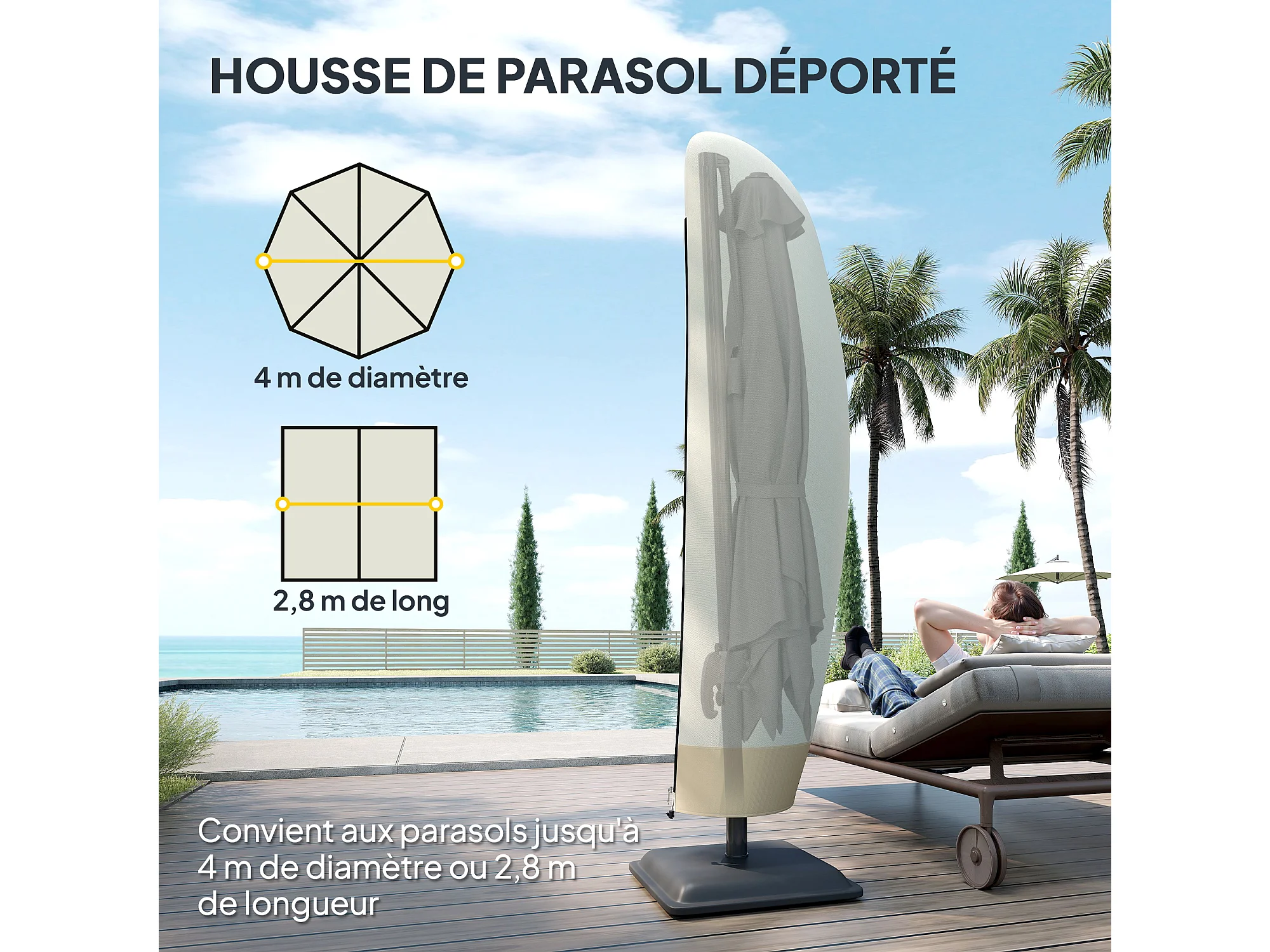 Housse de protection imperméable pour parasol droit avec fermeture éclair et cordon de serrage polyester PVC haute densité beige