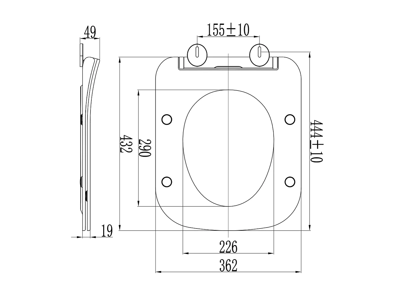 Couvercle De Toilette En Thermoplastique Blanc Brillant De Forme Q