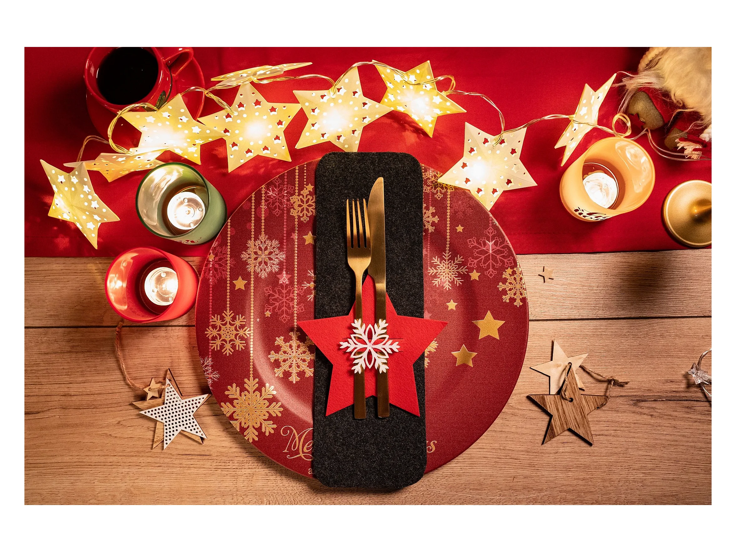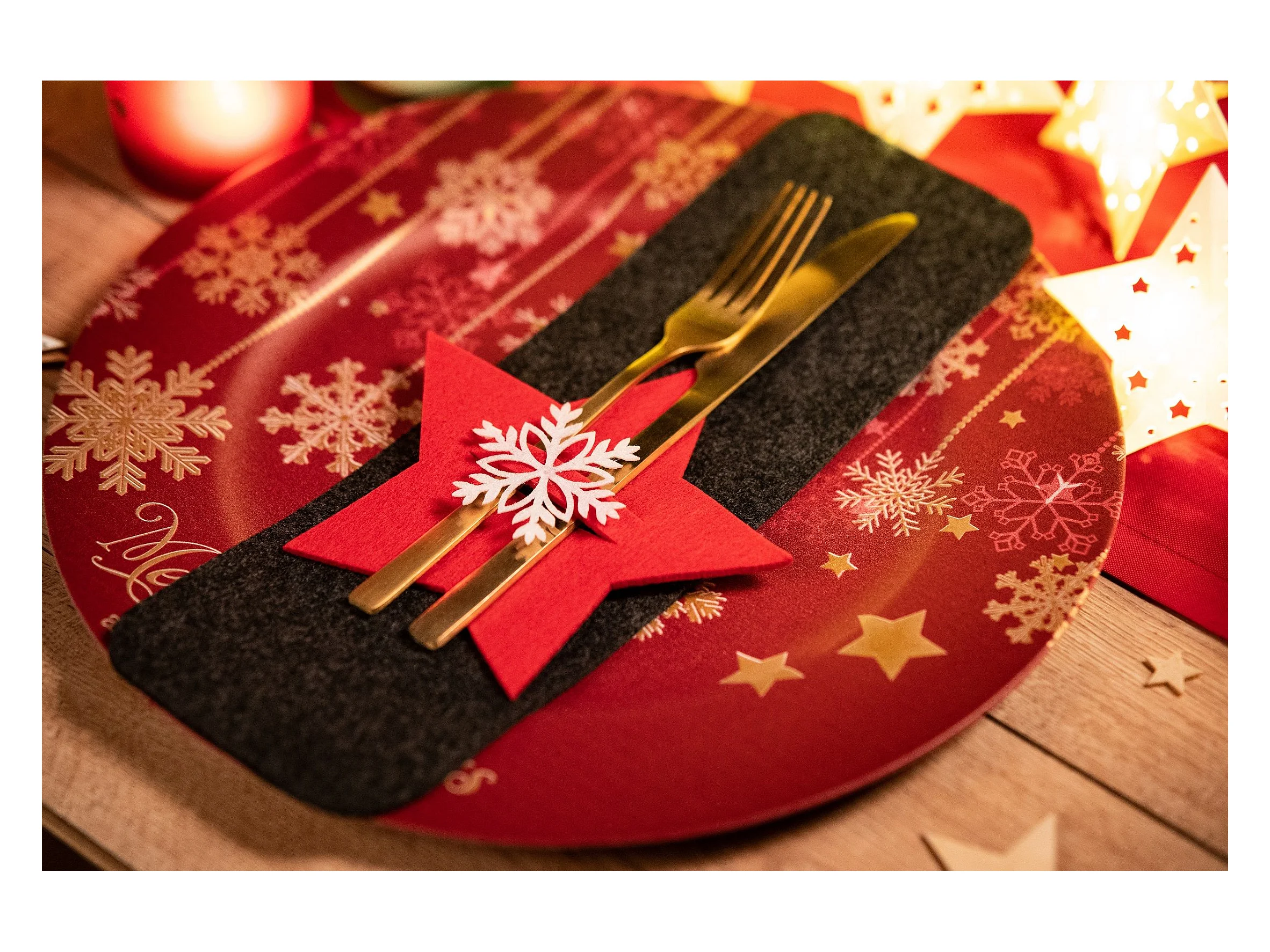 HOUSSE POUR COUVERTS DE NOËL ÉTOILE CHR-06511 6 PCS ROUGE