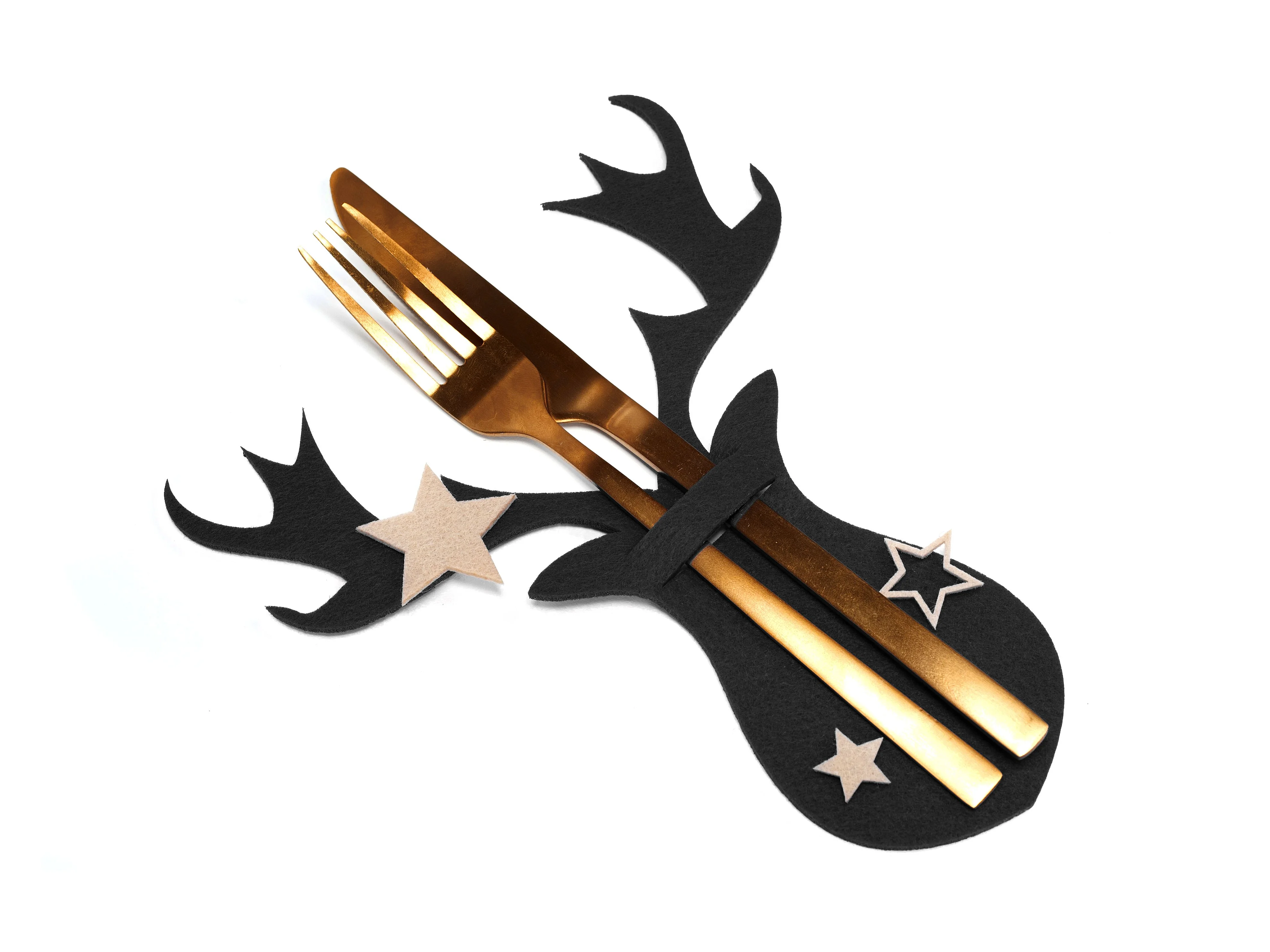 HOUSSE POUR COUVERTS DE NOËL RENNE 311377A 6 PCS NOIR