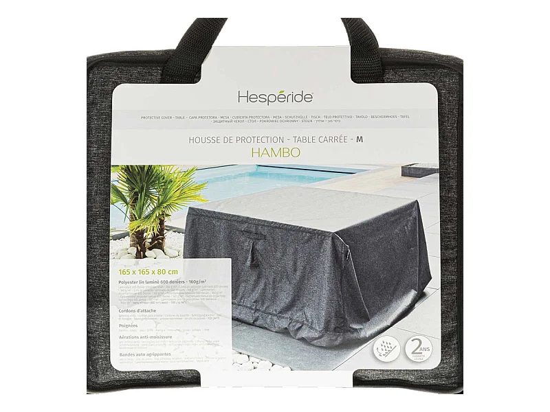 Housse pour table extérieure carré Hambo M gris - 165 x 165 x 80 cm - Hespéride