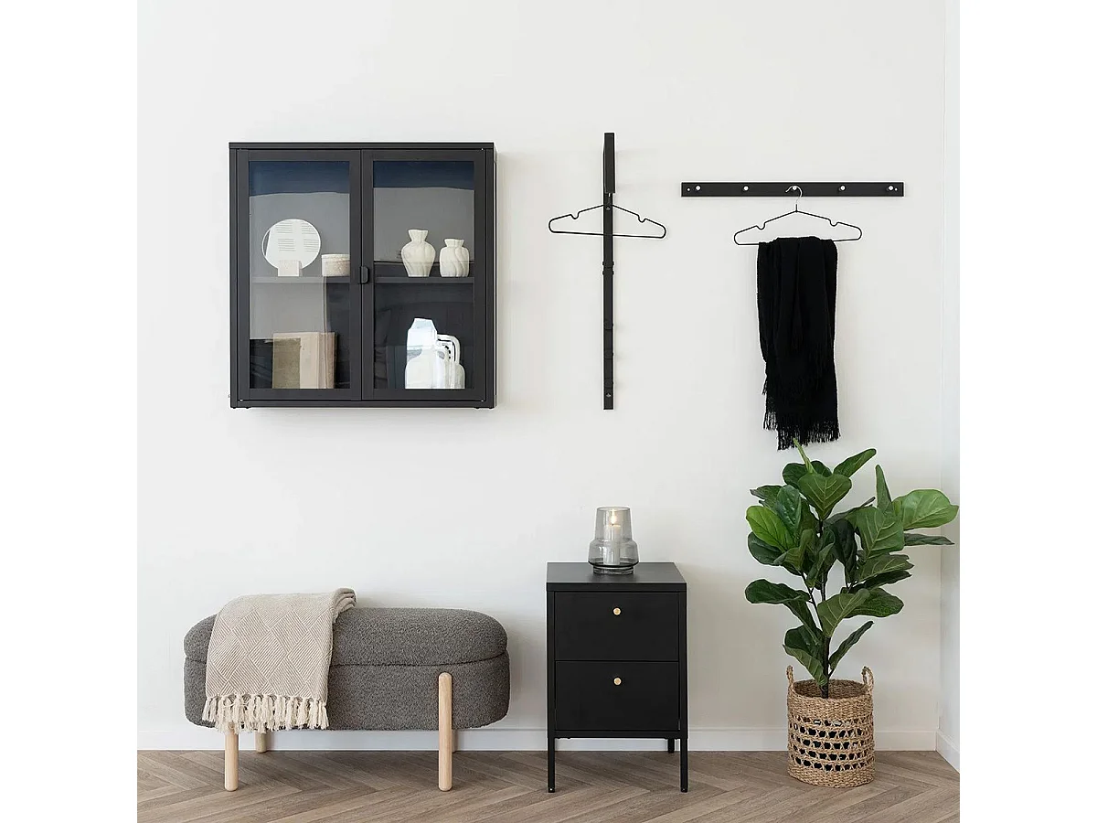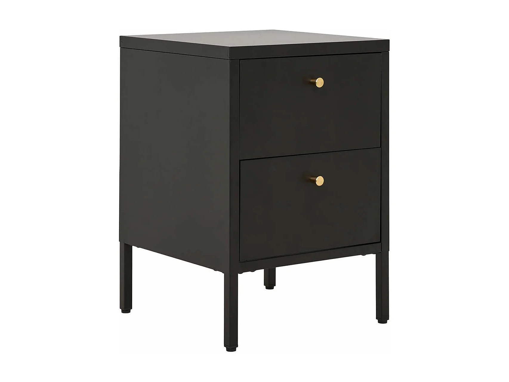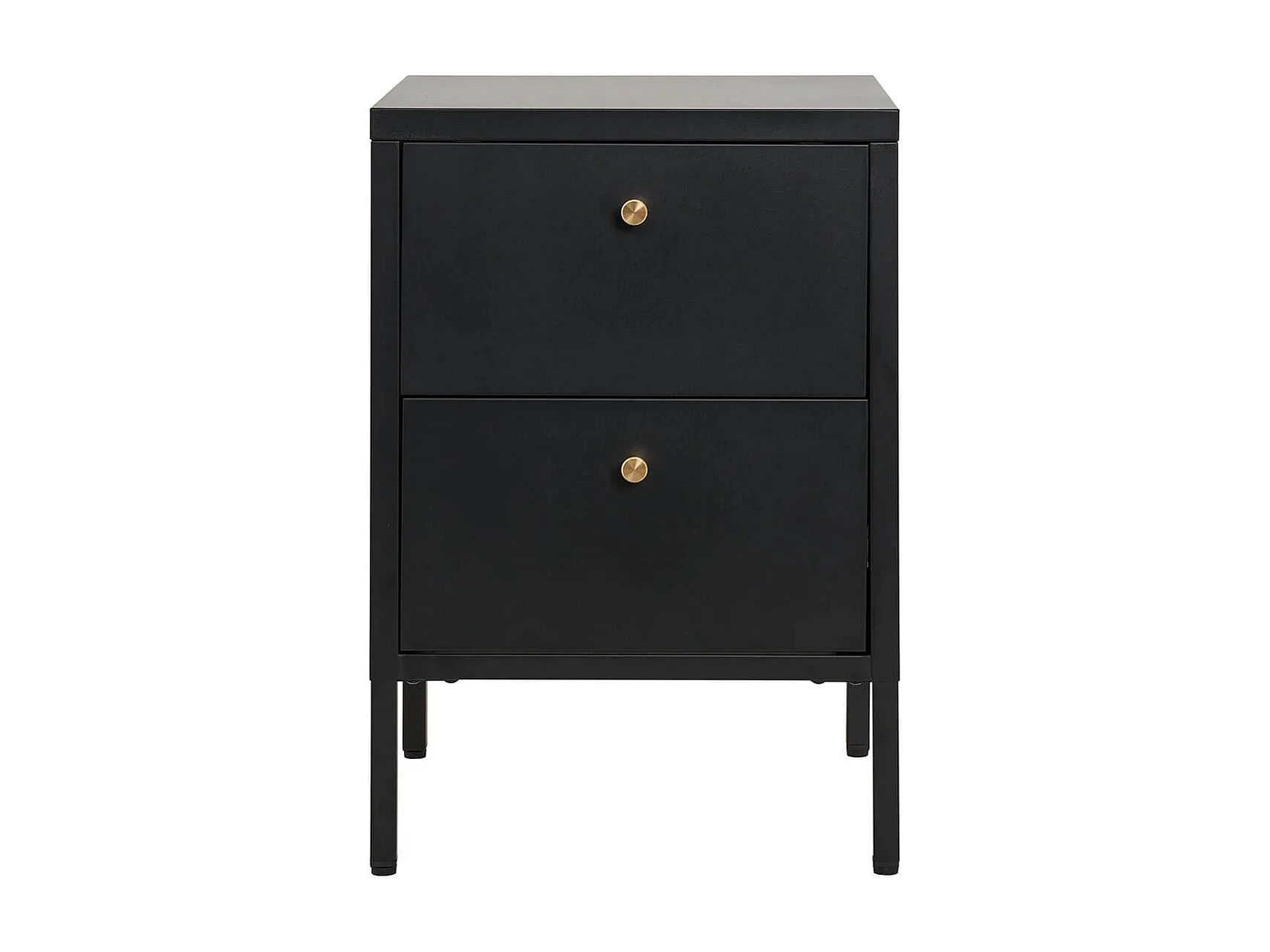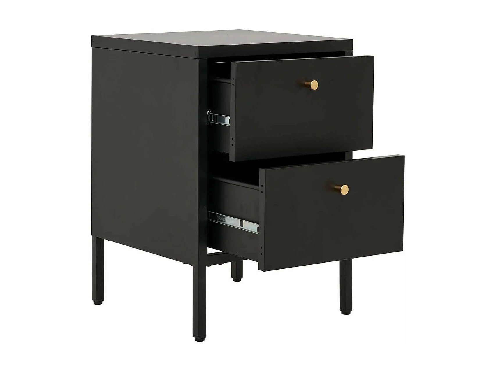 HUGO - Chevet 2 Tiroirs en Métal Laqué Noir