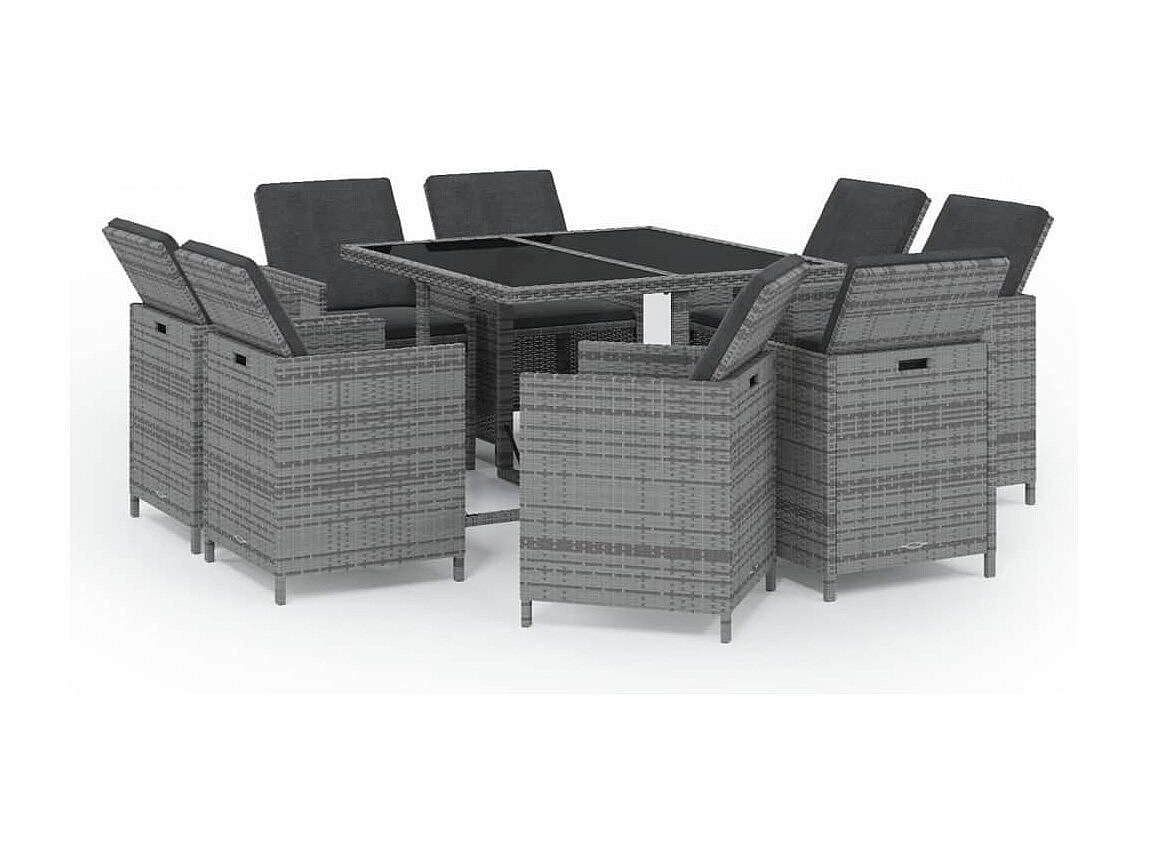 Hugo Ensemble à manger de jardin coussins 9pcs Résine tressée Gris