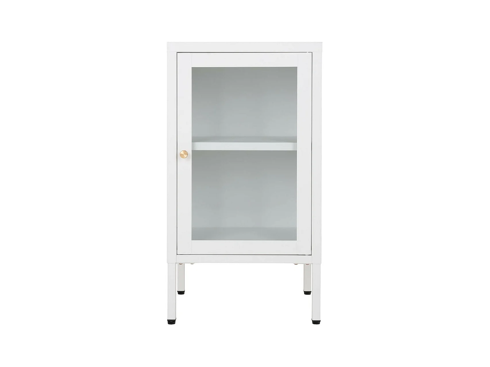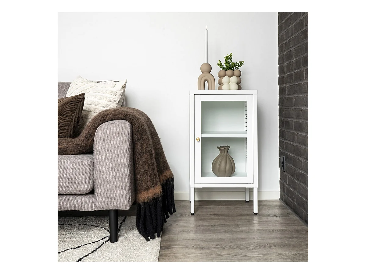 HUGO - Meuble d'appoint 1 Porte Vitrée en Métal Laqué Blanc