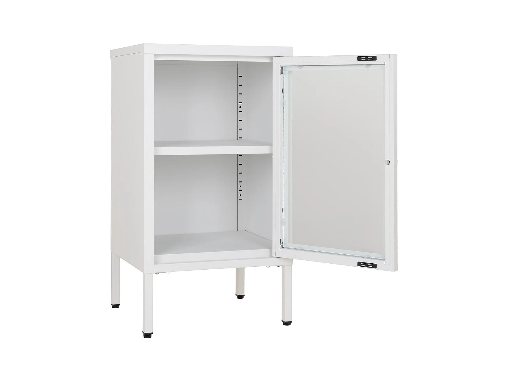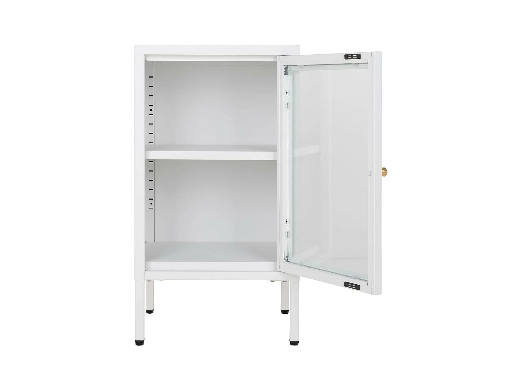 HUGO - Meuble d'appoint 2 Portes Vitrées en Métal Laqué Blanc