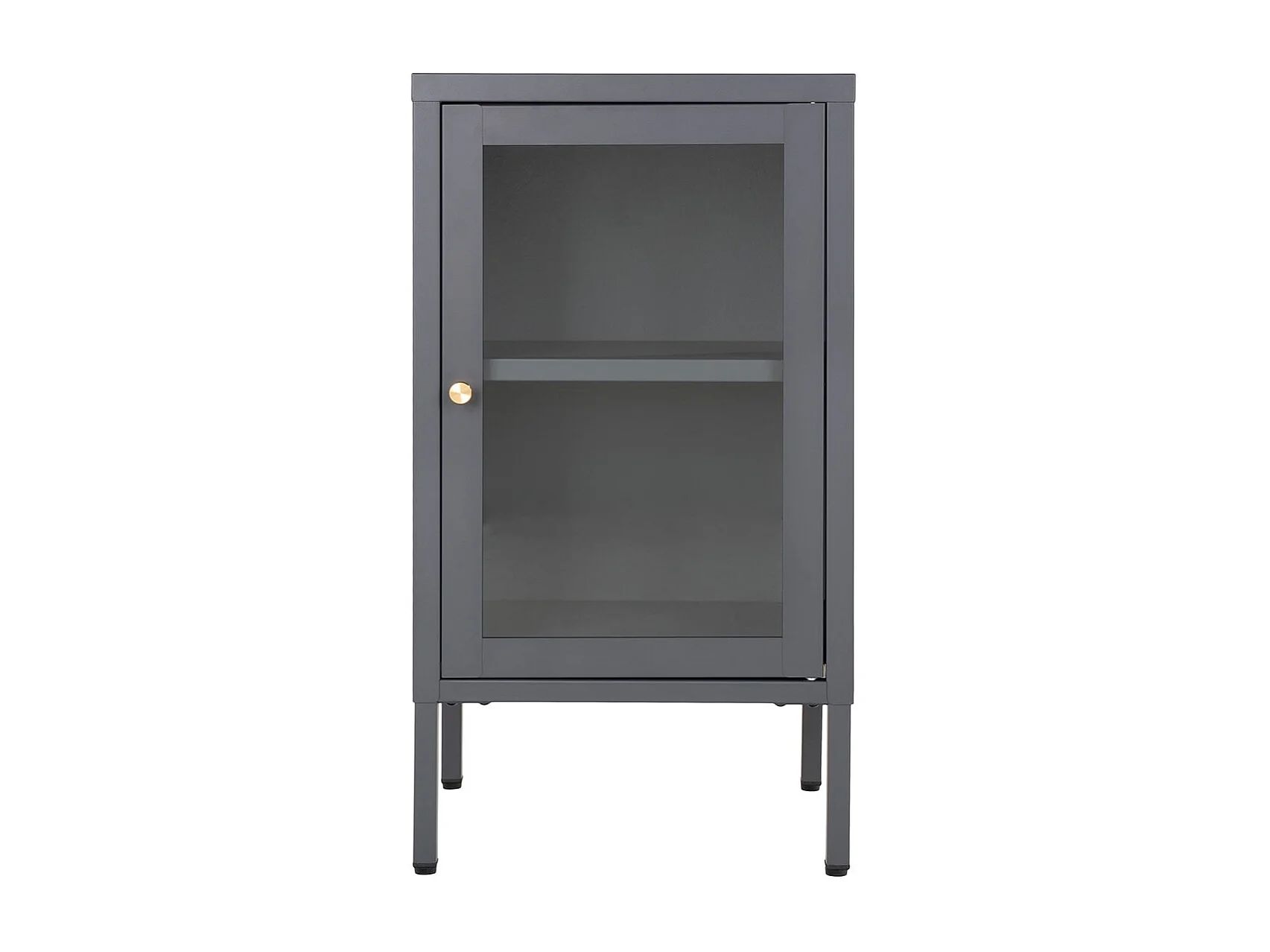 HUGO - Meuble d'appoint 1 Porte Vitrée en Métal Laqué Gris Foncé