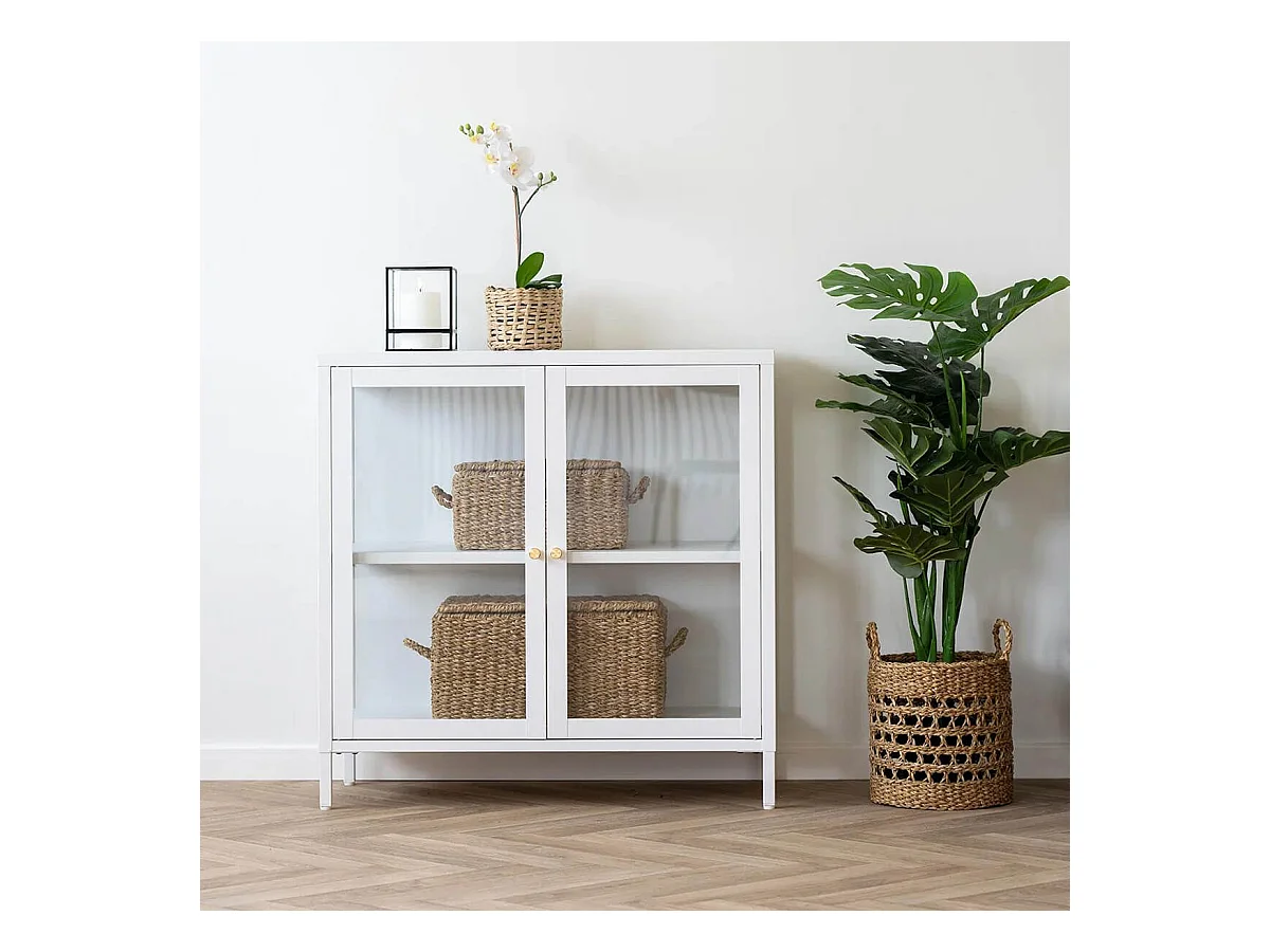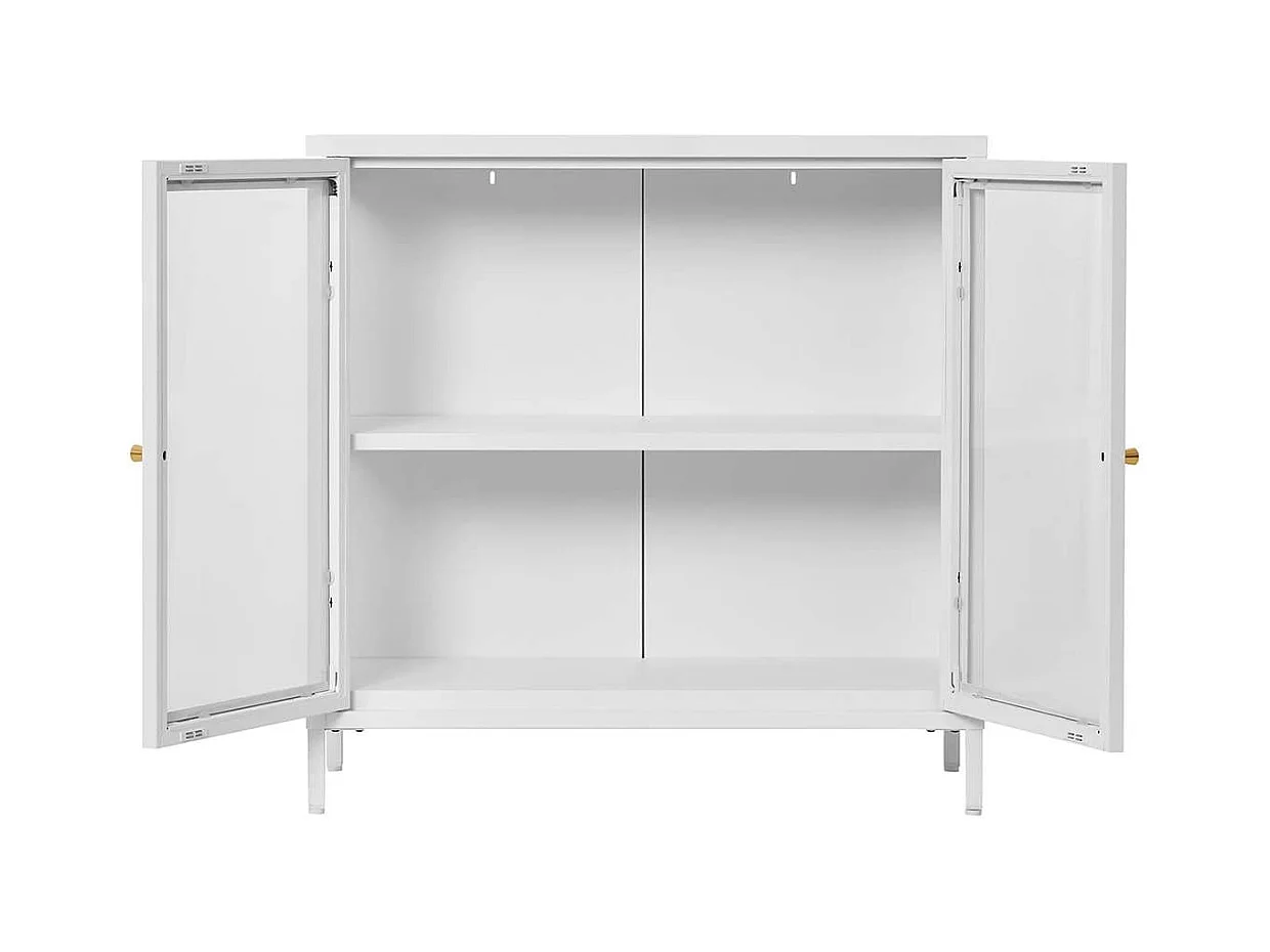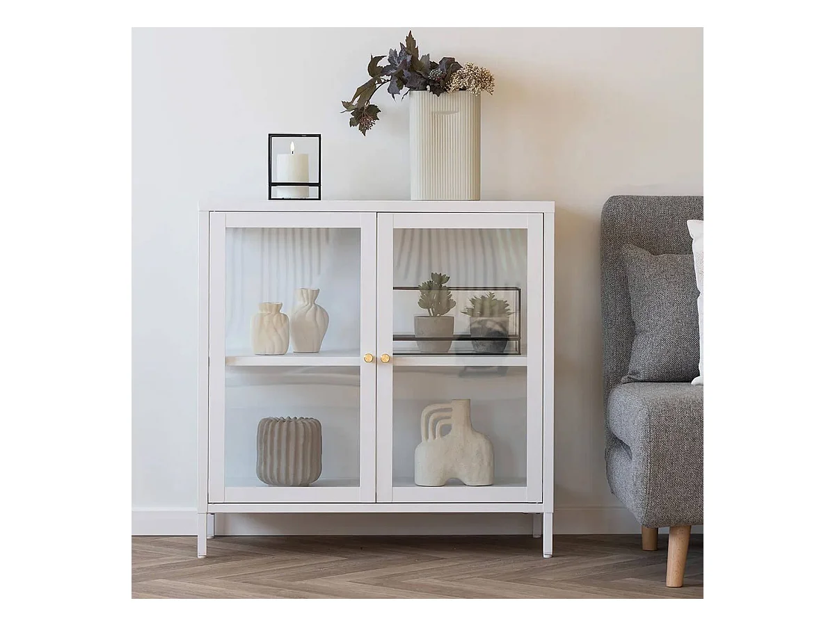HUGO - Meuble d'appoint 2 Portes Vitrées en Métal Laqué Blanc