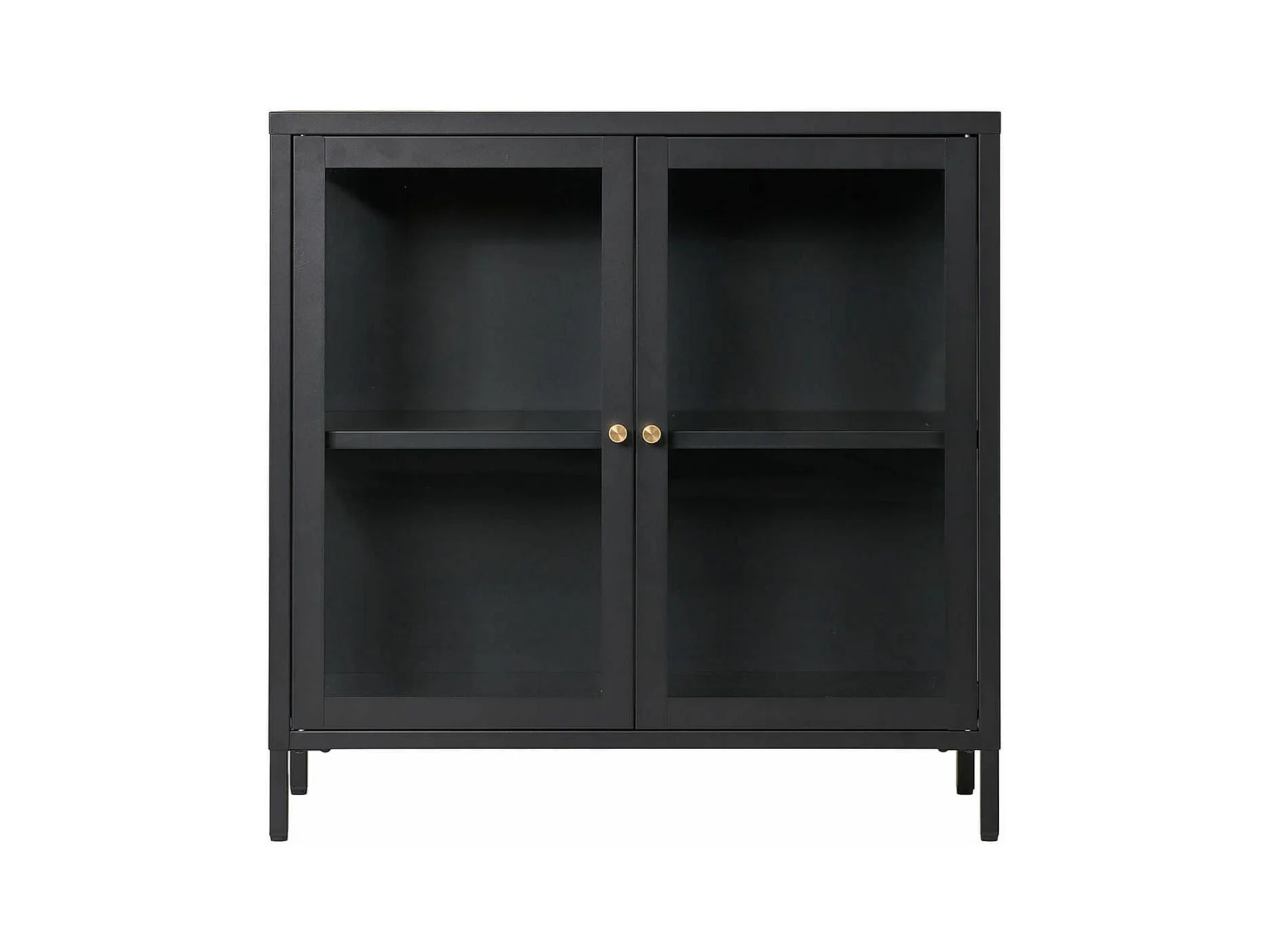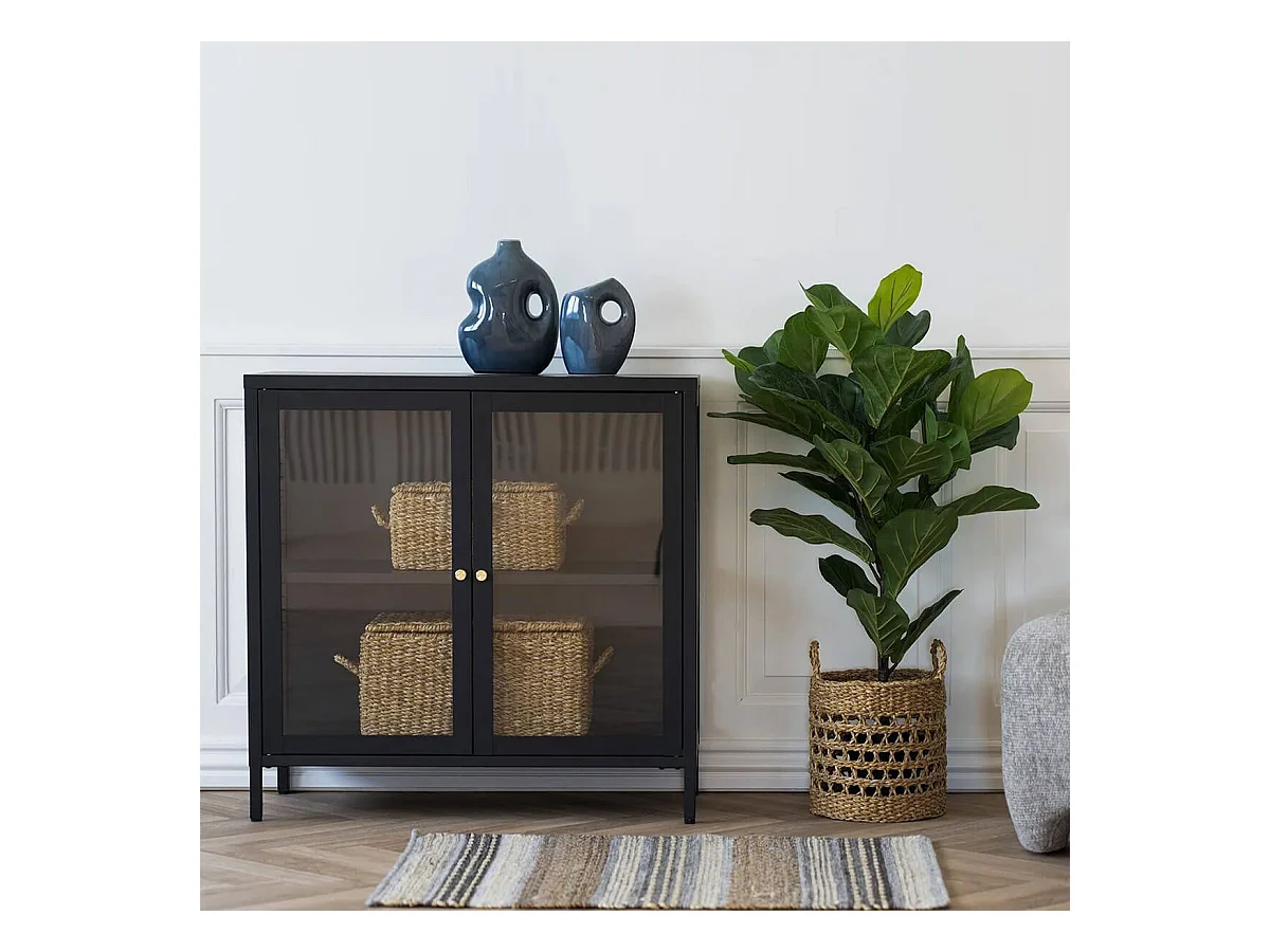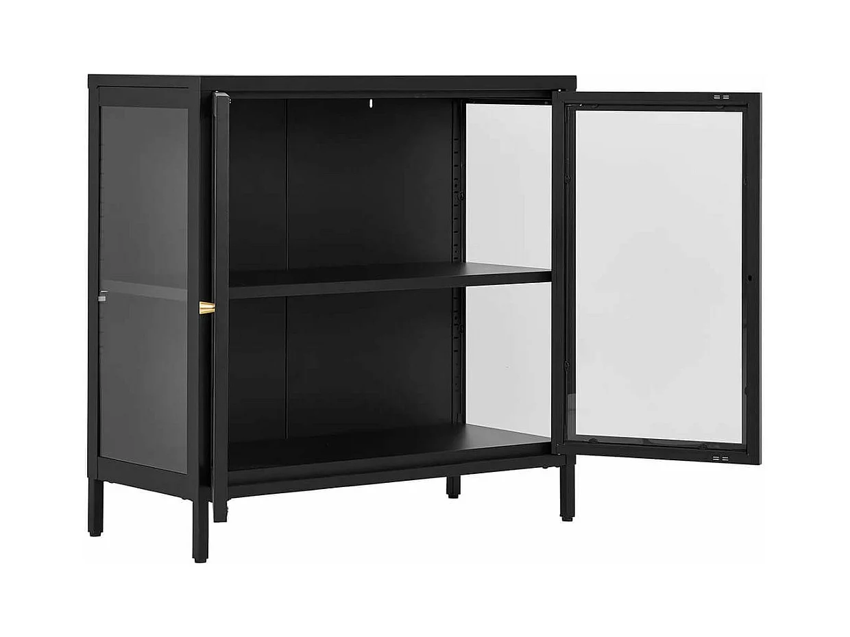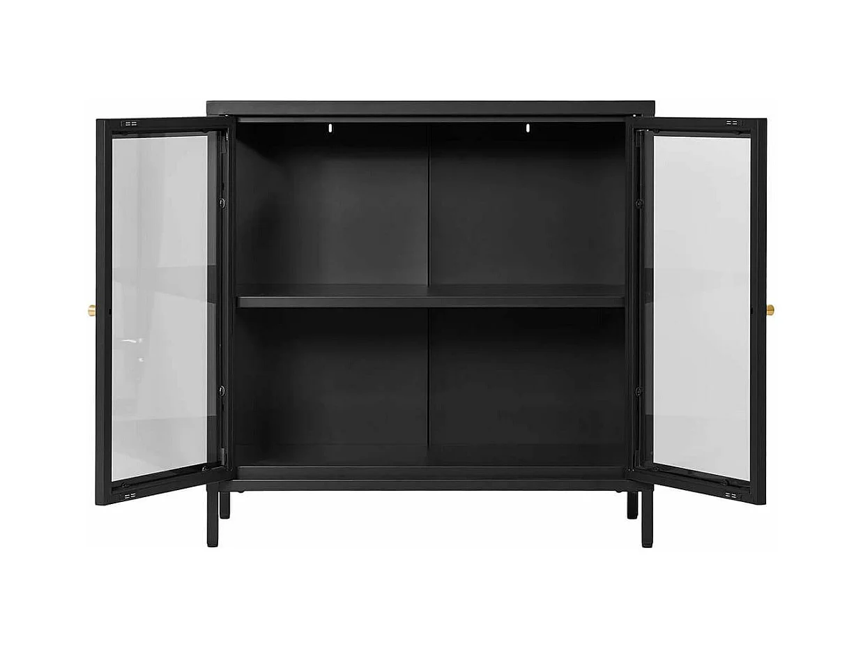 HUGO - Meuble d'appoint 2 Portes Vitrées en Métal Laqué Noir