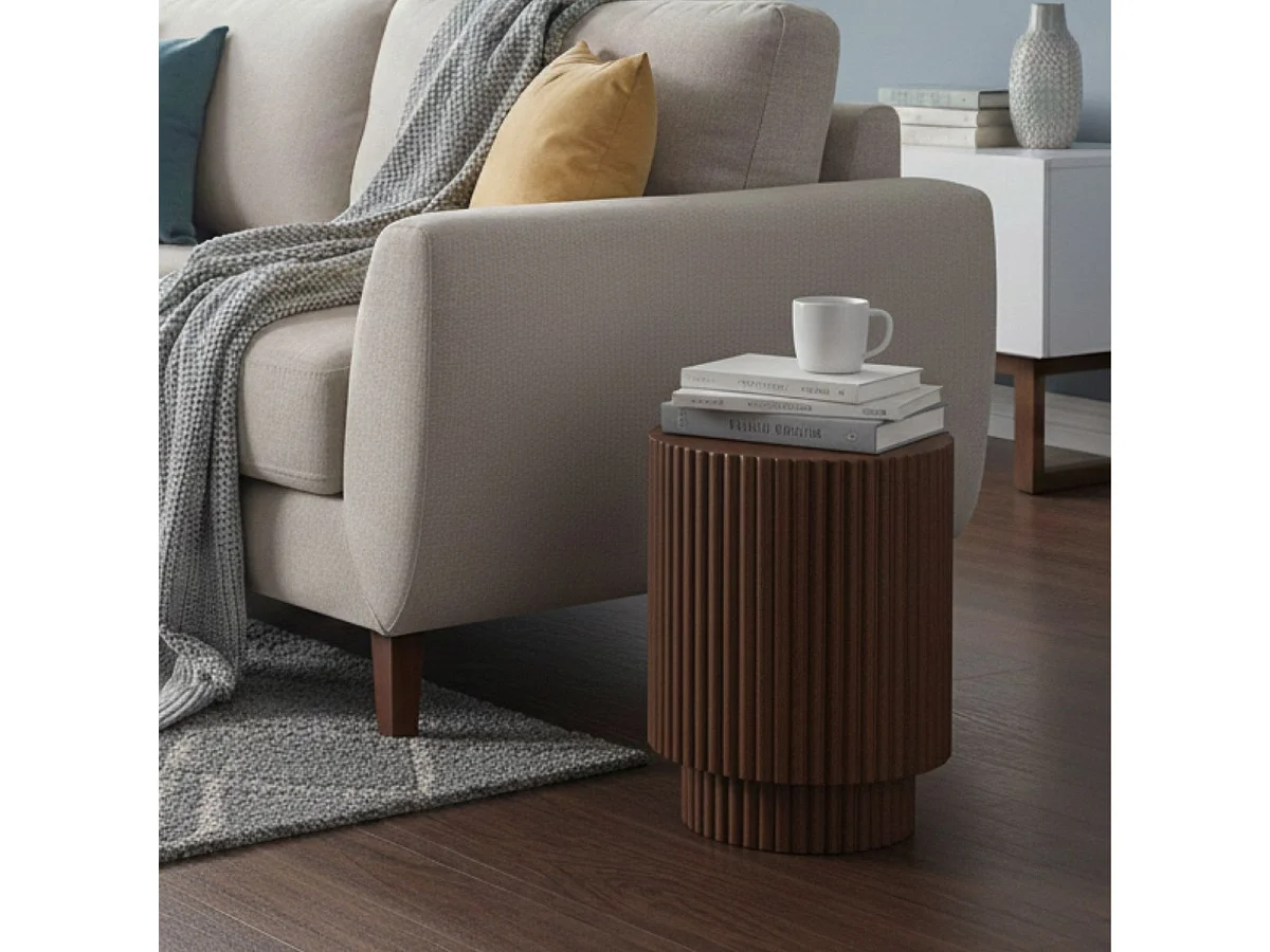 HUNTER - Bout de Canapé en Manguier Massif Vernis Teinté Noyer