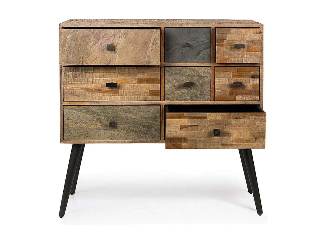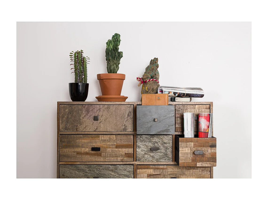 San - Commode design 8 tiroirs en teck recyclé : Couleur - Naturel