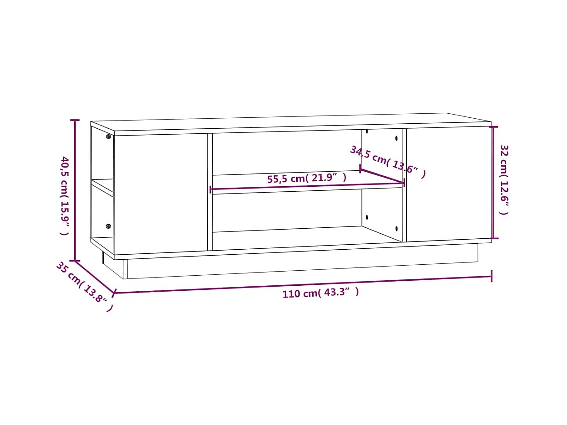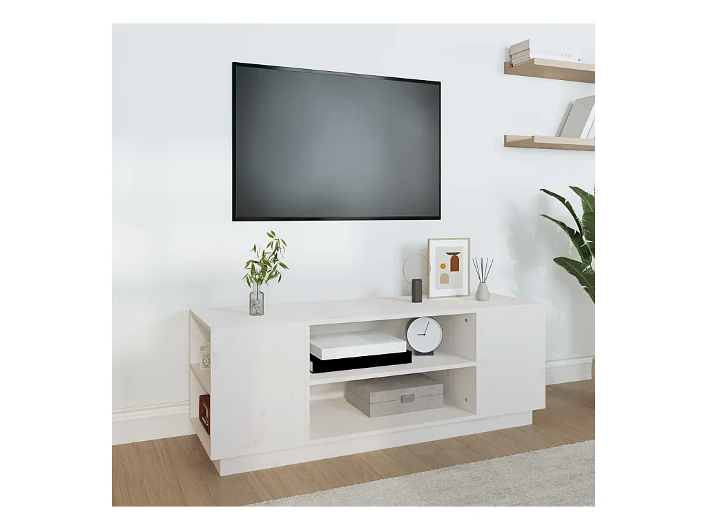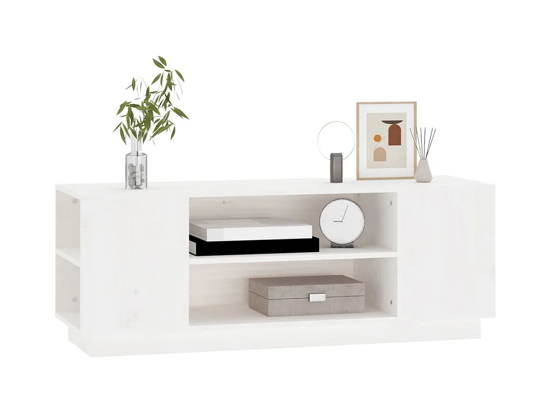 Hylindra Meuble TV Blanc 110x35x40,5 cm Bois de pin massif