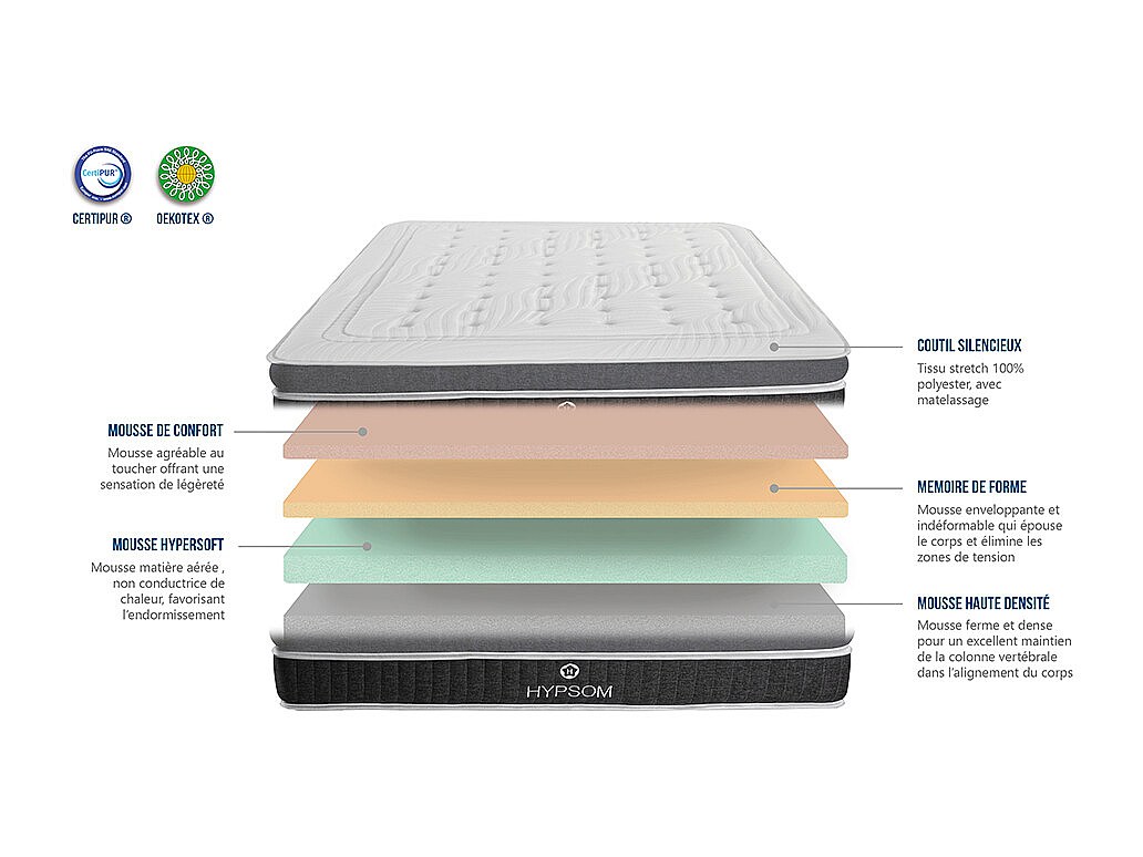 HYPSOM | Matelas ELEGANCE 90x190 cm | Mousse avec mémoire de forme
