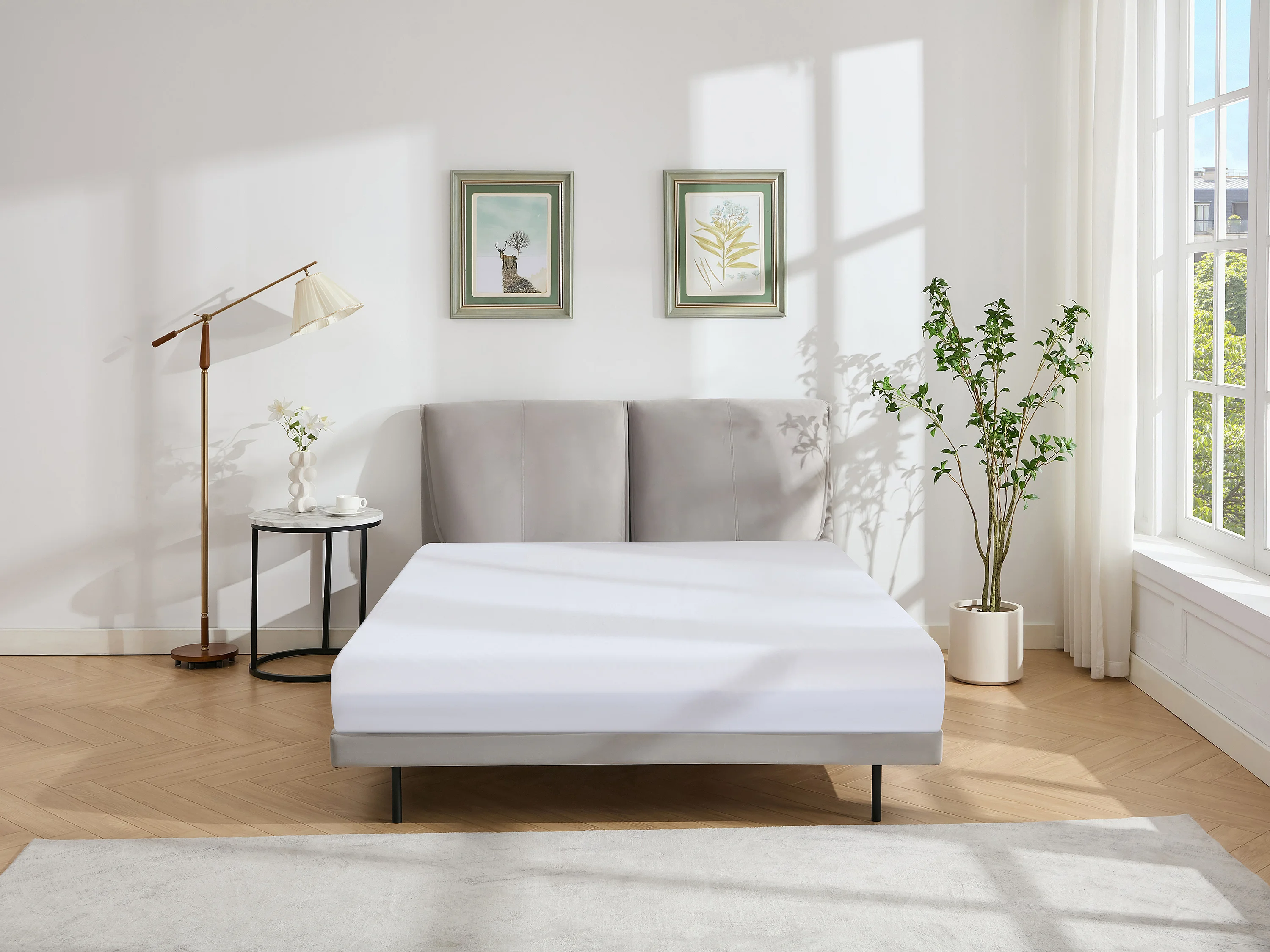 Lit 140 x 190 cm - Velours - Gris + Matelas - IBEDIA
