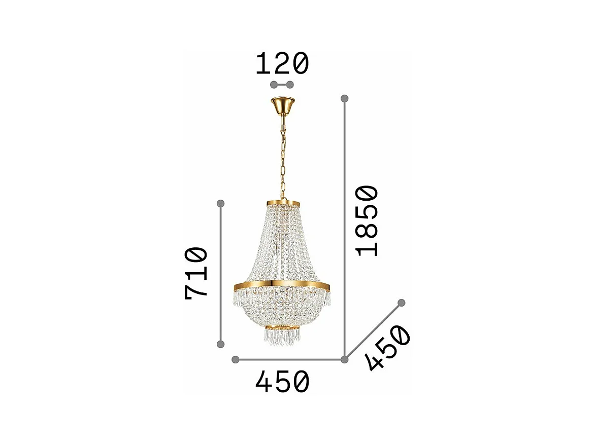 Ideal Lux Caesar Lustre en cristal à 9 ampoules au fini doré, G9