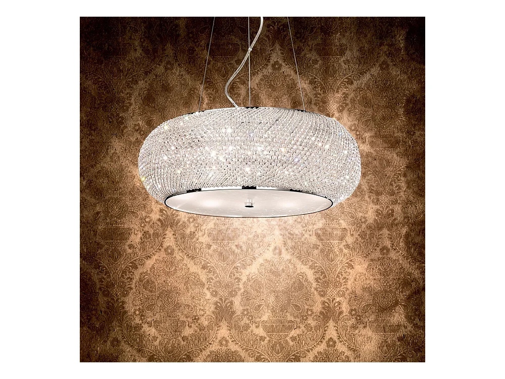 Ideal Lux Pasha' Suspension à 6 ampoules au fini chrome avec cristaux, E14