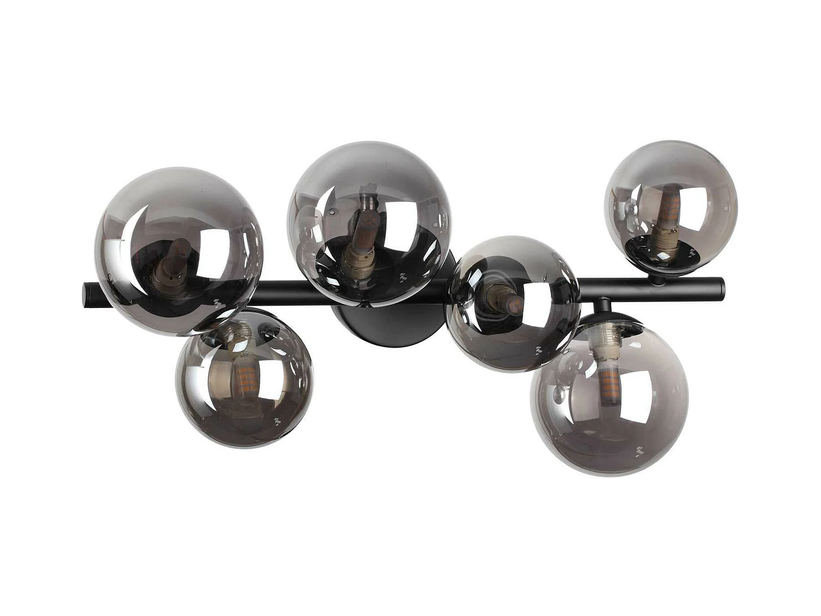Ideal Lux PERLAGE Plafonnier globe à 6 lumières, noir, abat-jour gris fumé
