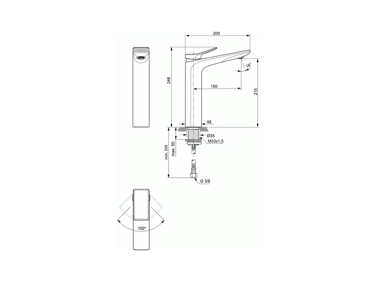 IDEAL STANDARD Mitigeur lavabo Conca réhaussé sans tirette sans vidage chrome