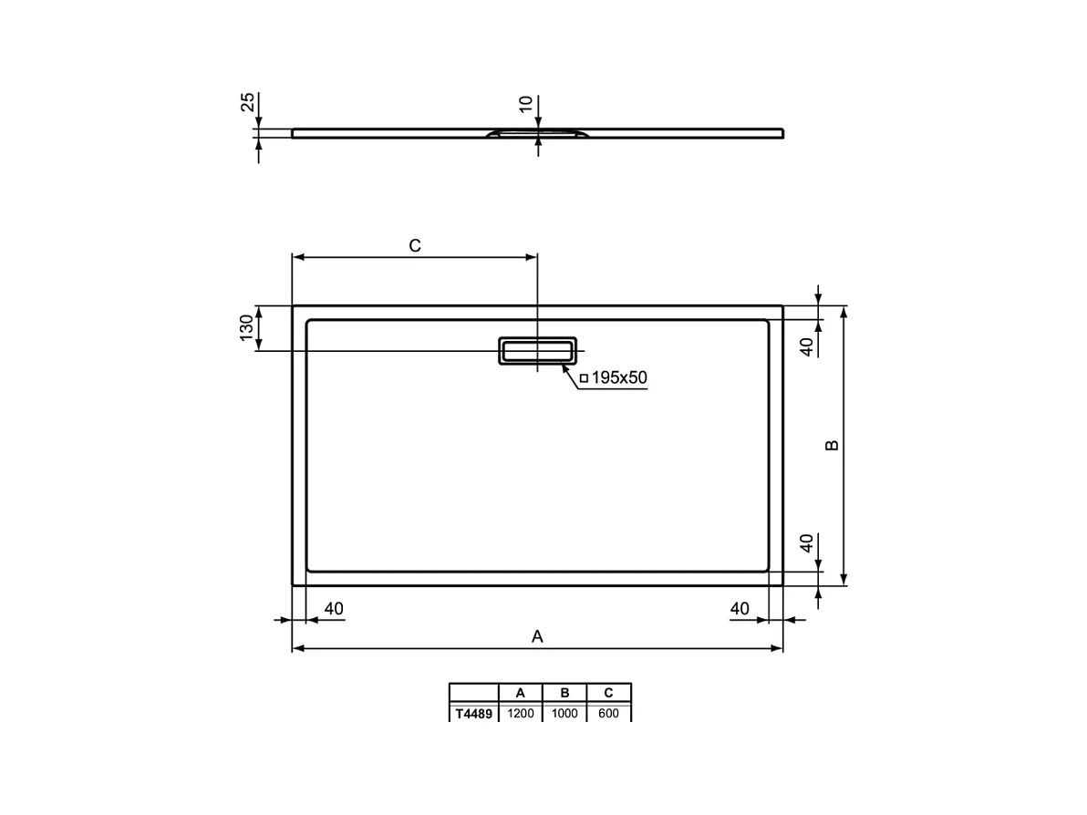 IDEAL STANDARD Receveur antidérapant 120 X 100 Ultra Flat New acrylique rectangle blanc