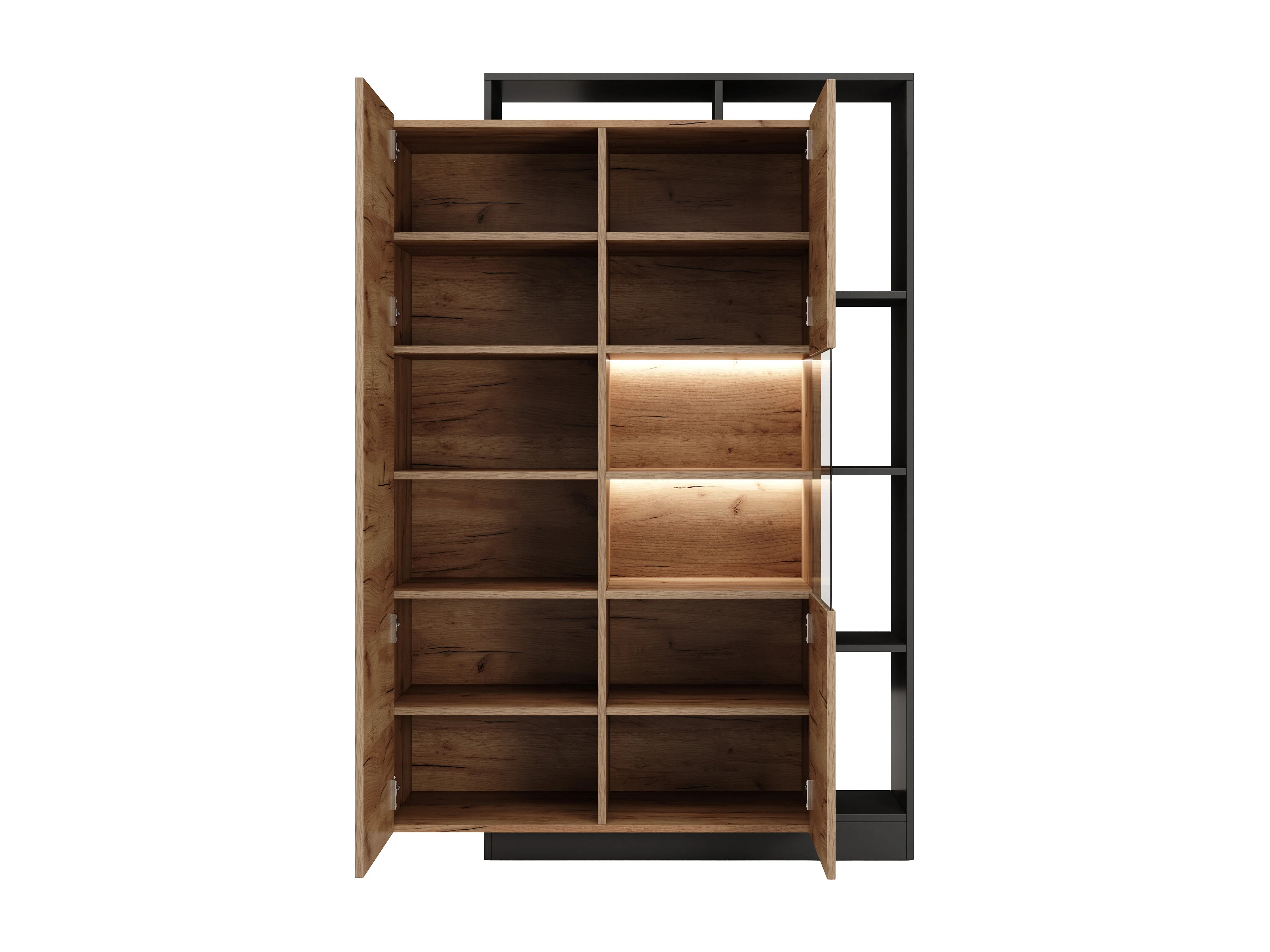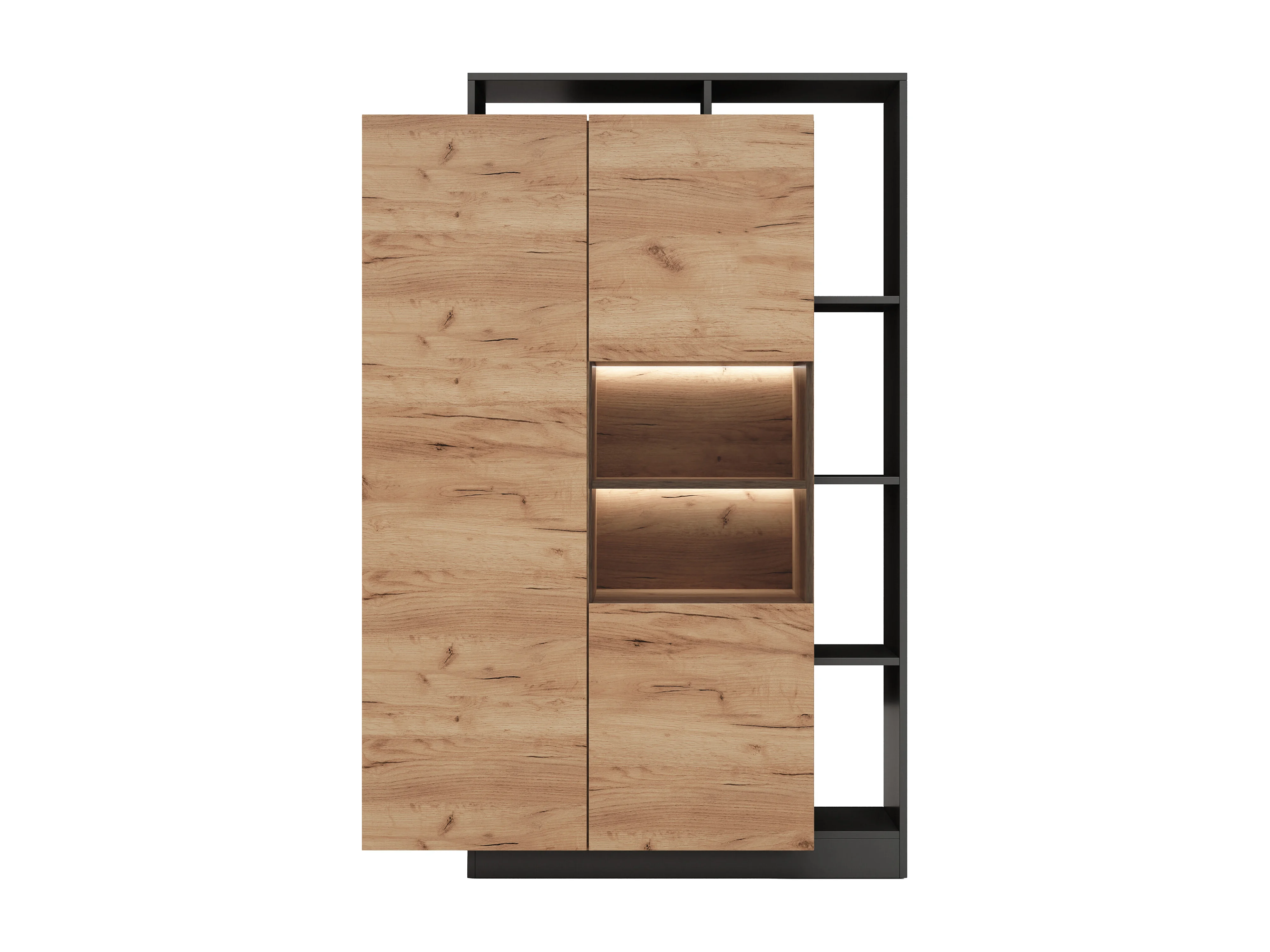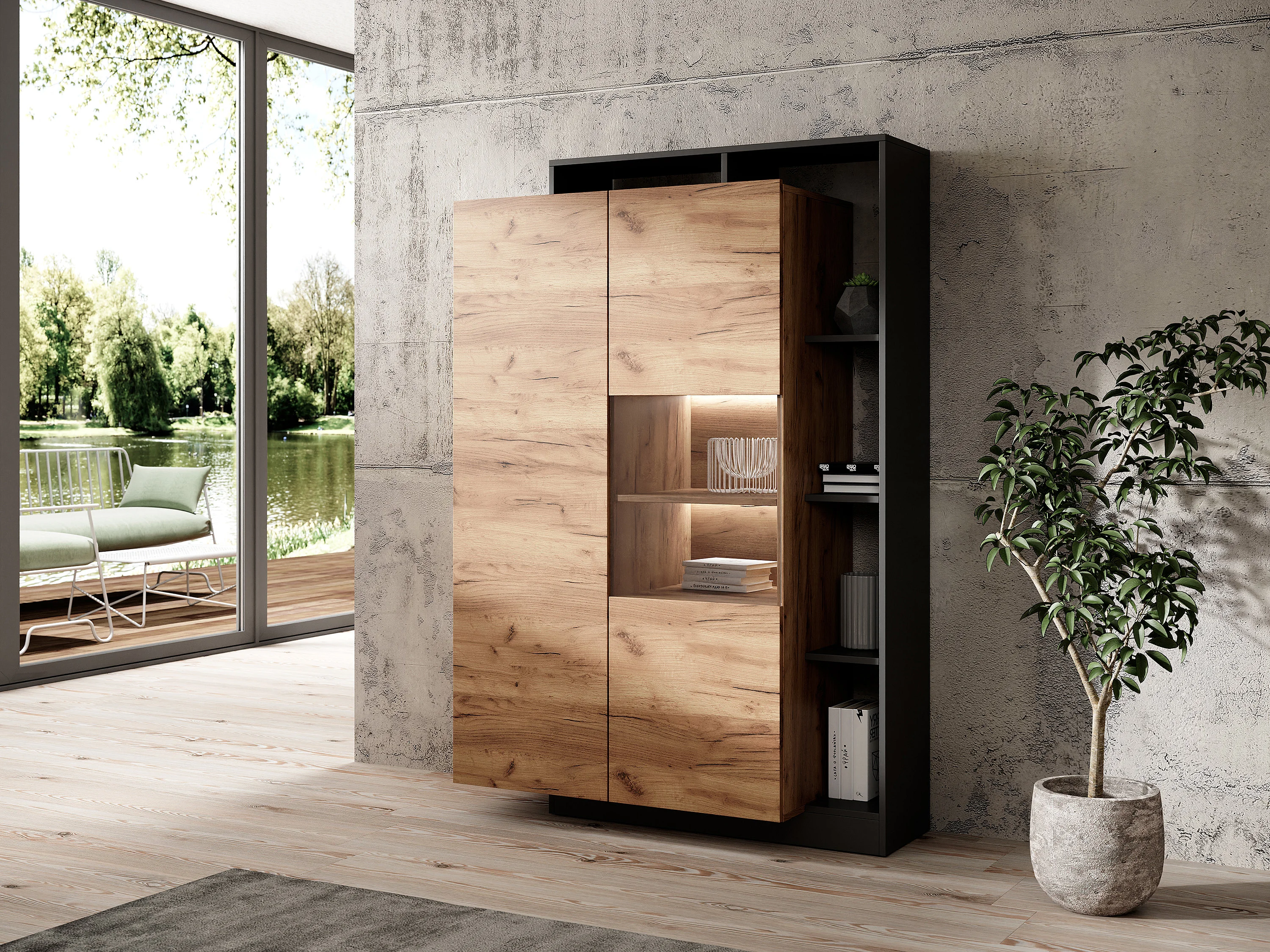 Vitrine 2 portes et 5 niches avec LEDs - Naturel clair et anthracite - IDESIA