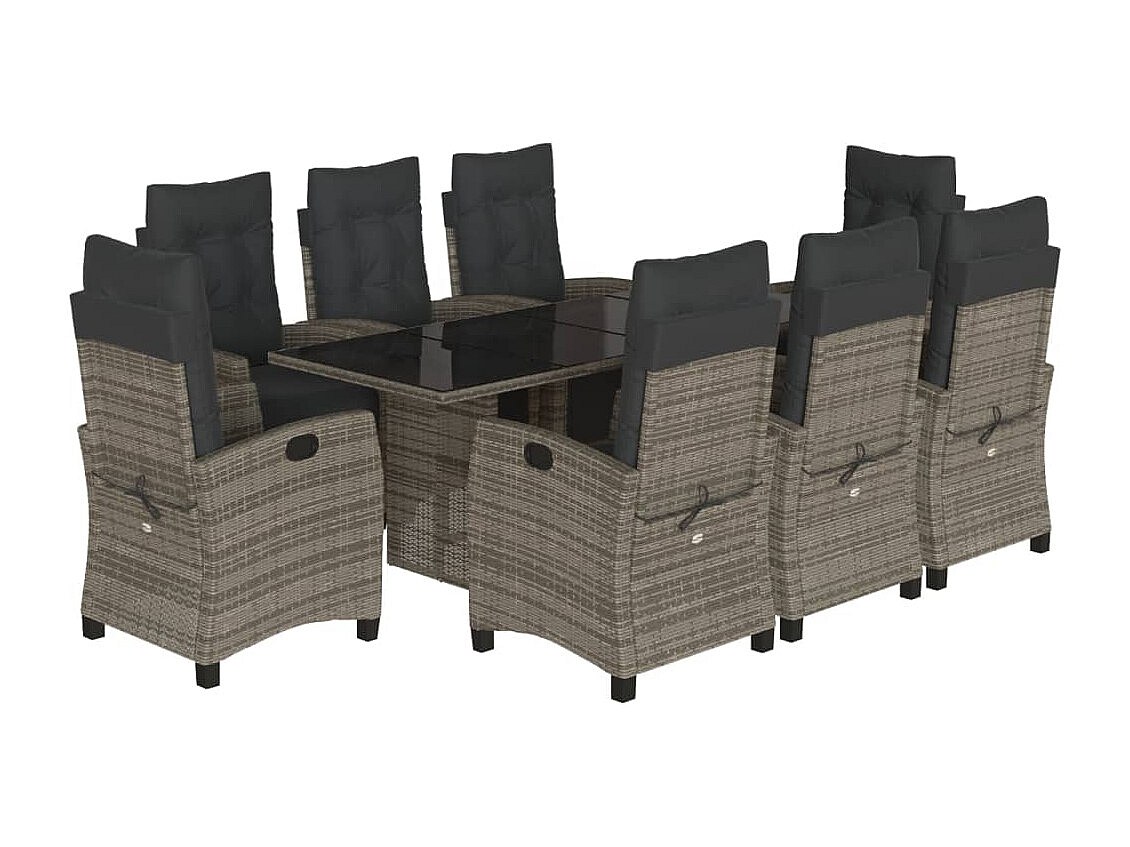 Igmar Ensemble à manger de jardin 9 pcs coussins gris résine tressée
