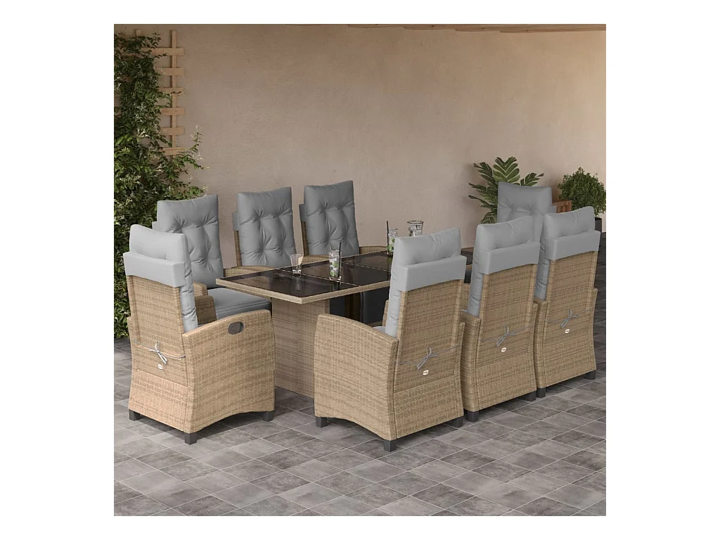 Igmar Ensemble à manger de jardin et coussins 9 pcs mélange beige