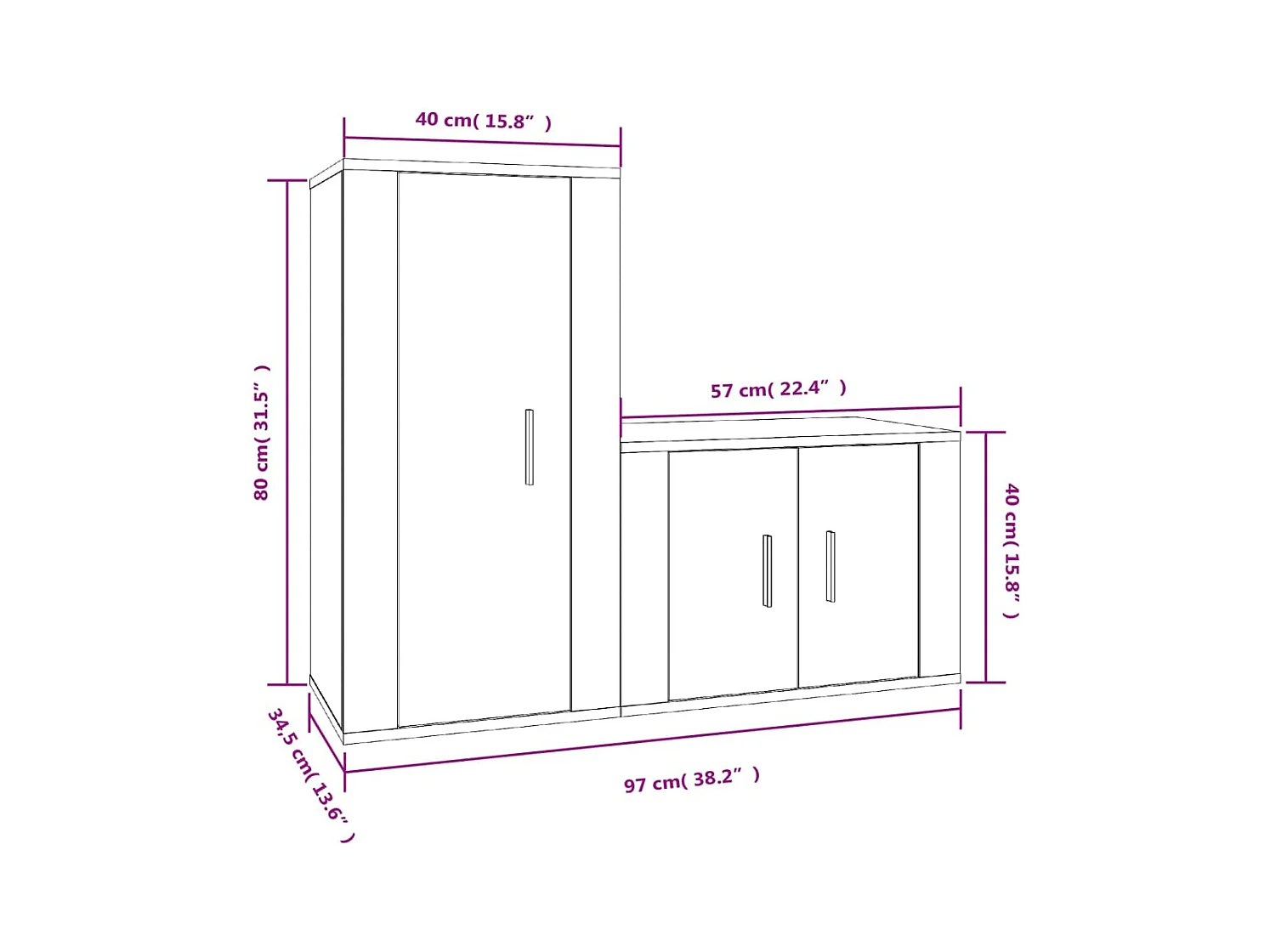 Ilke Ensemble de meubles TV 2 pcs Sonoma gris Bois d'ingénierie