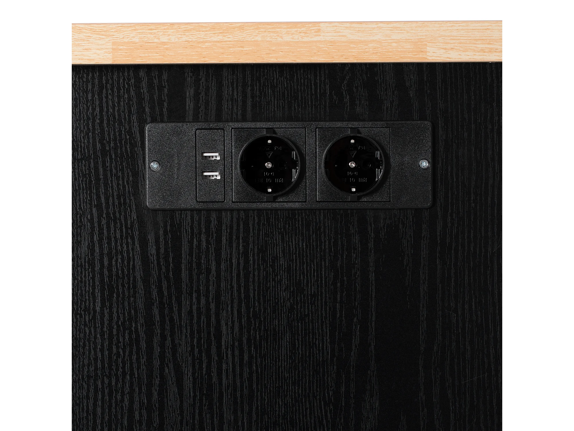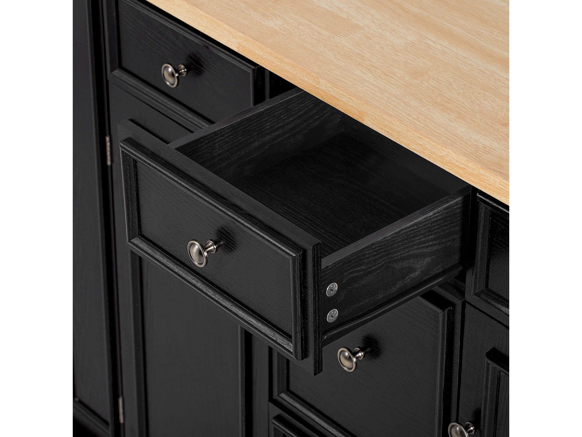 Îlot central de cuisine 130.5x40x92cm - plateau pliable - avec prise de courant - avec 2 portes et 5 tiroirs - noir