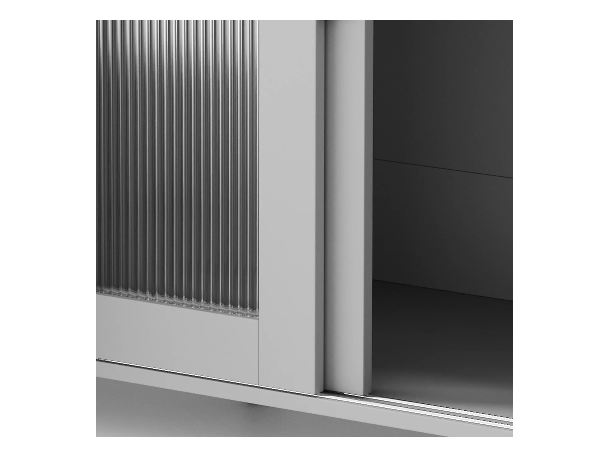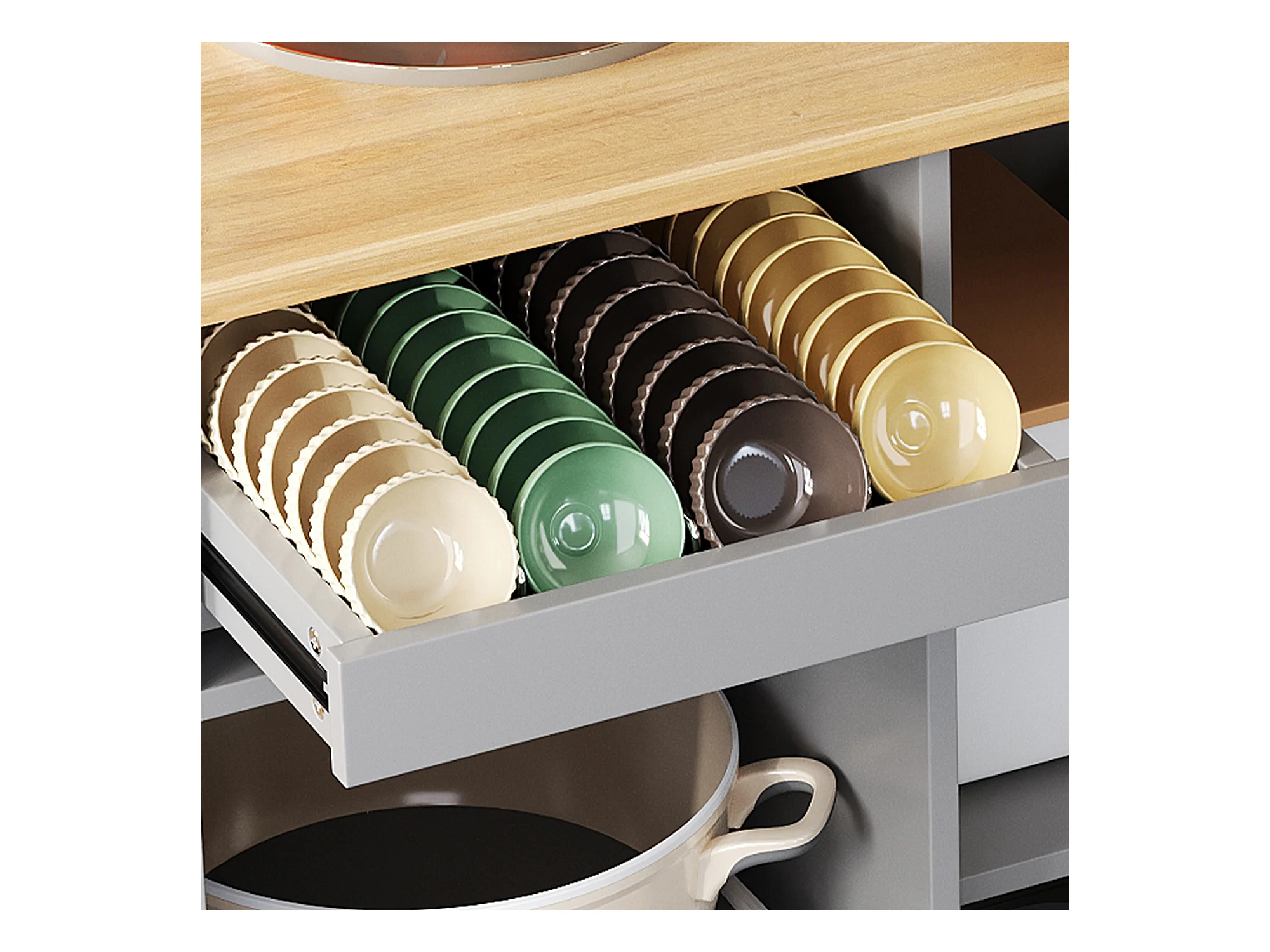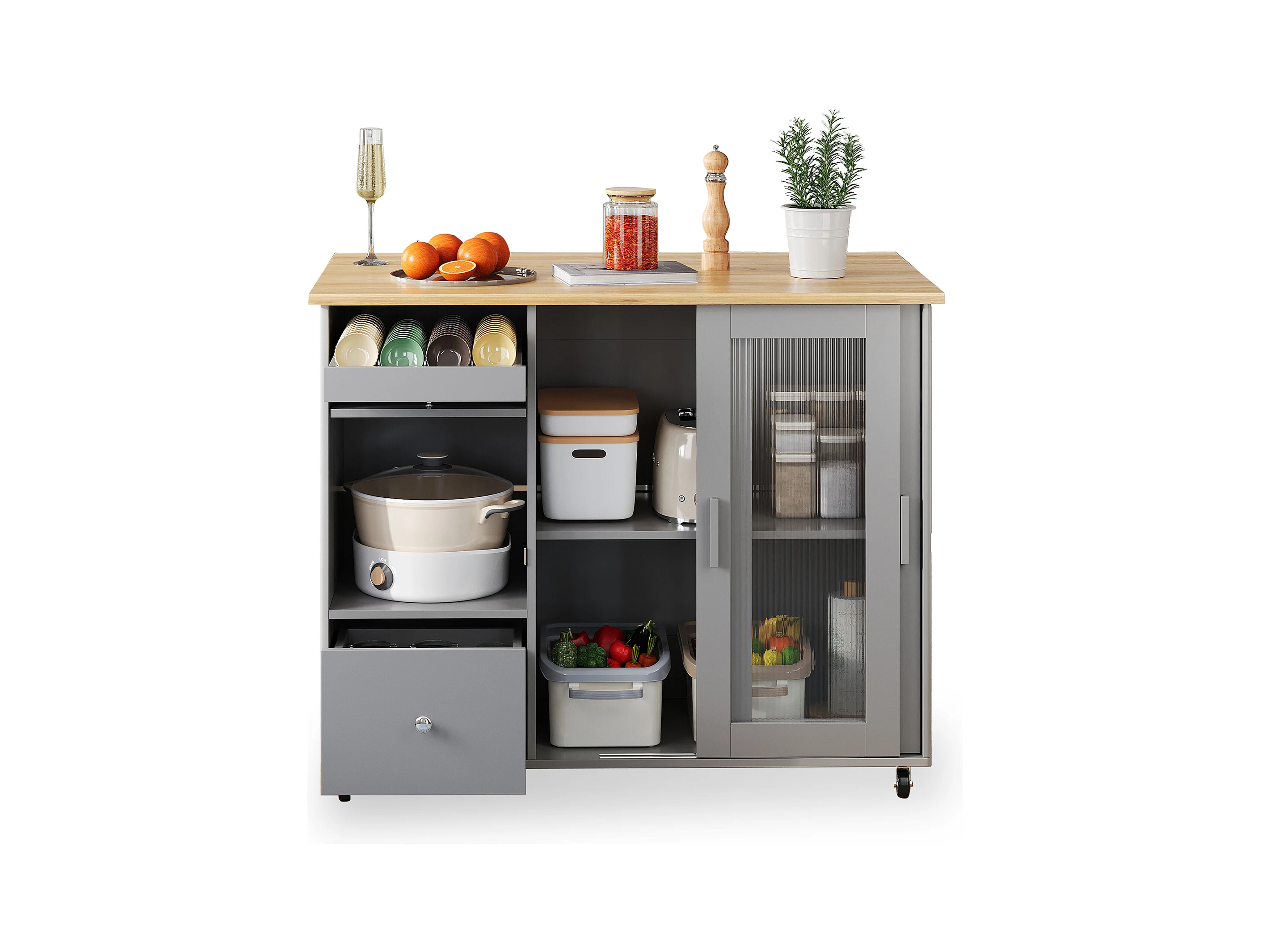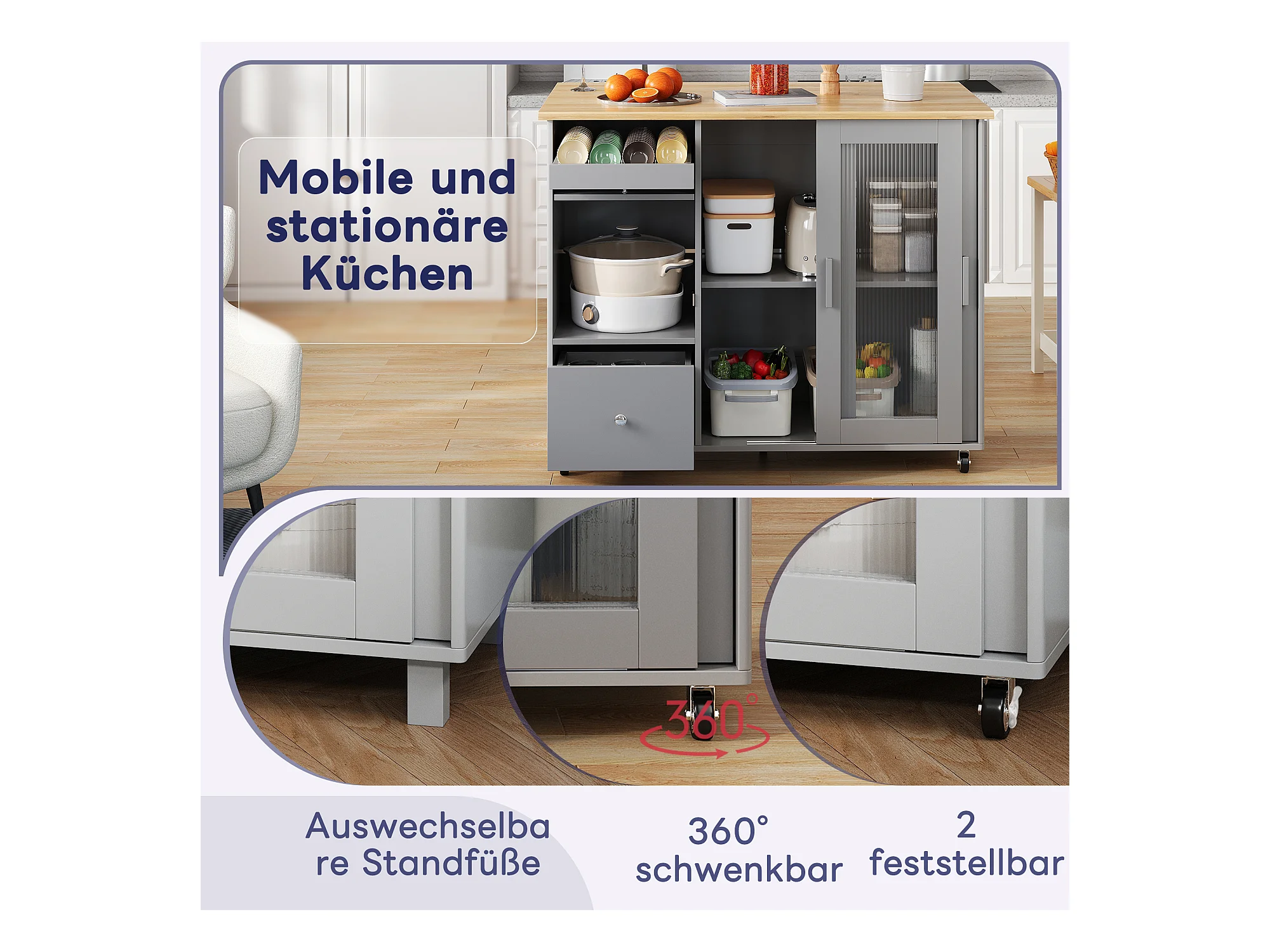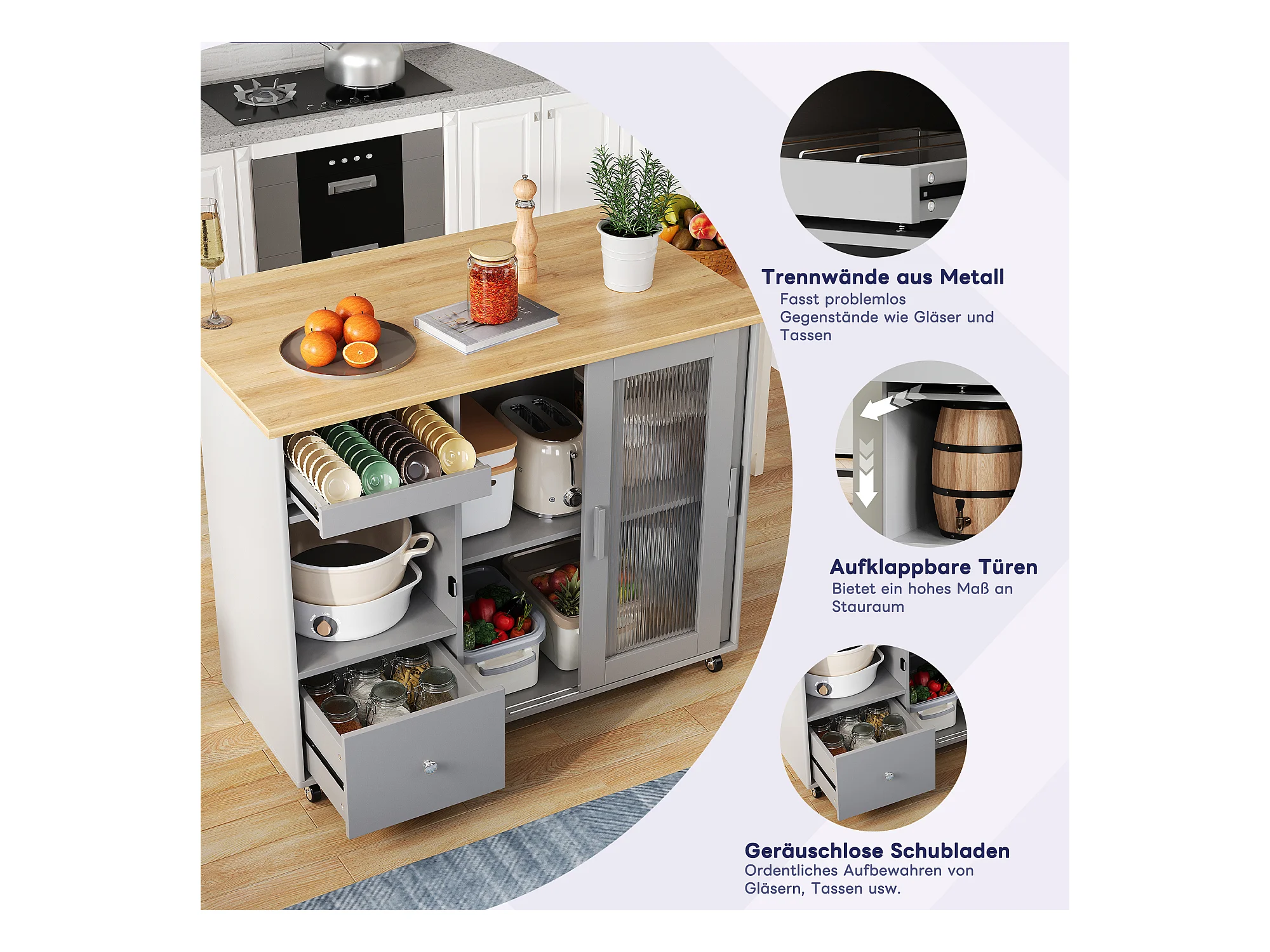 Ilot central de cuisine mobile avec 2 portes coulissantes, 1 tiroir et casier à vin - plateau extensible - 112x46/69x91 cm - MDF - Gris