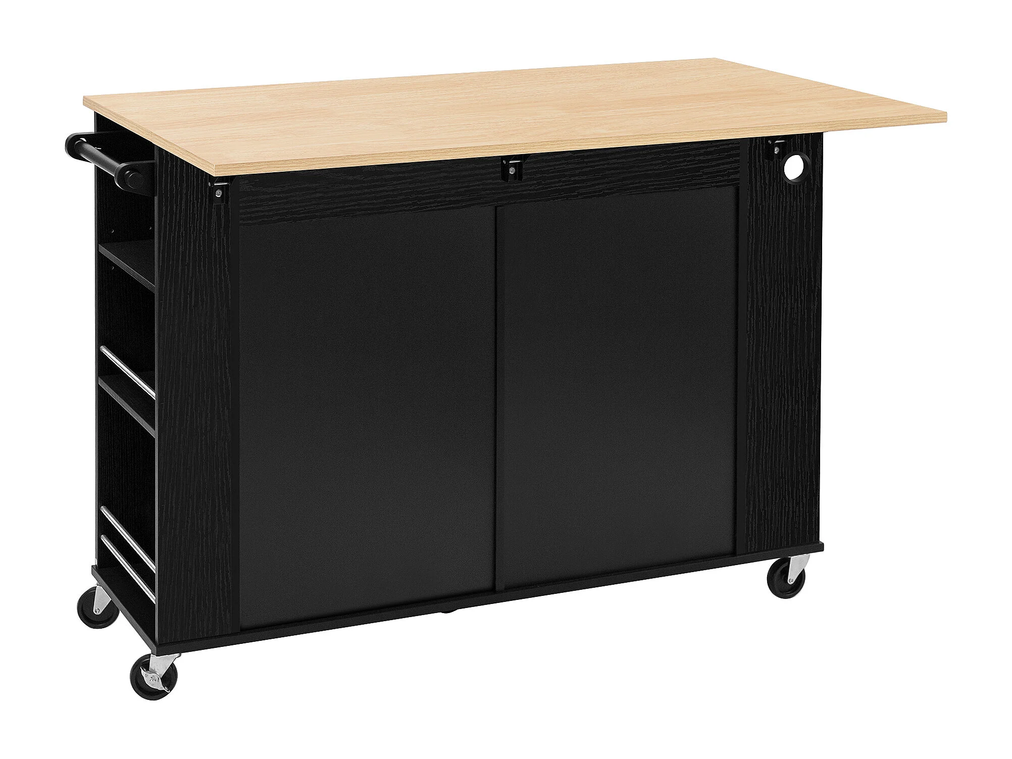 Îlot central de cuisine sur roulettes, avec poubelle, 2 tiroirs. porte et prise - Bois noir