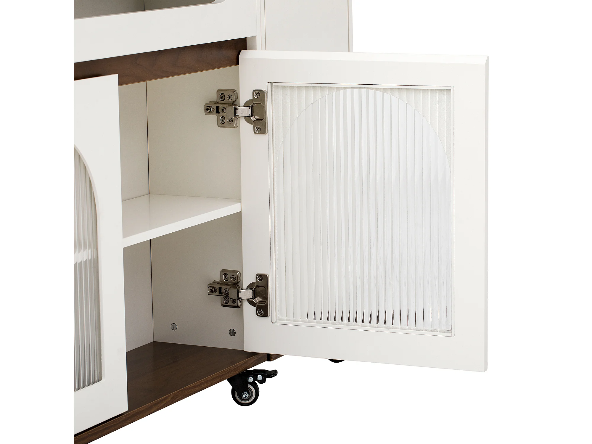 Îlot central de cuisine - table à manger extensible - avec prise de courant - avec roulettes et espace de rangement - avec crochet - Marron+Blanc