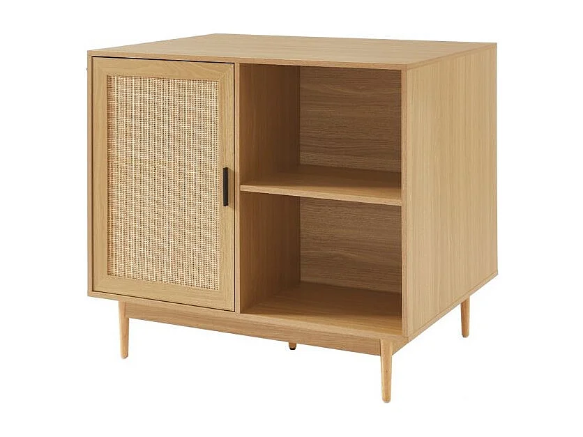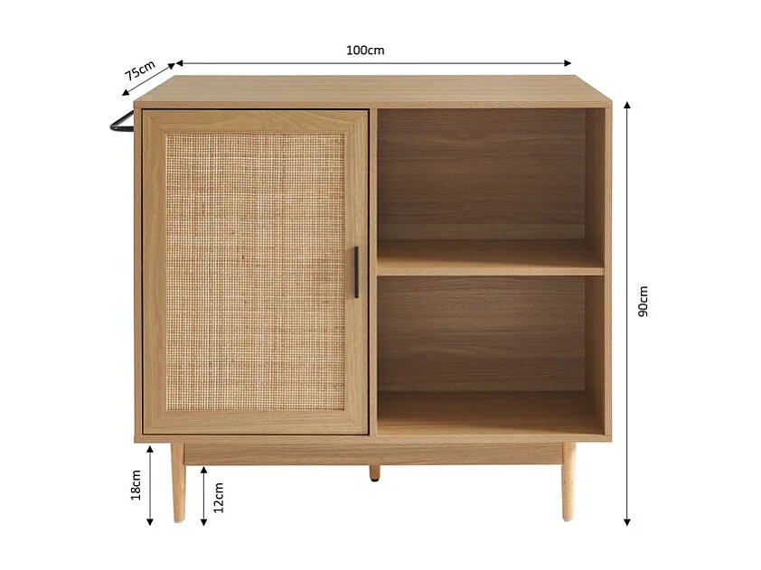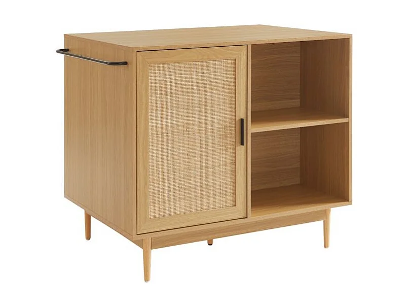 Ilot central effet chêne et cannage rotin 100 cm ZIRCON