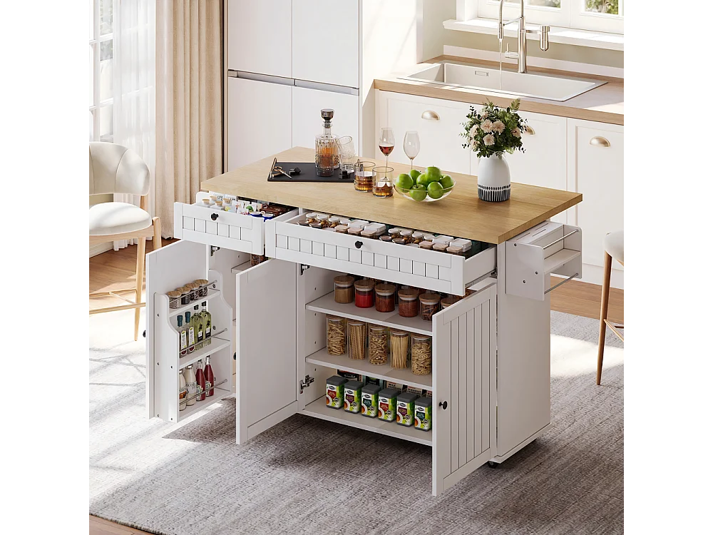 Îlot central plan travail rabattable armoire 6 roulettes verrouillables étagère étagère porte 2 tiroirs blanc