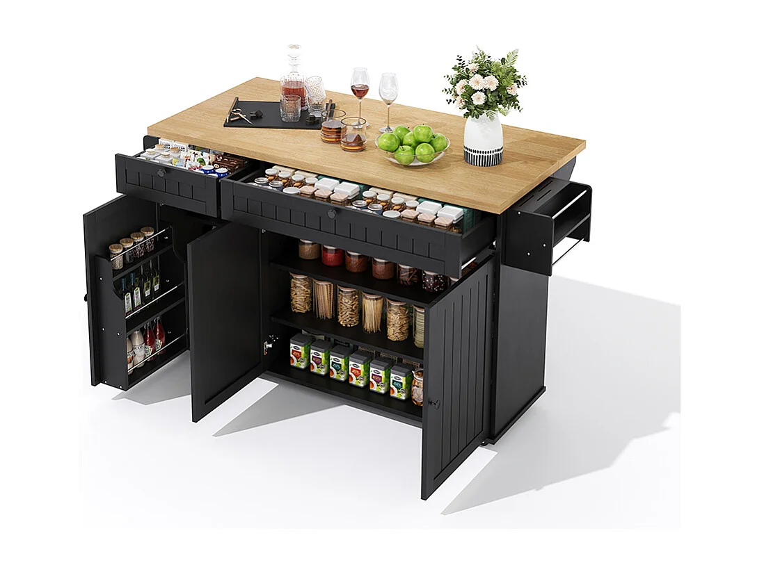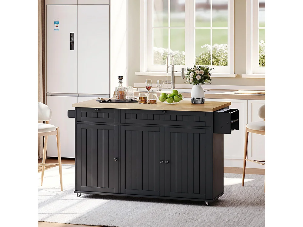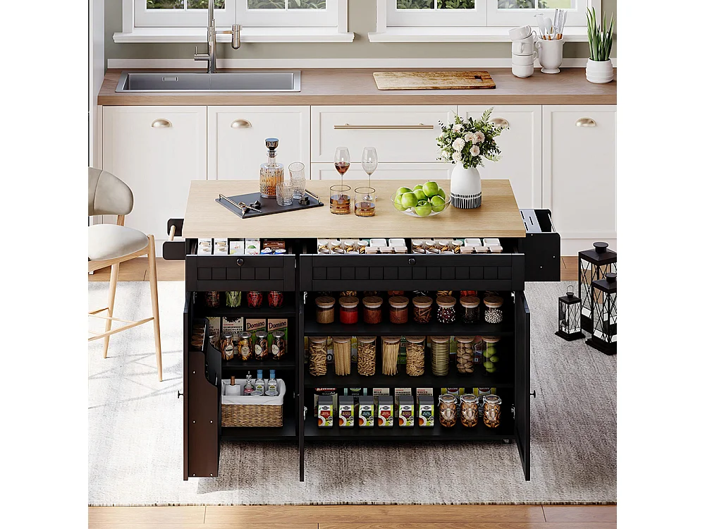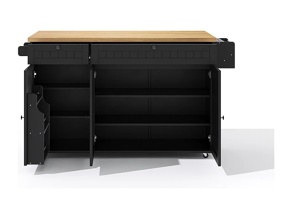 Îlot central plan travail rabattable armoire 6 roulettes verrouillables étagère porte-serviettes 2 tiroirs noir