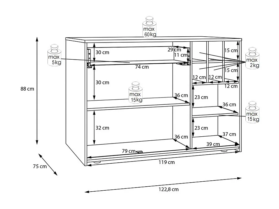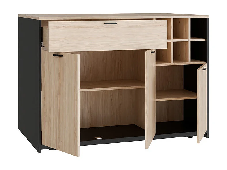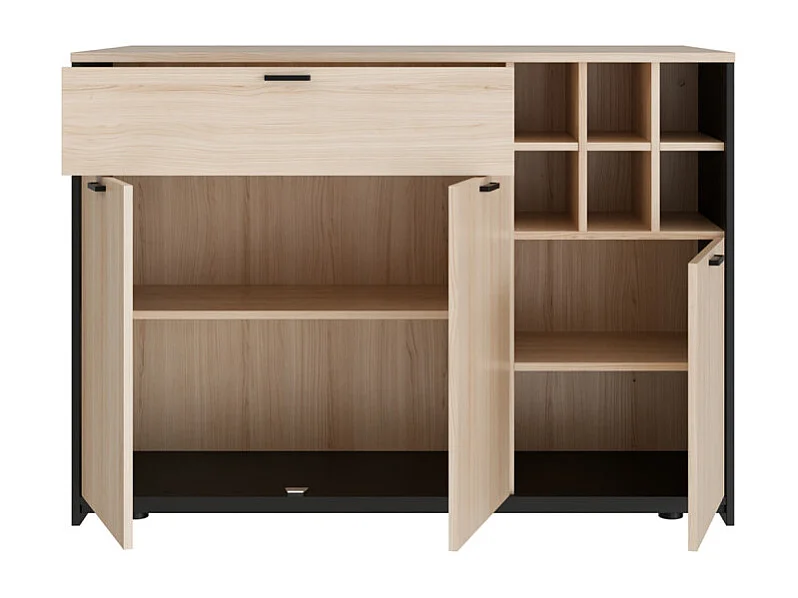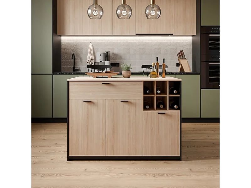 Ilot central rangement 3 portes 1 tiroir décor bois clair et noir - KEMA