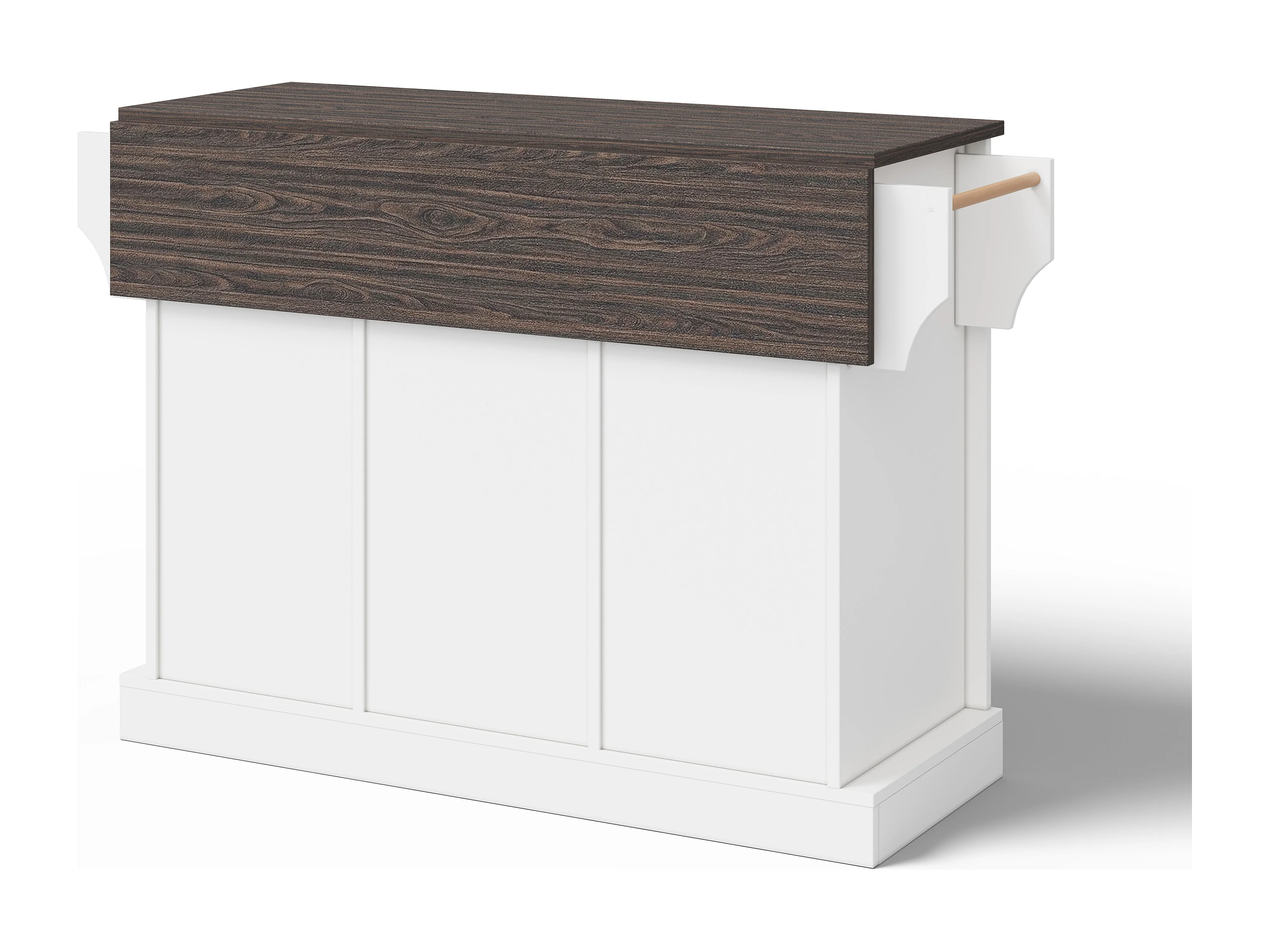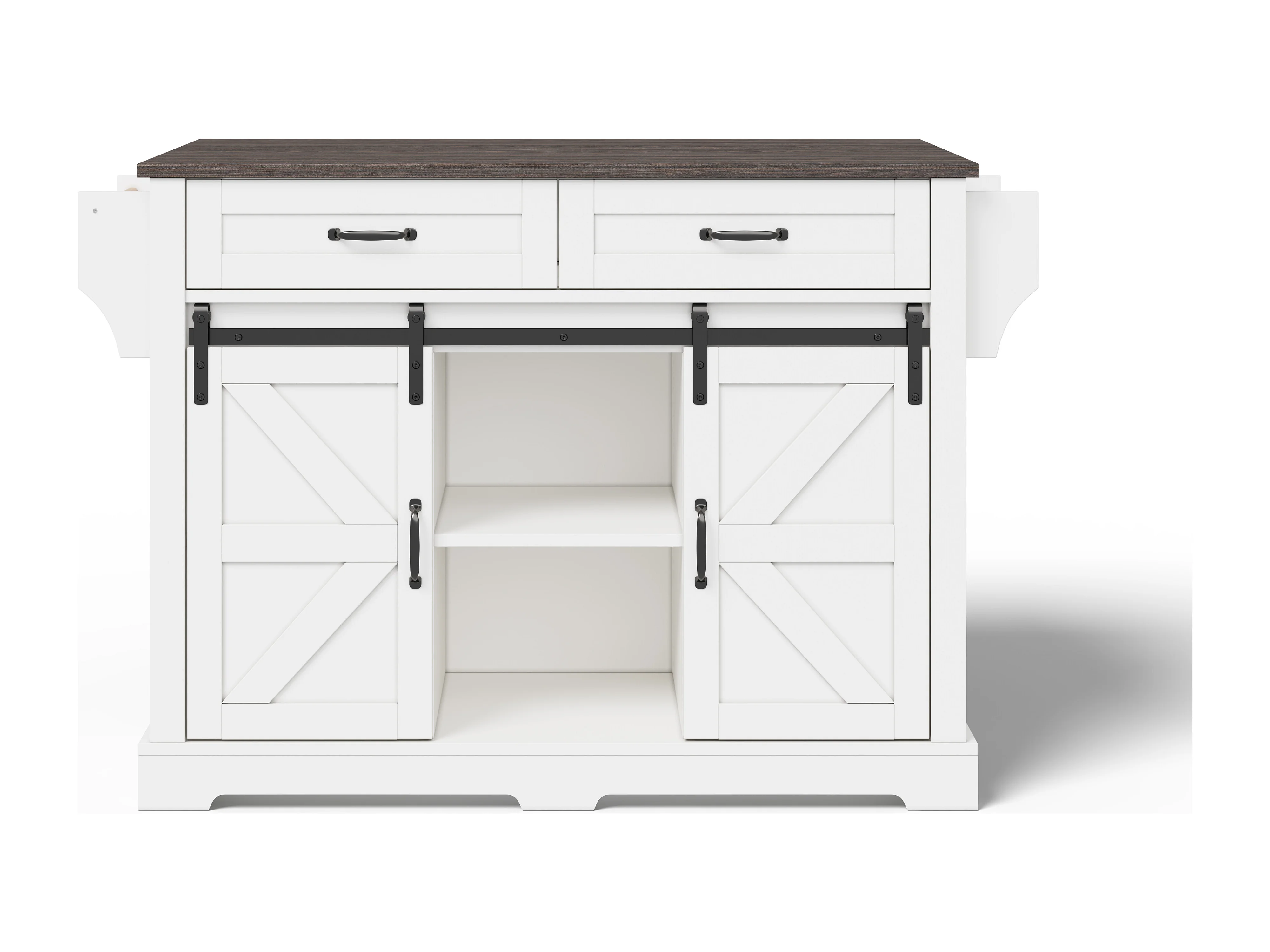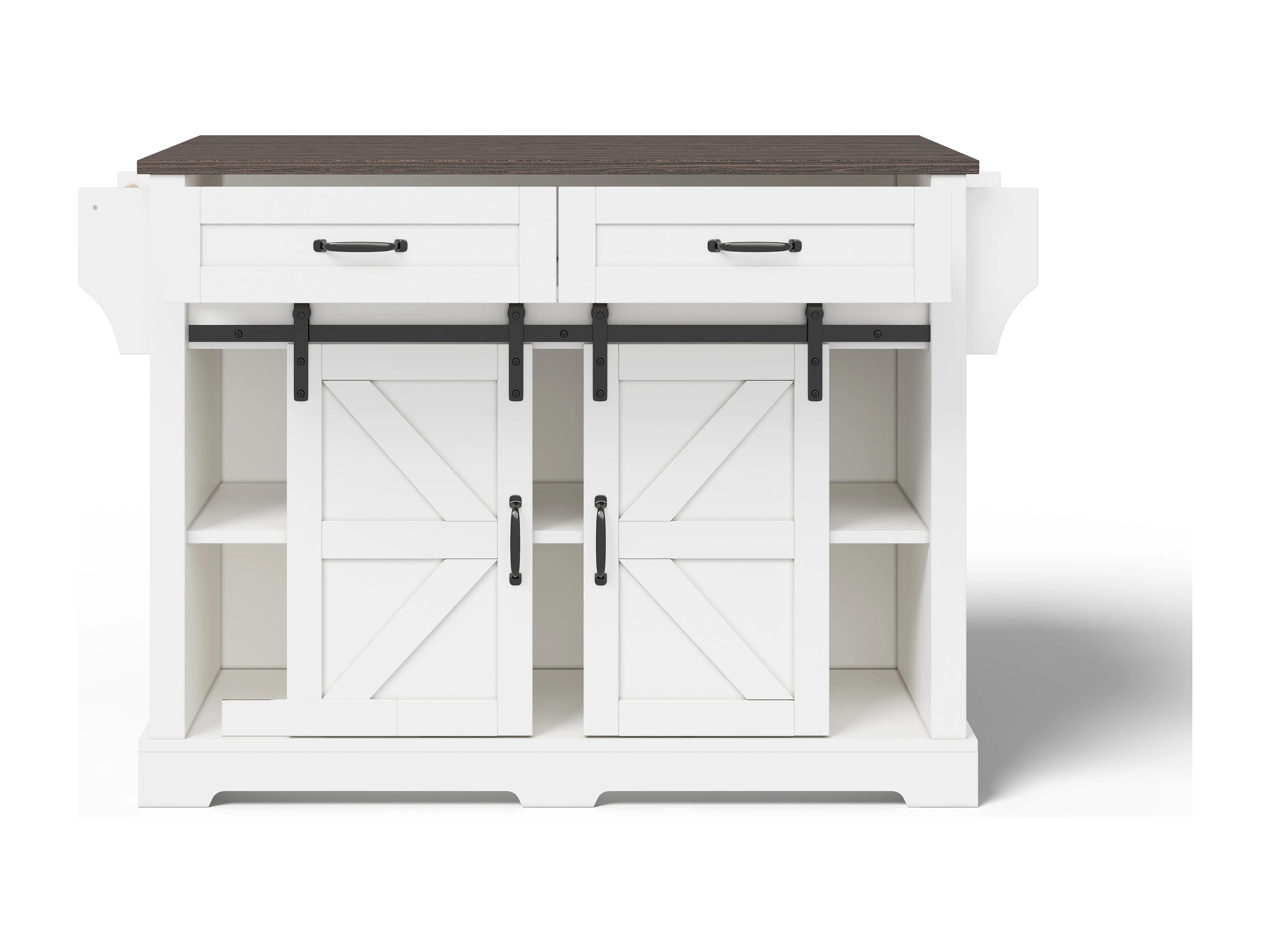 Îlot central sur roulettes 120 × 45 (70) cm blanc avec 2 portes coulissantes et 2 tiroirs
