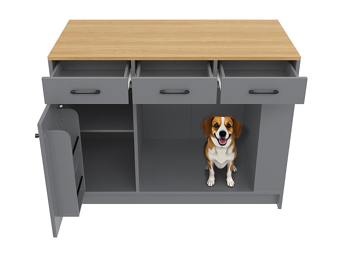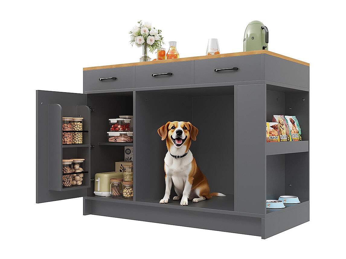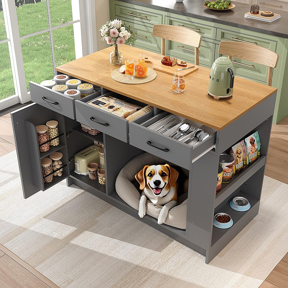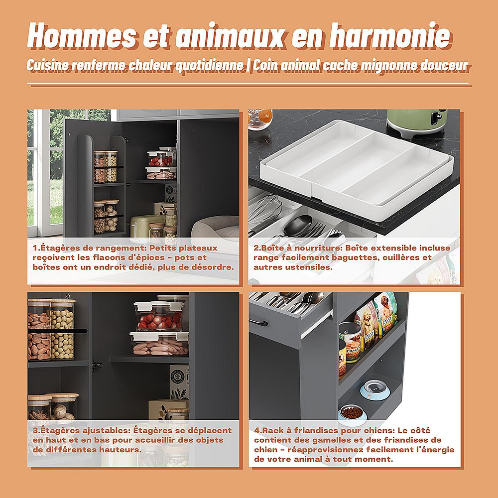 Îlot cuisine 3 tiroirs étagère épices tablette réglable double tablette espace rangement animaux gris