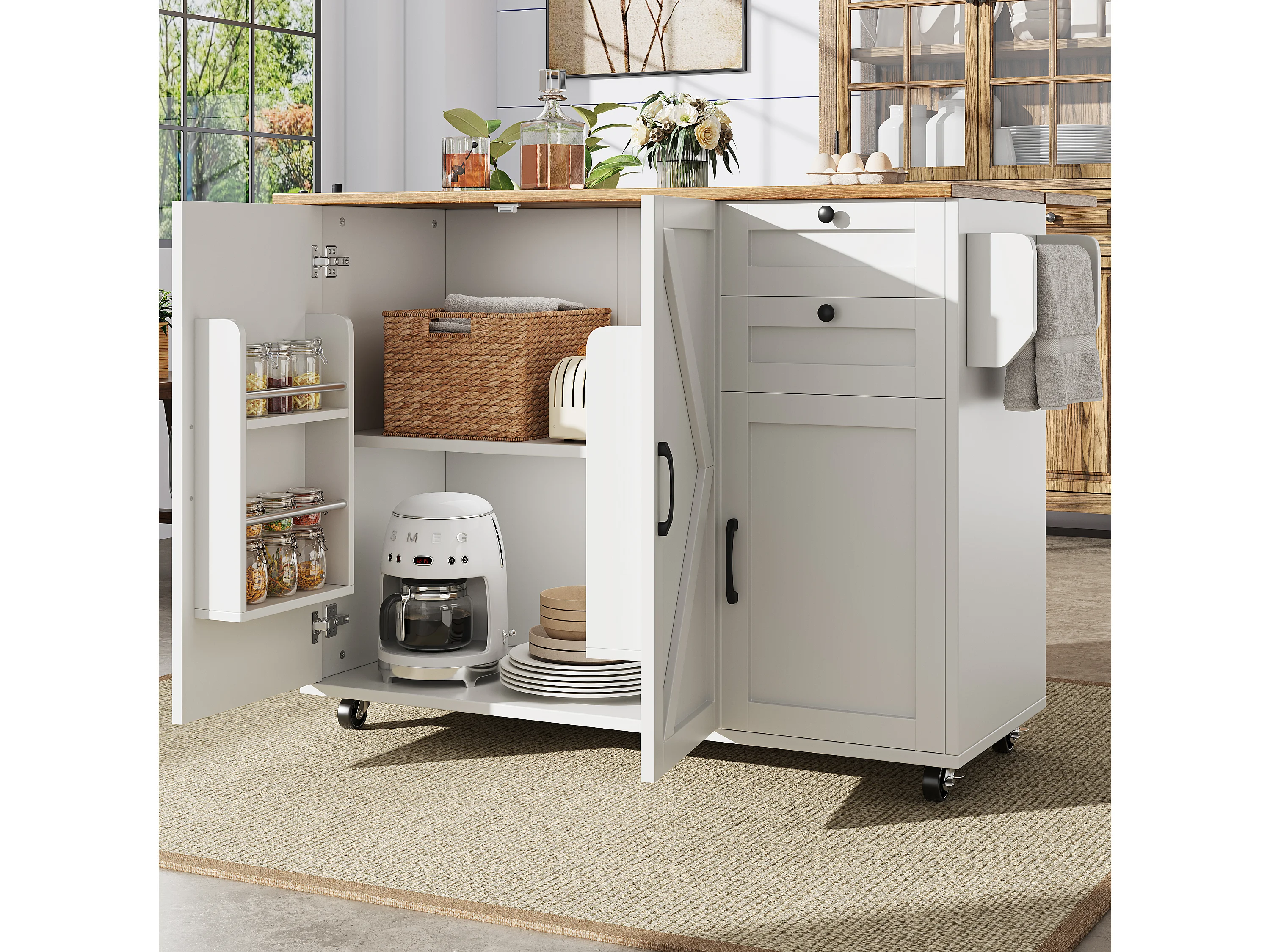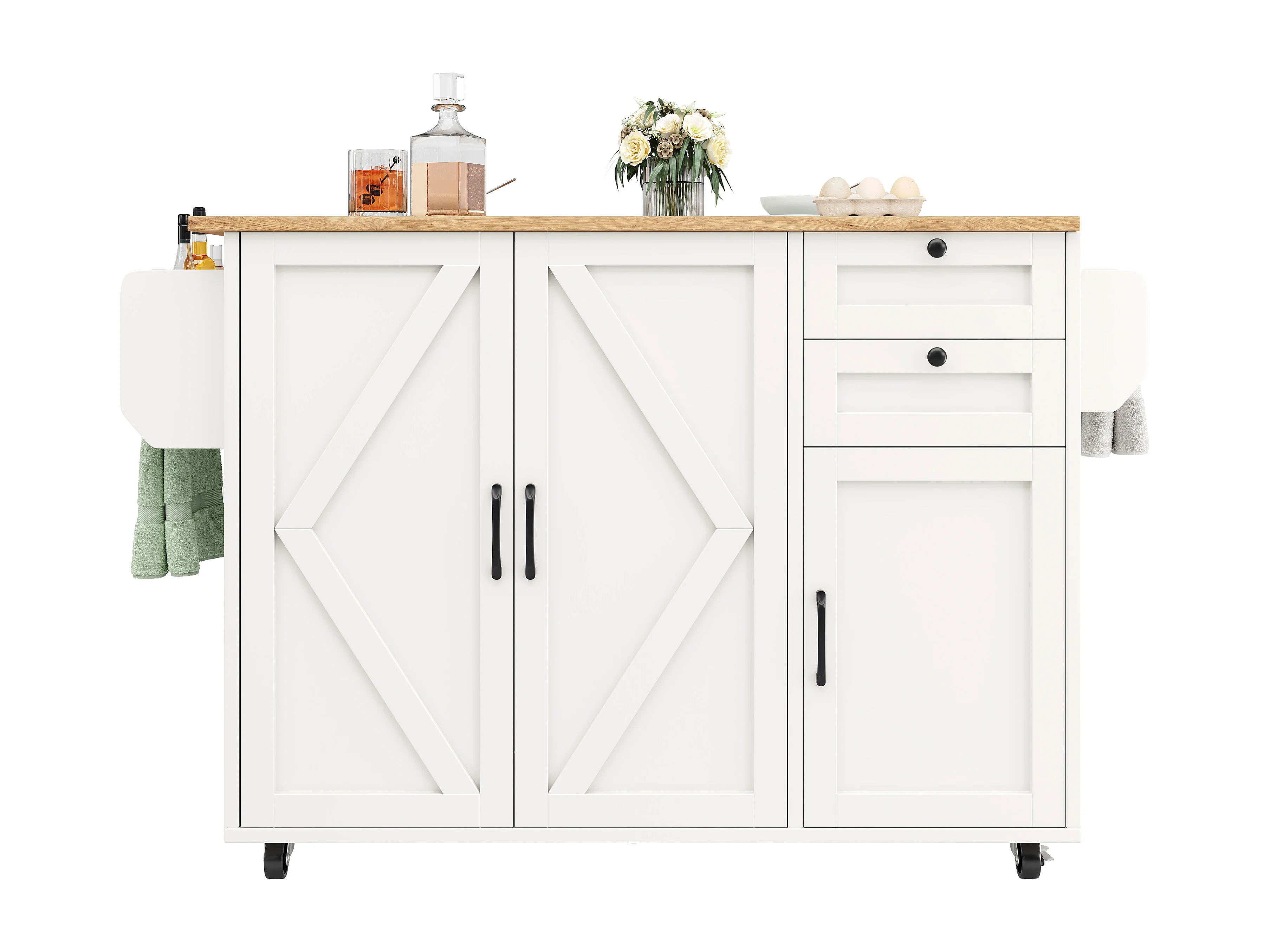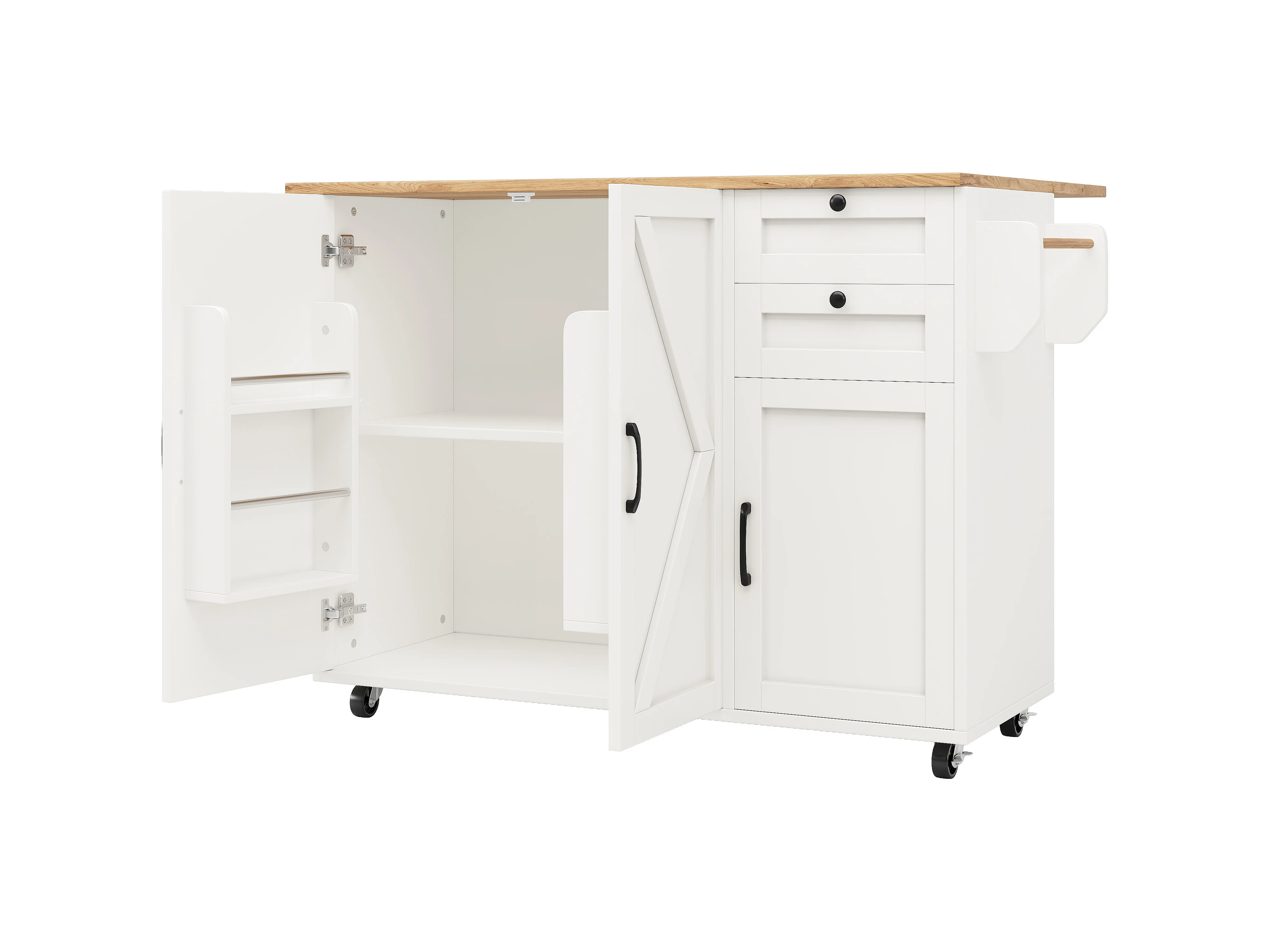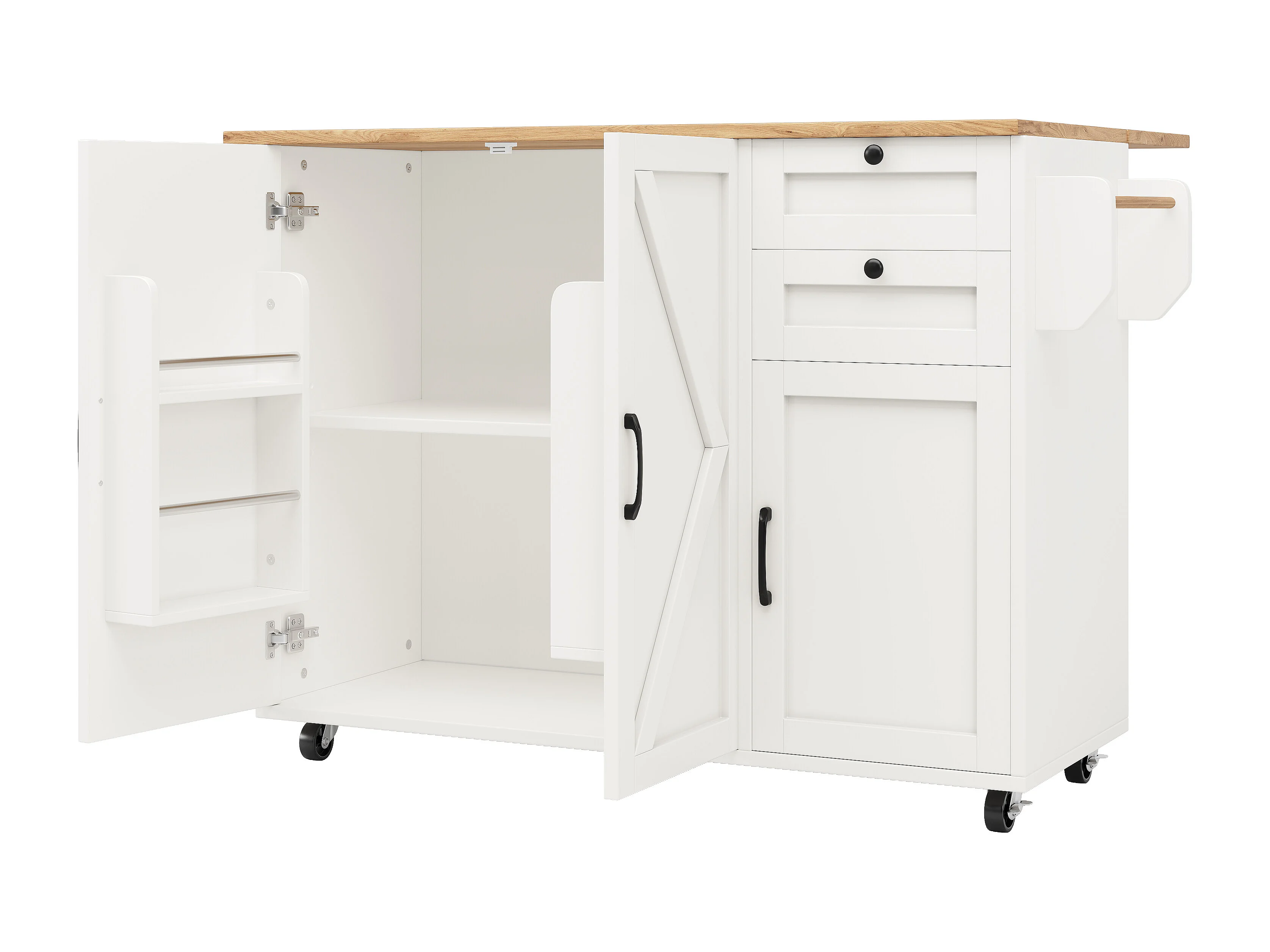 Îlot de cuisine avec surface extensible, meuble de rangement multifonctionnel, MDF, blanc, 120x43.2x92 cm