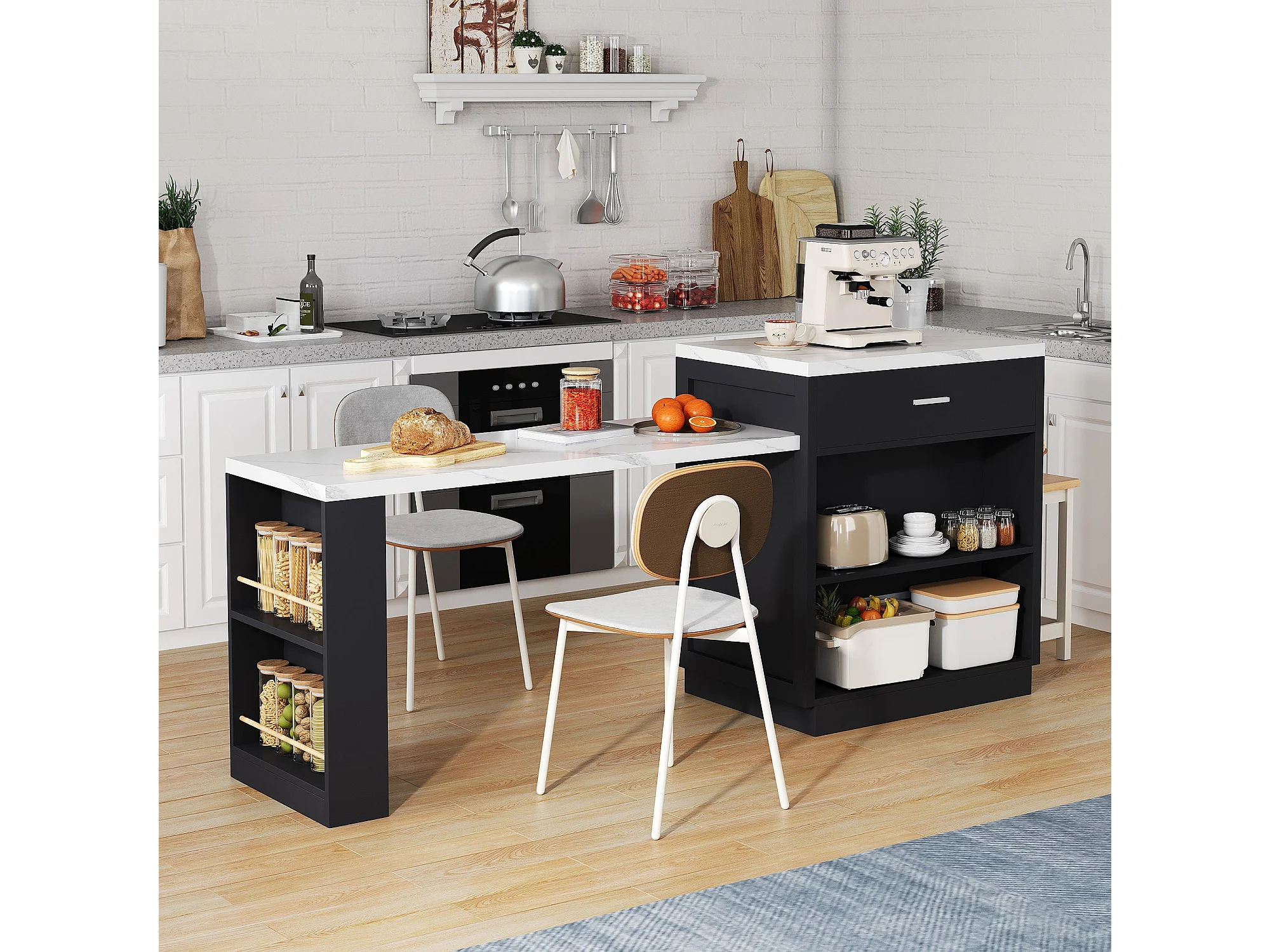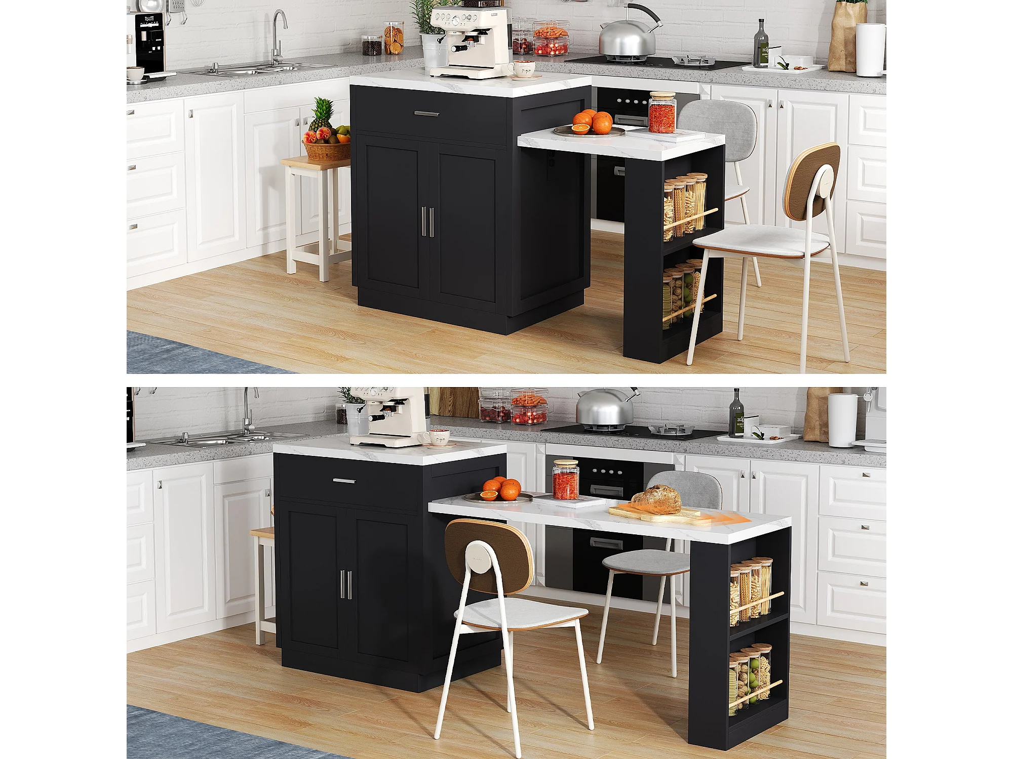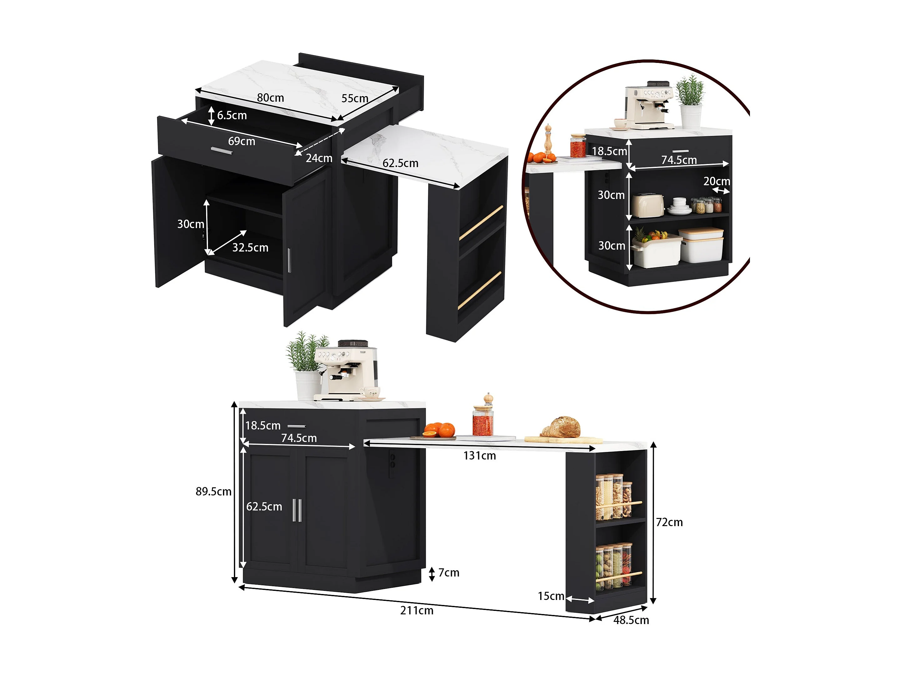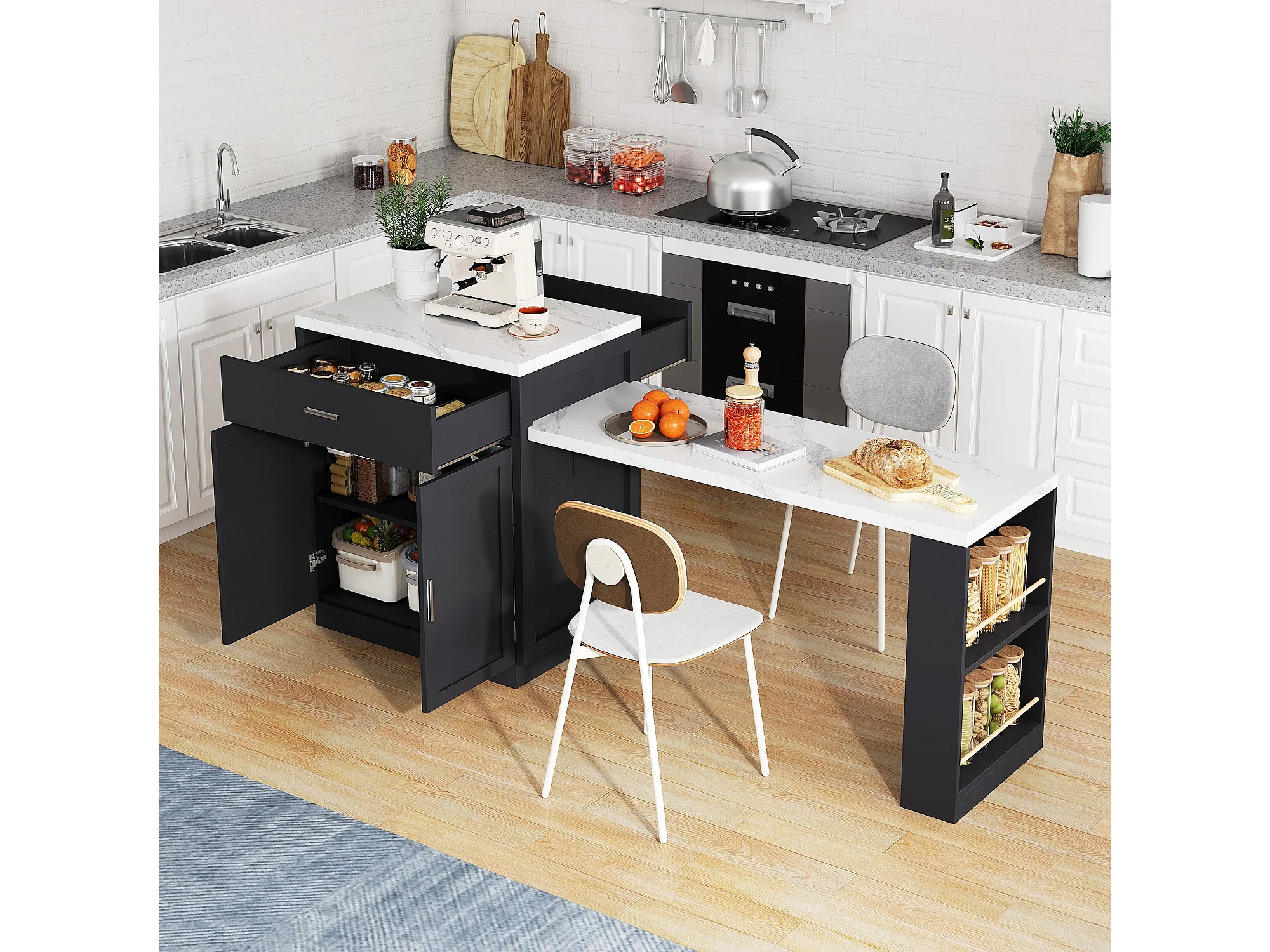 Îlot de cuisine avec table à rallonge pour 4 à 6 personnes, prise électrique, armoire de rangement