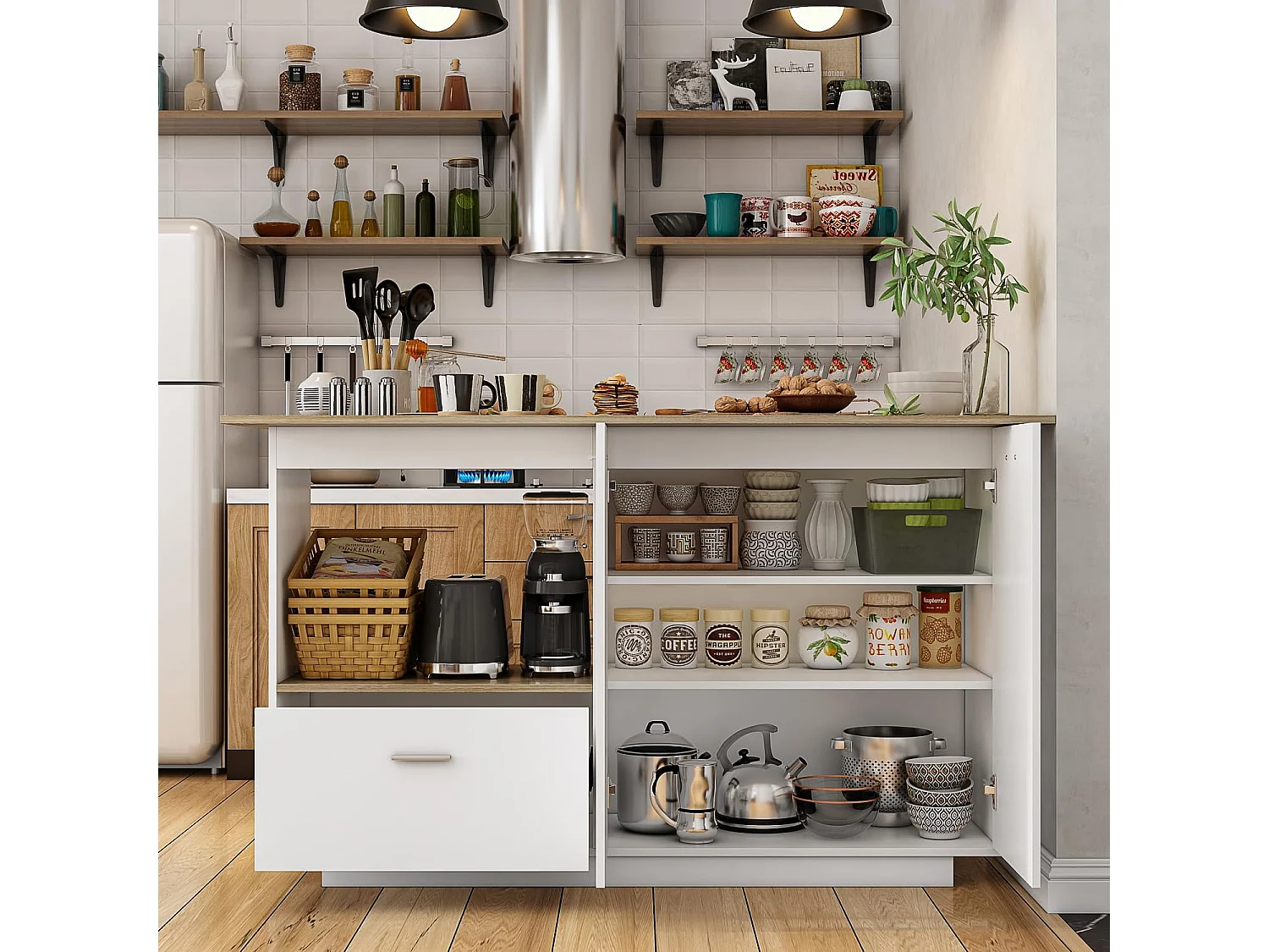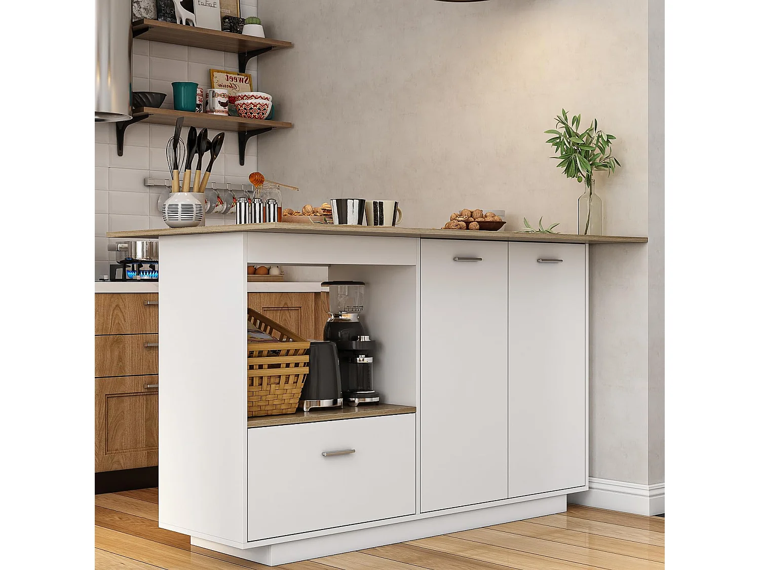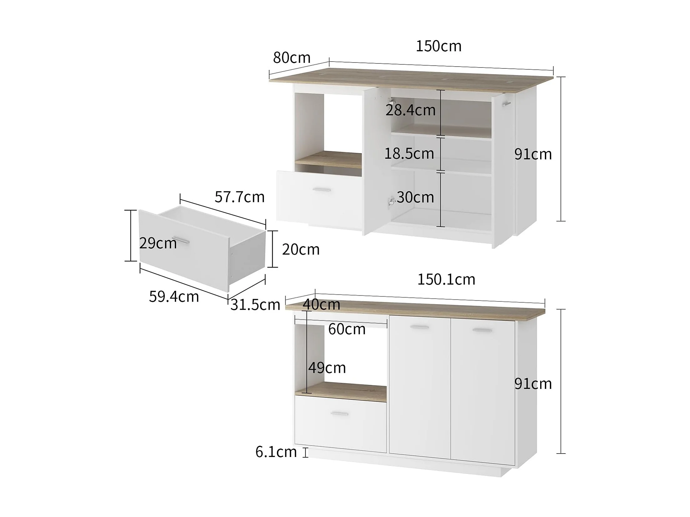 Îlot de cuisine avec tiroirs, Travail de plan,pour la cuisine, salon Bois&Blanc, 150x91x80cm