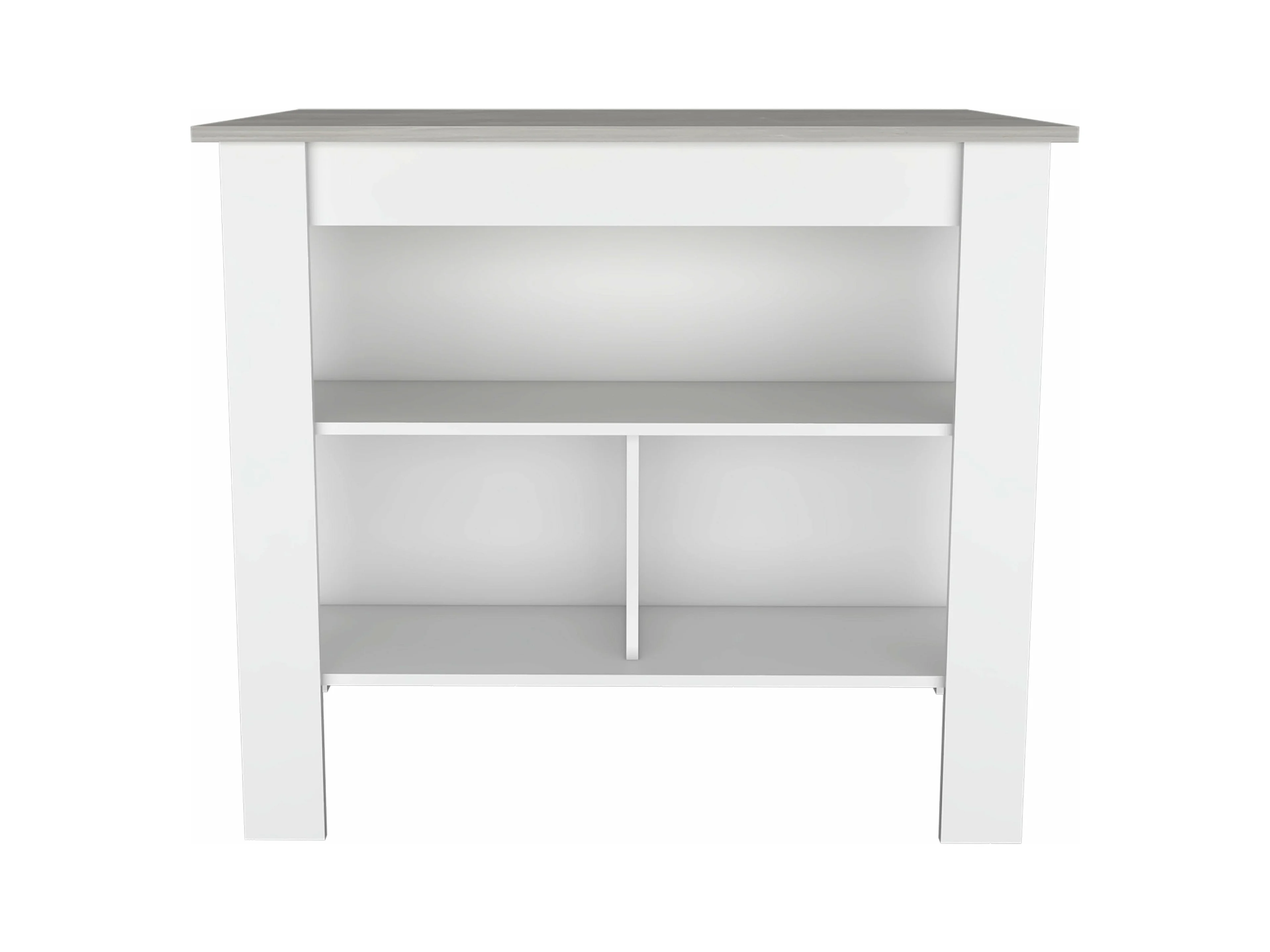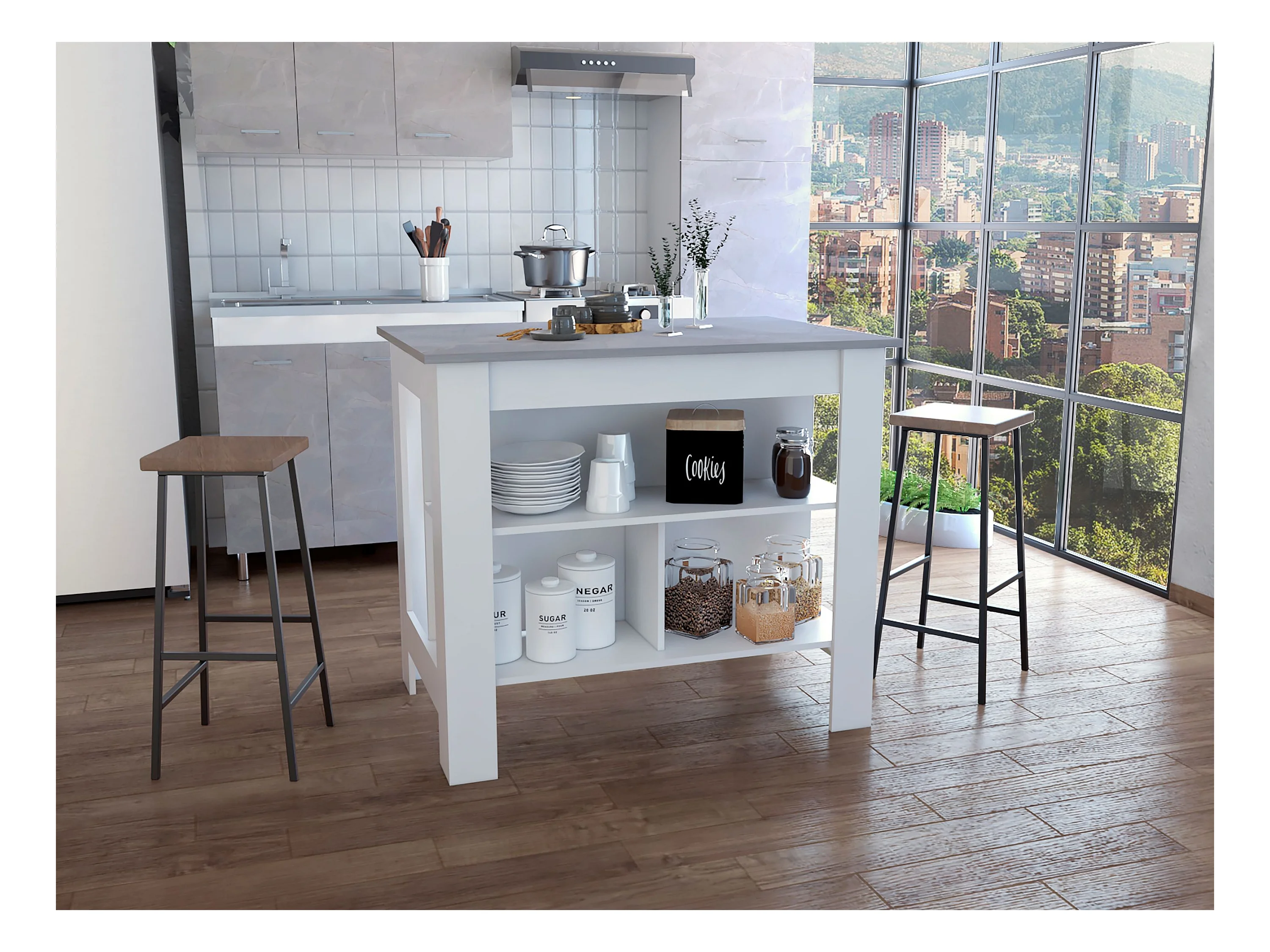 Ilot de cuisine Cala avec trois étagères et quatre pieds, 89.91 cm X 102.87 cm X 69.85 cm , Blanc / Ibiza