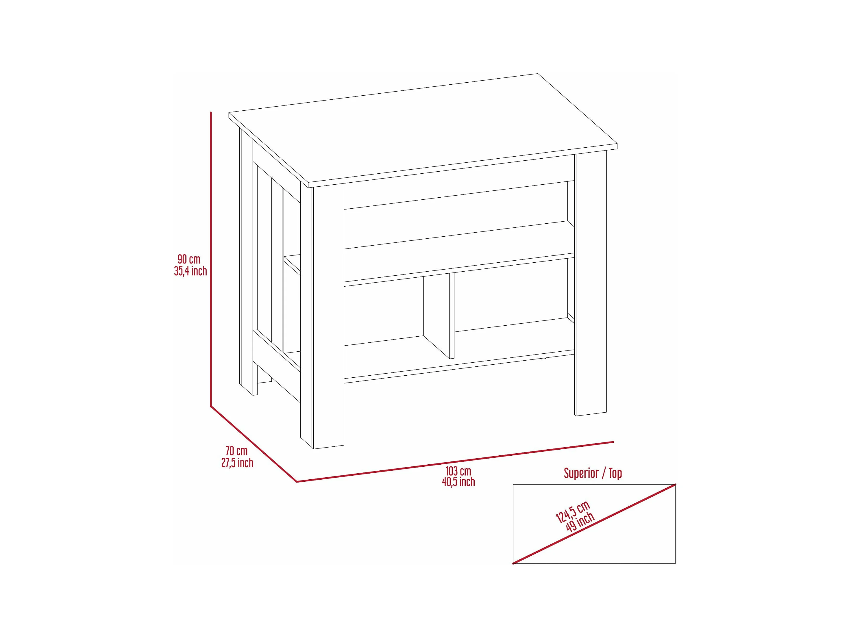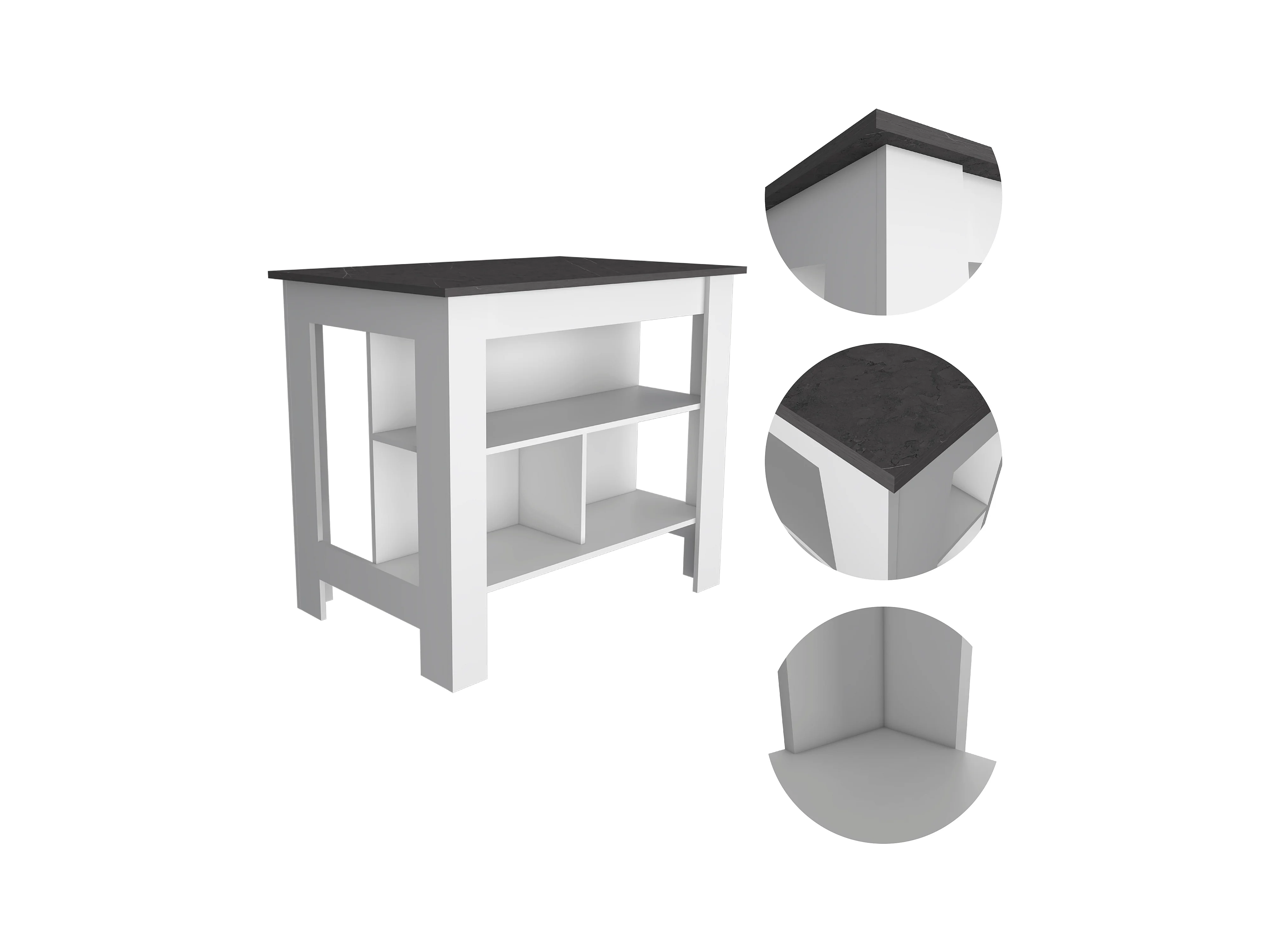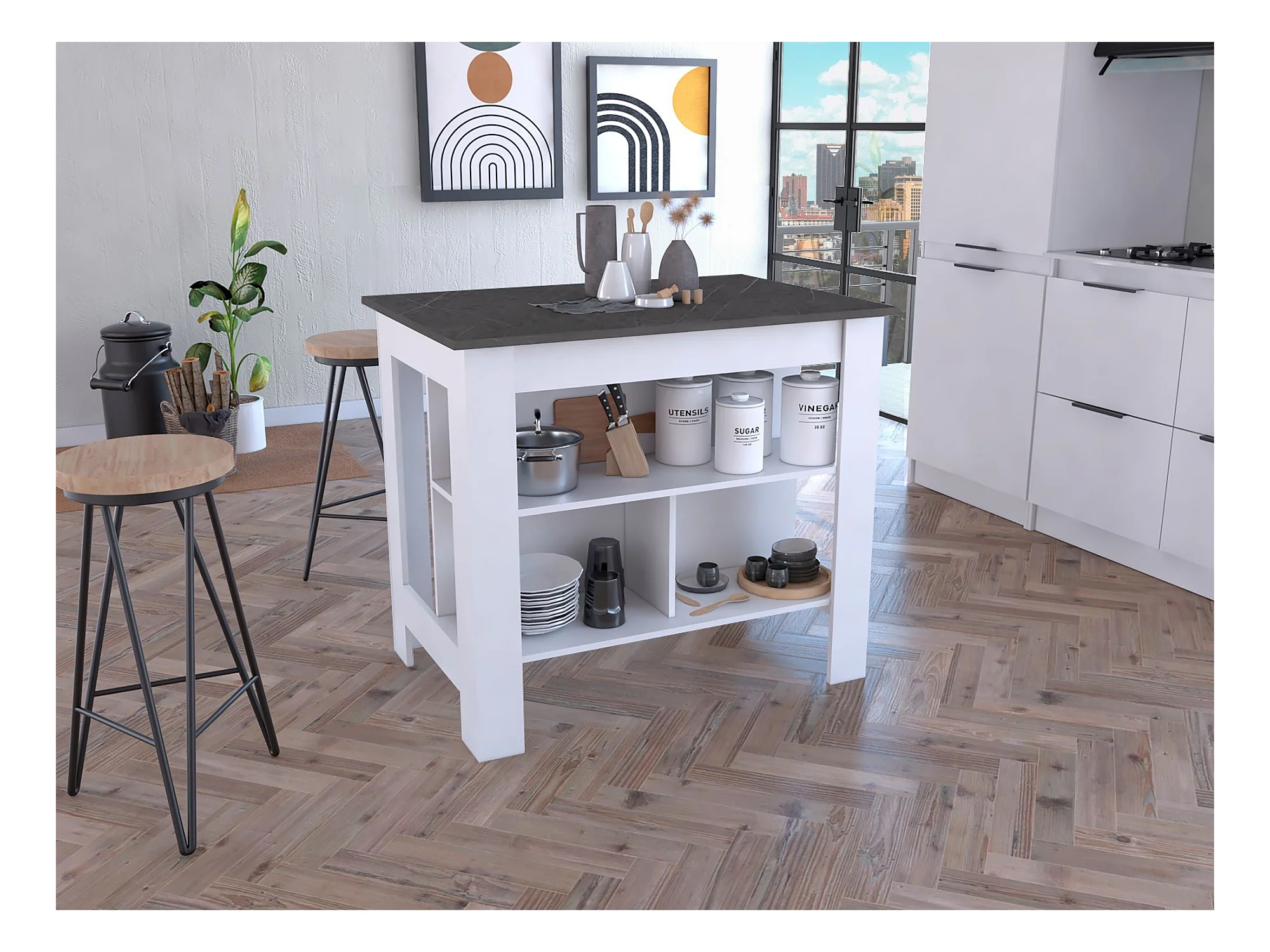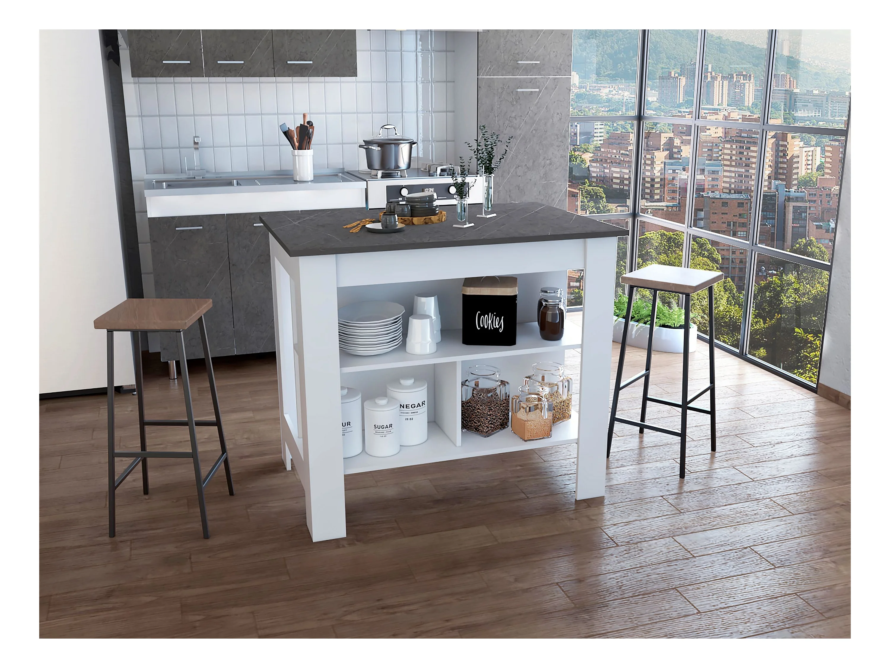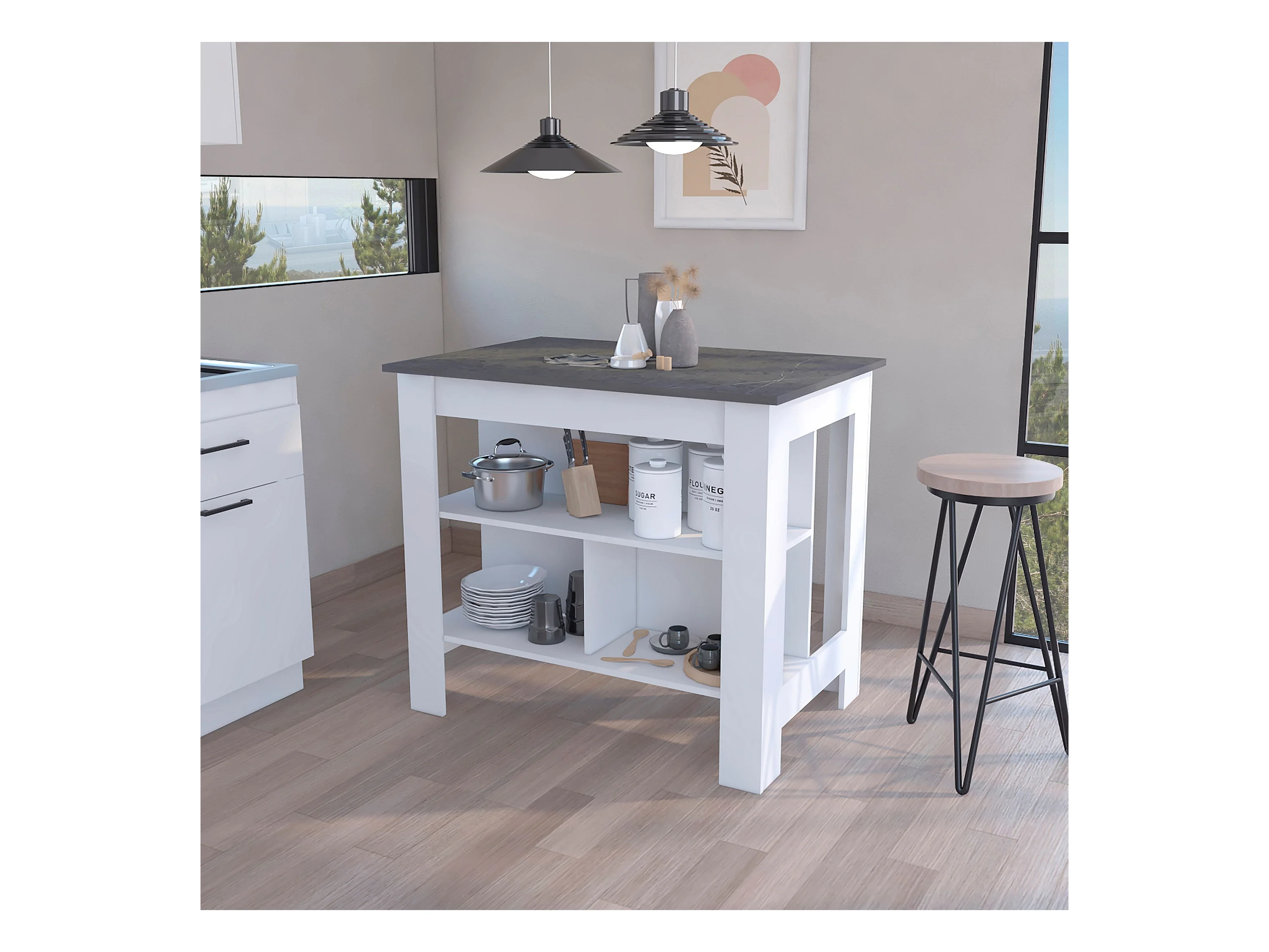 Ilot de cuisine Cala avec trois étagères et quatre pieds , 89.91 cm X 102.87 cm X 69.85 cm , Multicolore