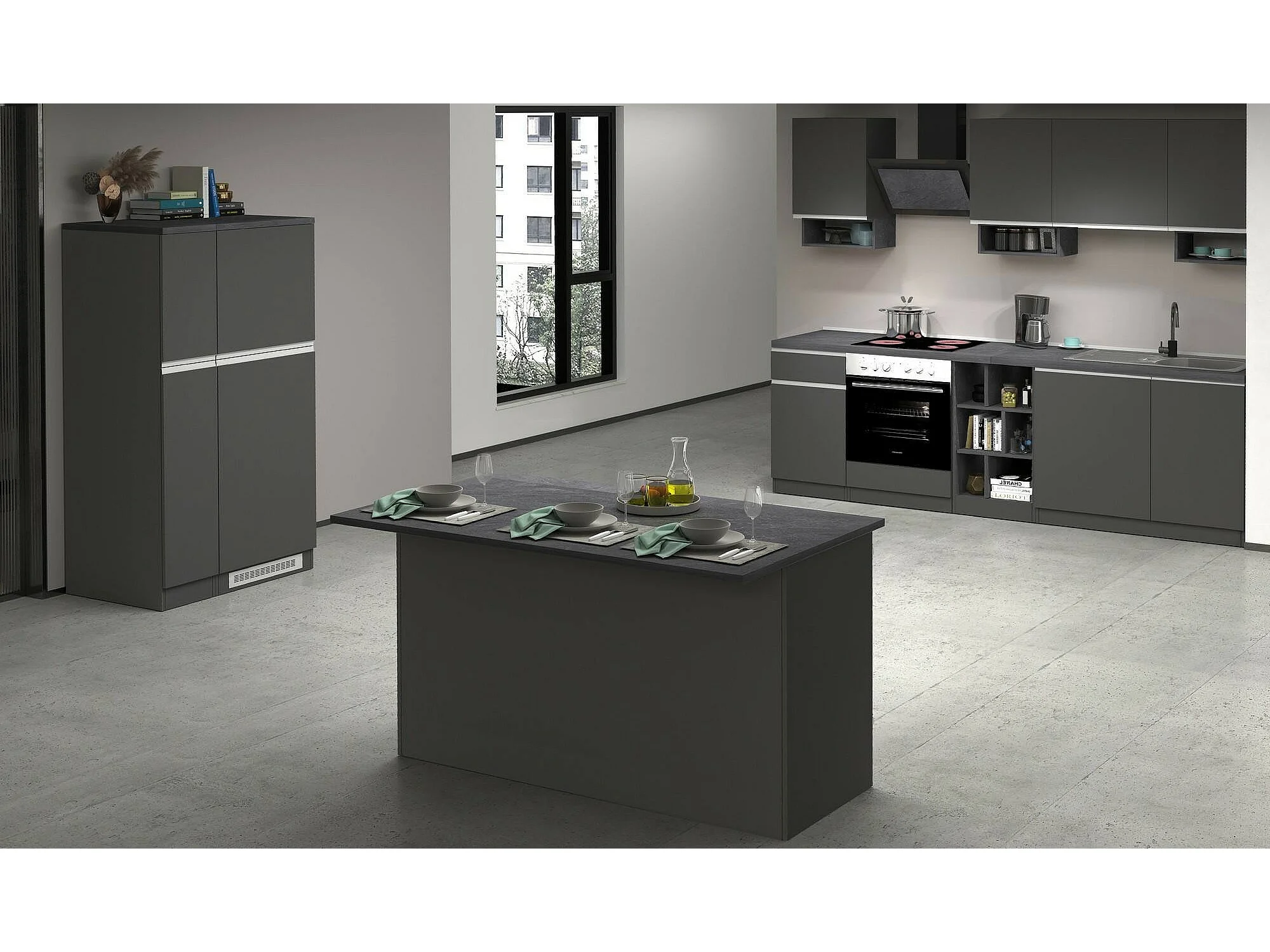 ÃŽlot de cuisine Dcarnelo, Armoire polyvalente, Meuble de kitchenette, Table auxiliaire, 100% Made in Italy, 155x90h90 cm, Anthracite et Ardoise