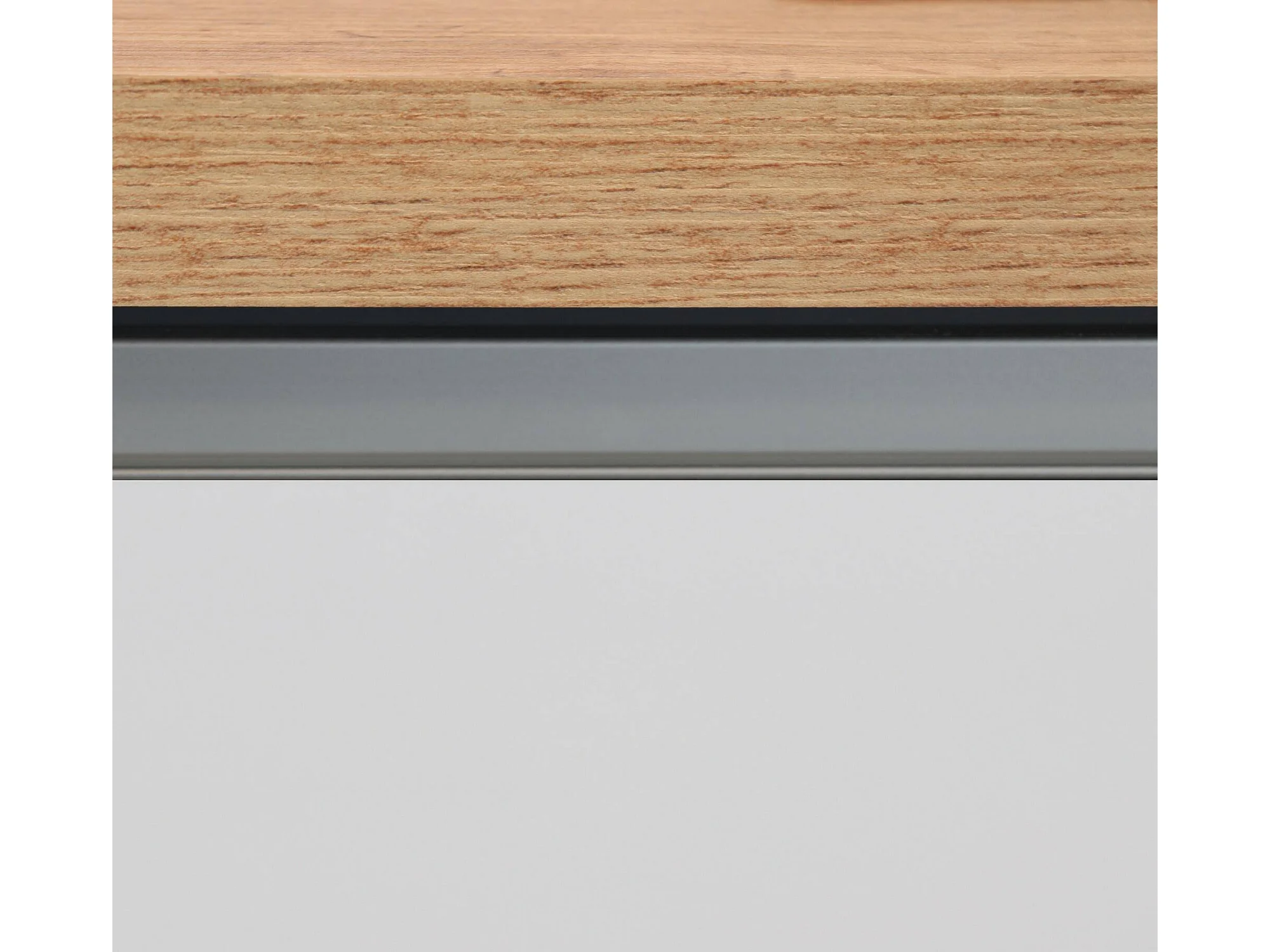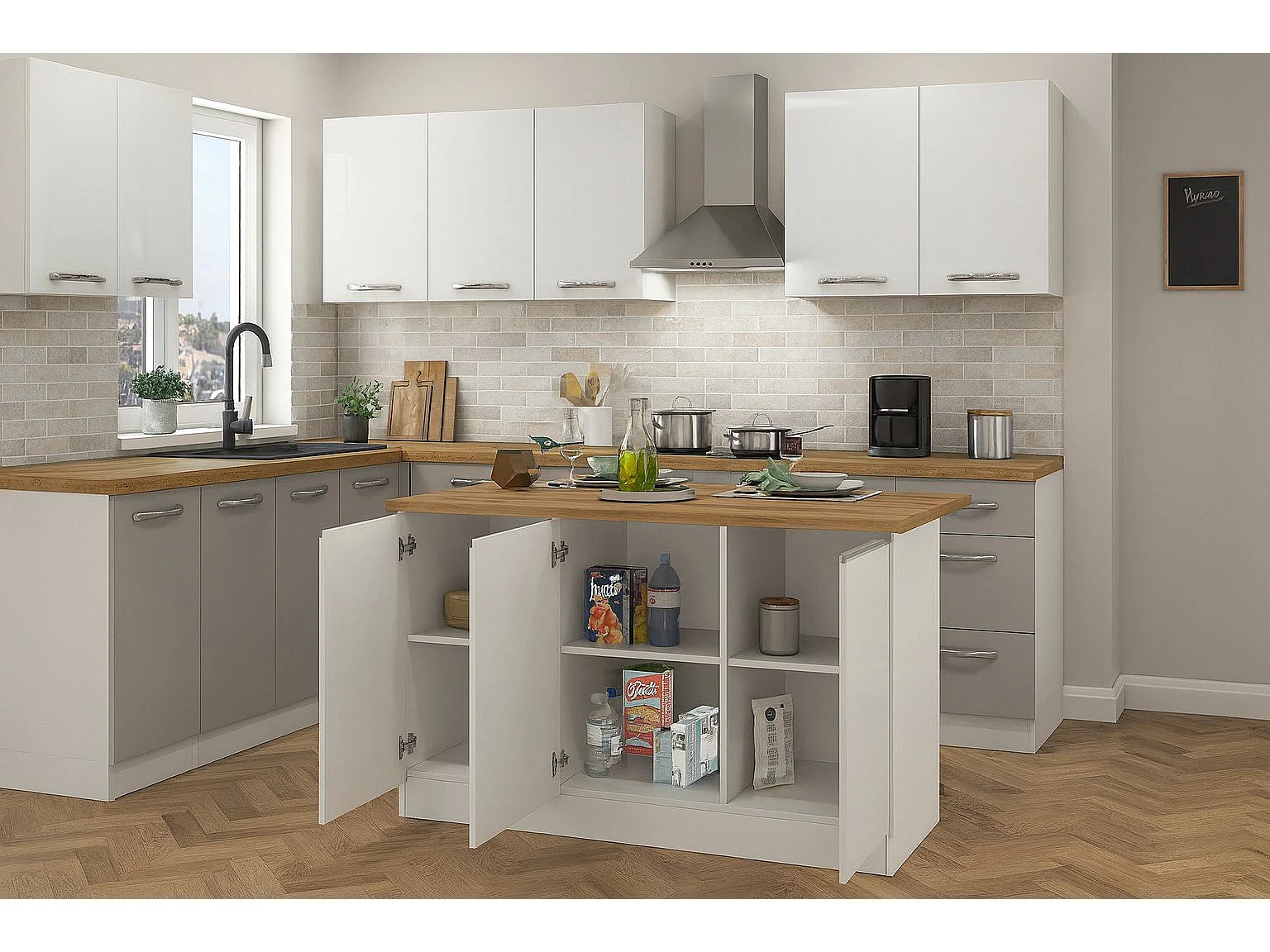 ÃŽlot de cuisine Dcarnelo, Armoire polyvalente, Meuble de kitchenette, Table auxiliaire, 100% Made in Italy, 155x90h90 cm, Blanc brillant et chêne