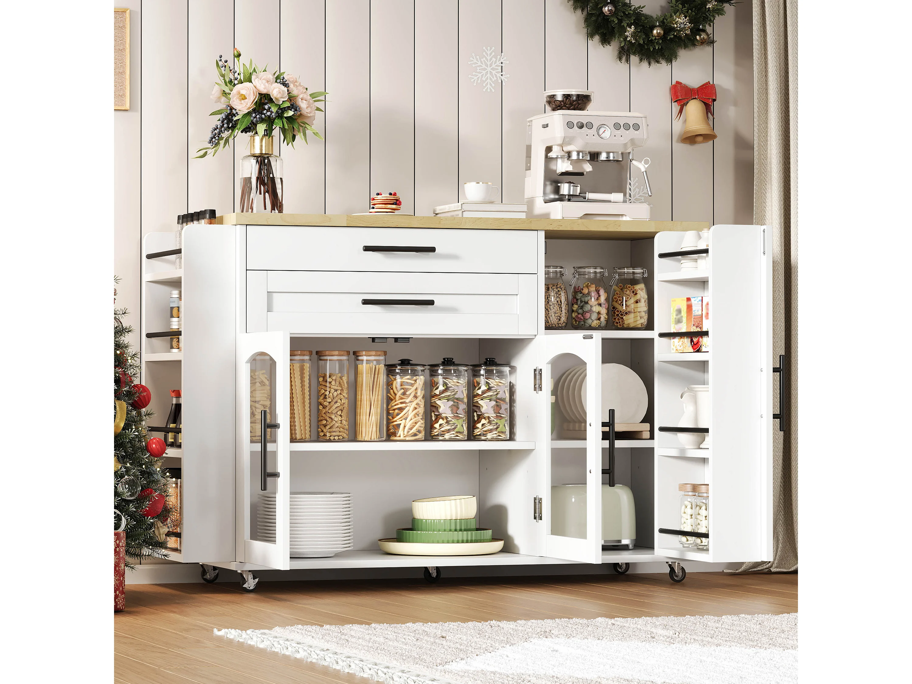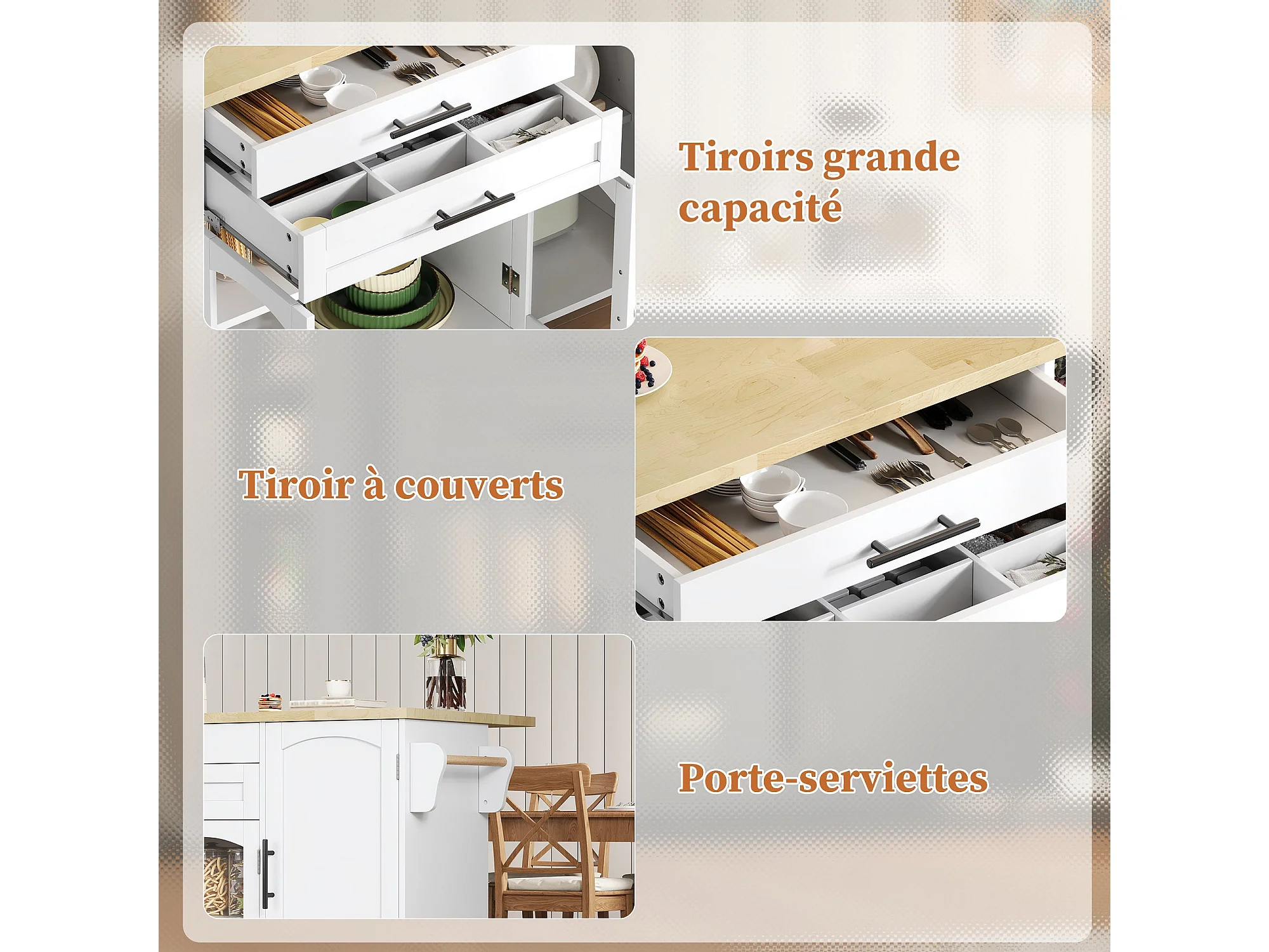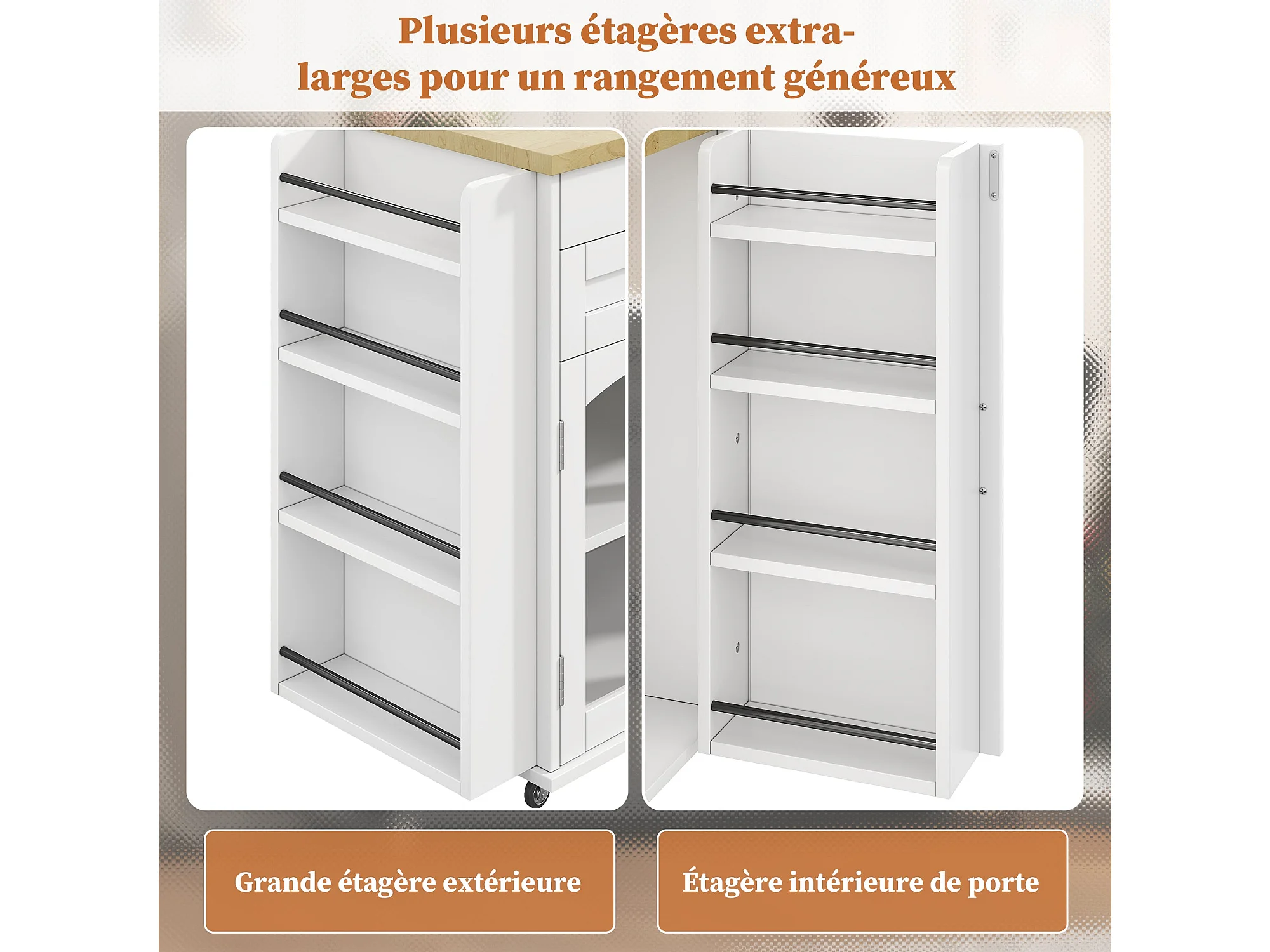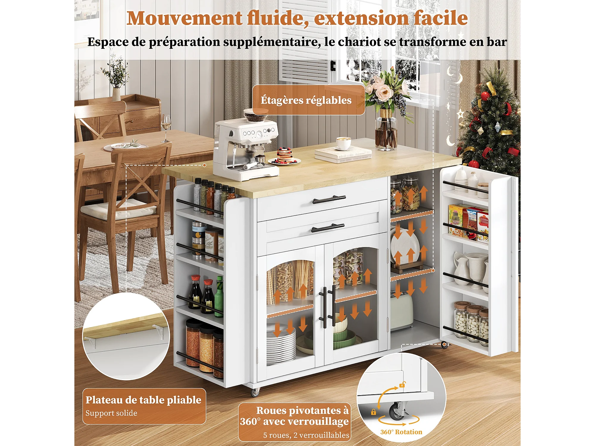 Îlot de cuisine mobile avec plan de travail pliable, chariot de cuisine, multiples rangements