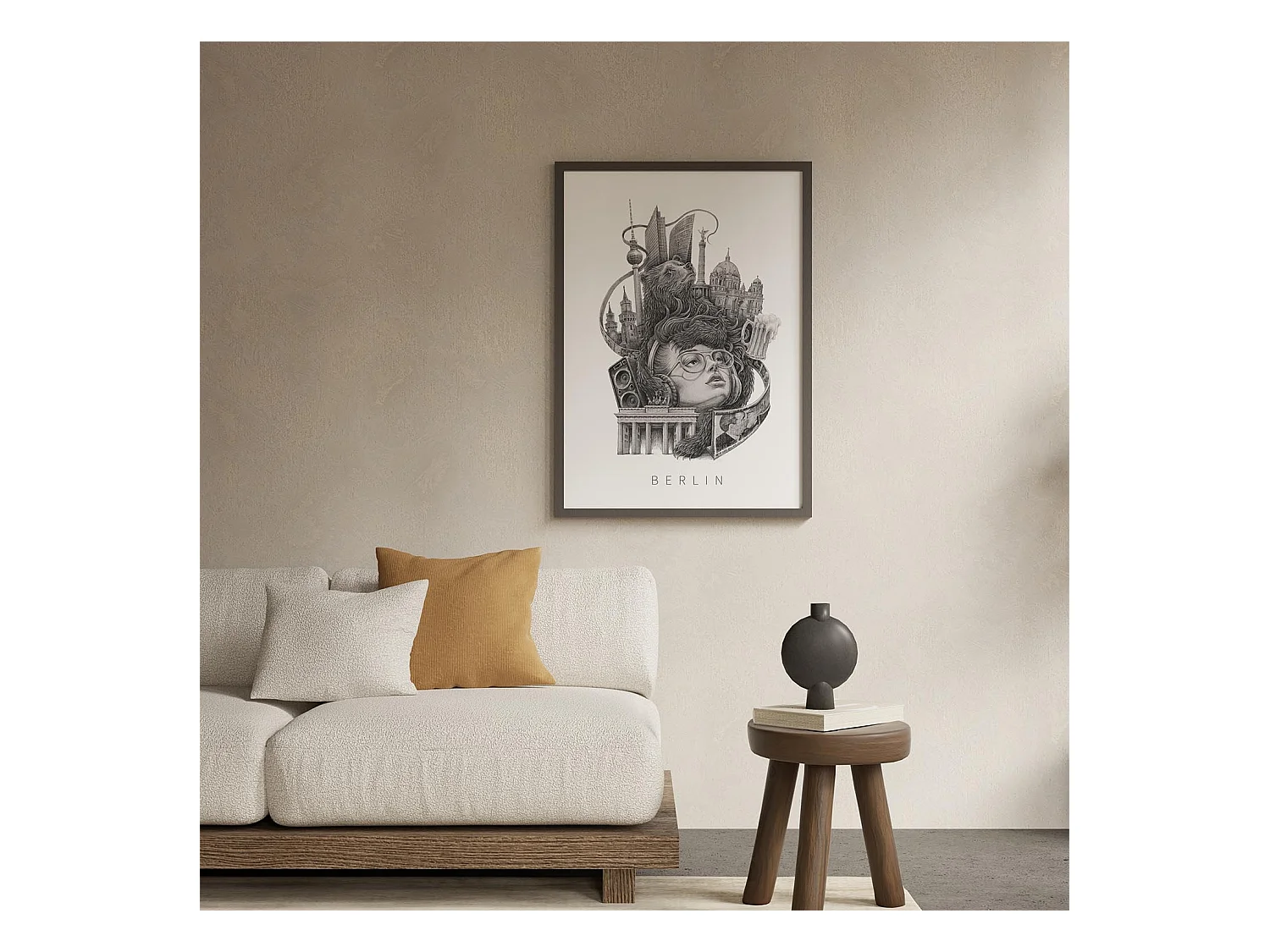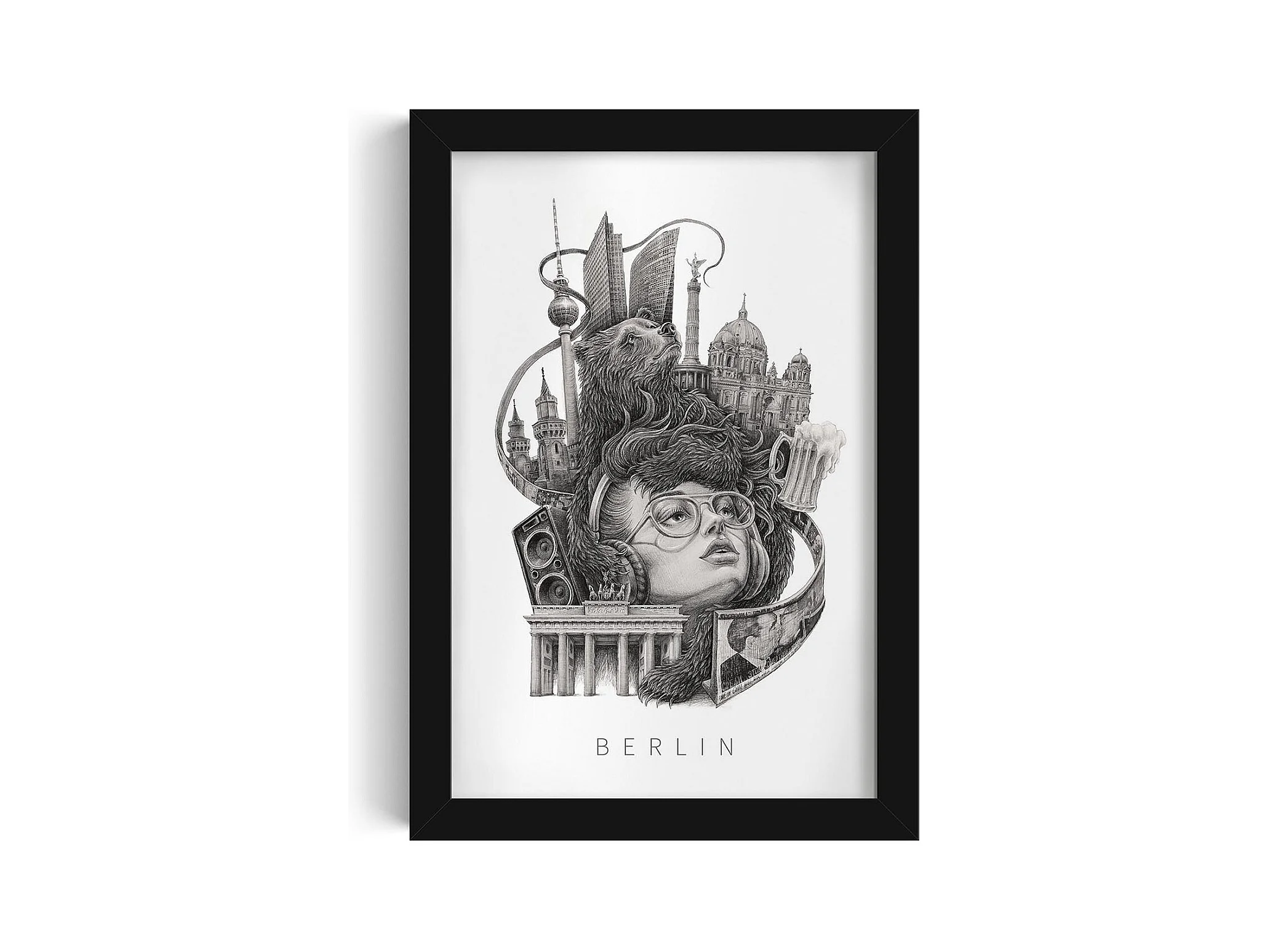 Image dans un cadre, art mural allemand moderne, art du cadre noir Berlin, image urbaine 20x30.