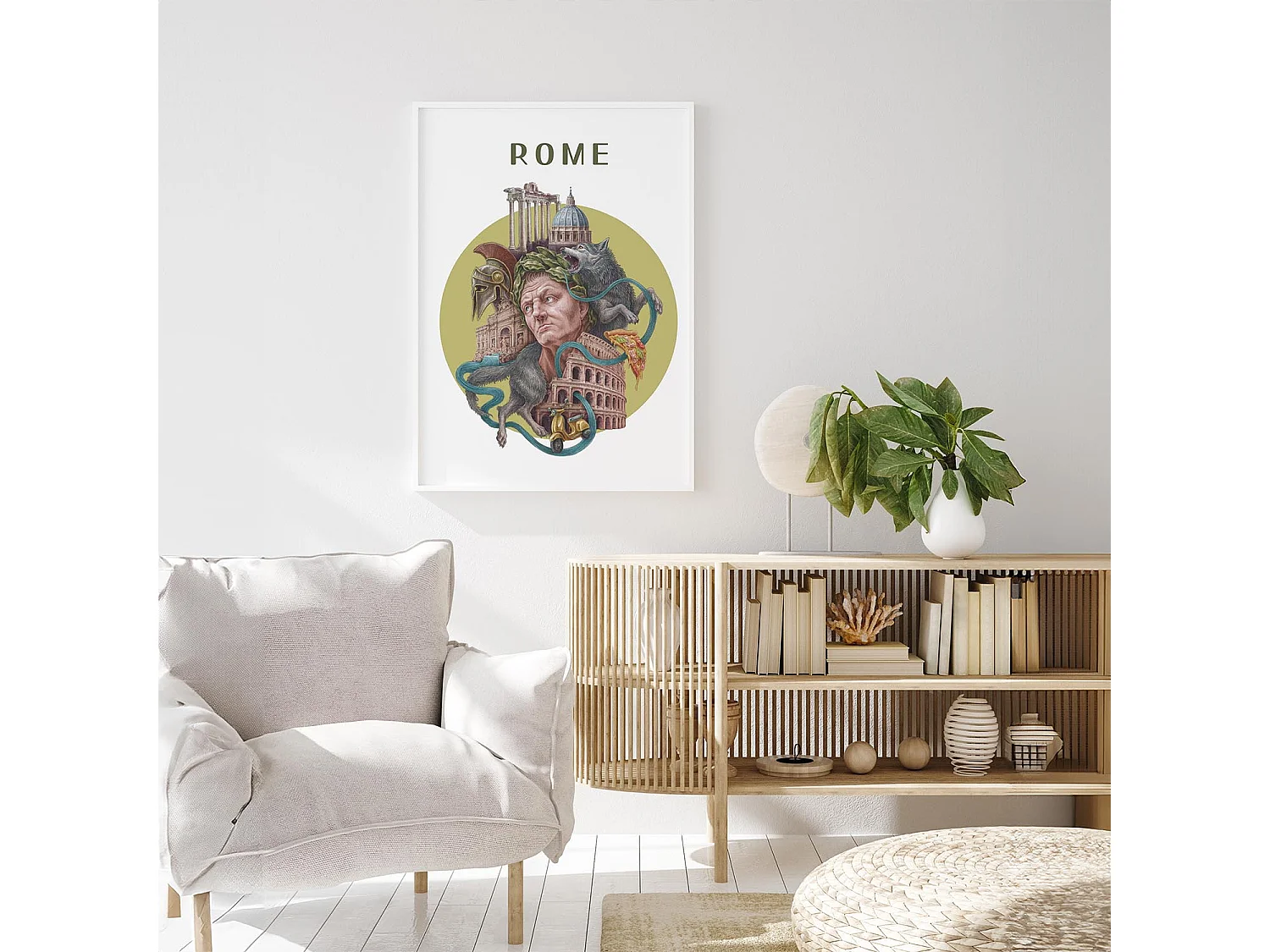 Image dans un cadre, décor de ville italienne, image cadre blanc Rome, 40x60 cm art de Rome, imprimé urbain Rome.