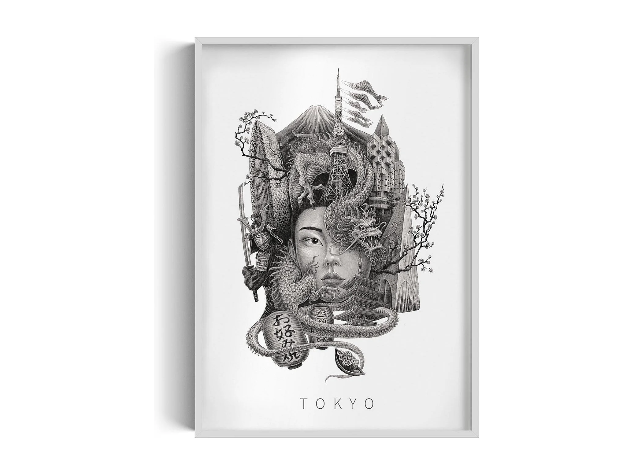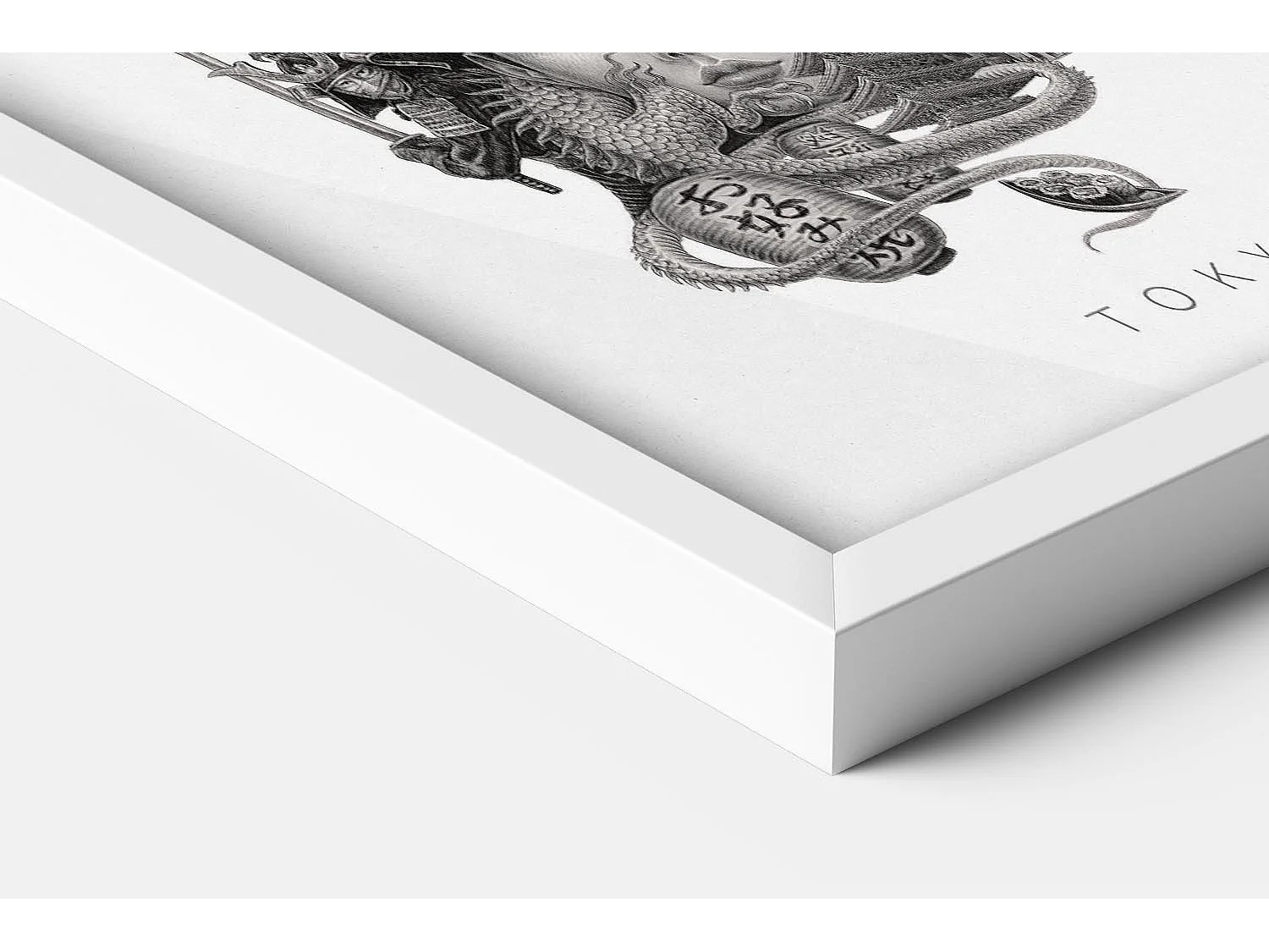 Image encadré, déco urbaine japonaise épurée, cadre blanc art Tokyo, image urbaine Tokyo, 70x100 cm.