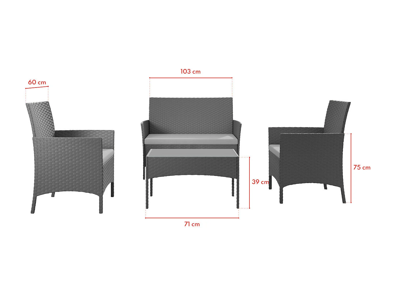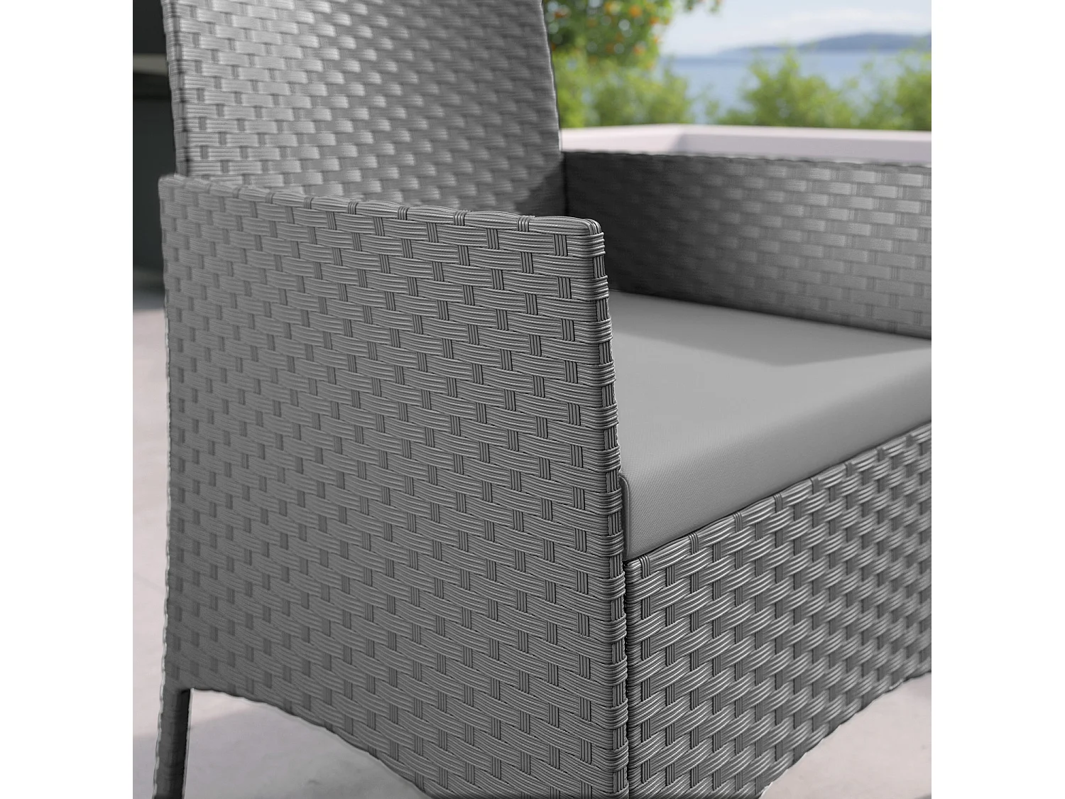 Salon de jardin résine tressée Gris - ensemble 4 places - Canapé + Fauteuil + Table - IMORA